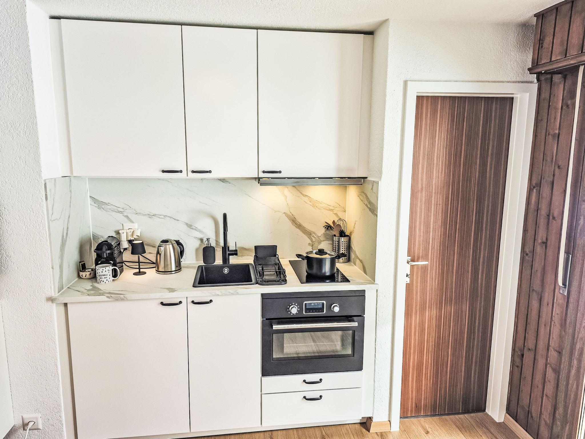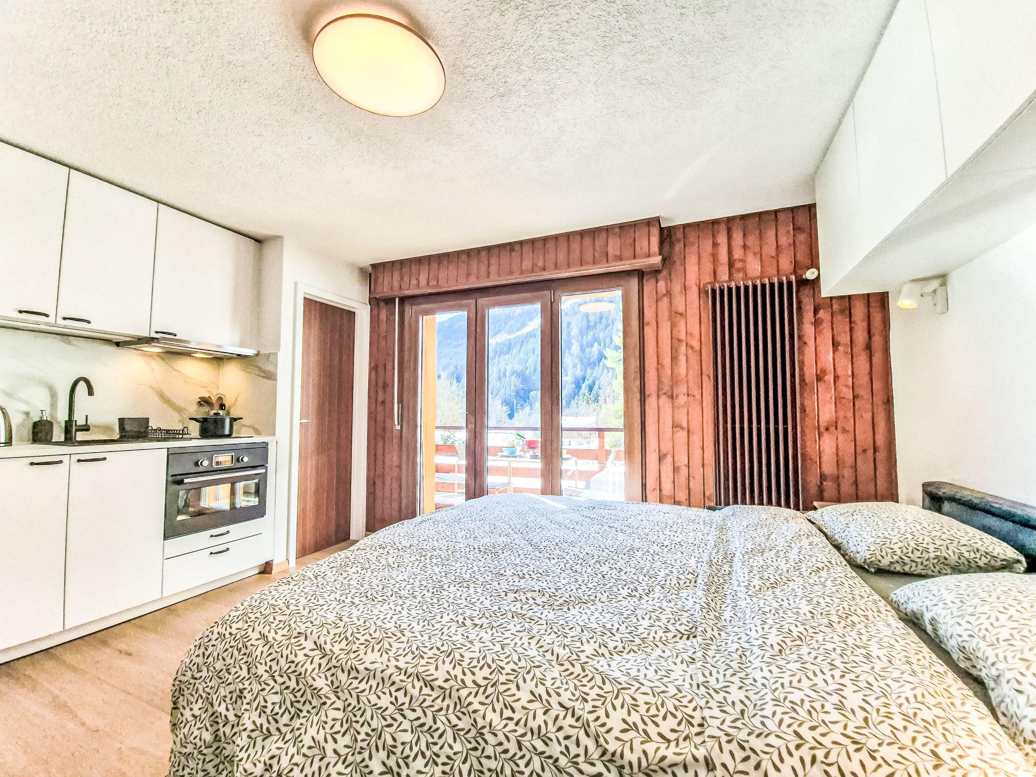 "L'Eden 1", 1-Zimmer-Studio 21 m2 im 1. Stock, Südwestlage. Hell, vollständig renoviert im Jahre 2026, geschmackvoll und gemütlich eingerichtet: Wohn-/Schlafzimmer mit 1 Doppeldiwanbett (160 cm, Länge 200 cm), Esstisch, TV und Flachbildschirm. Ausgang zum Balkon. Offene Küche (Backofen, 2 Induktionskochplatten, Toaster, Wasserkocher, elektrische Kaffeemaschine, Kapseln für die Kaffeemaschine (Nespresso) extra, Racletteofen, Kombinationsmikrowelle, Fondue Set (Käse)). Dusche/WC. Balkon, Südwestlage. Balkonmöbel. Schöne Sicht auf die Berge. Zur Verfügung: Haartrockner. Internet (WLAN, gratis). Parkplatz Nr. 3 (1 Auto). Bitte beachten: Nichtraucher-Unterkunft. Maximal 1 Haustier/Hund erlaubt.