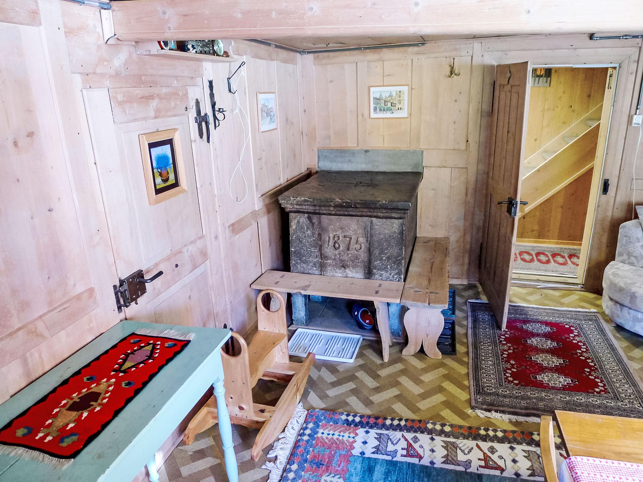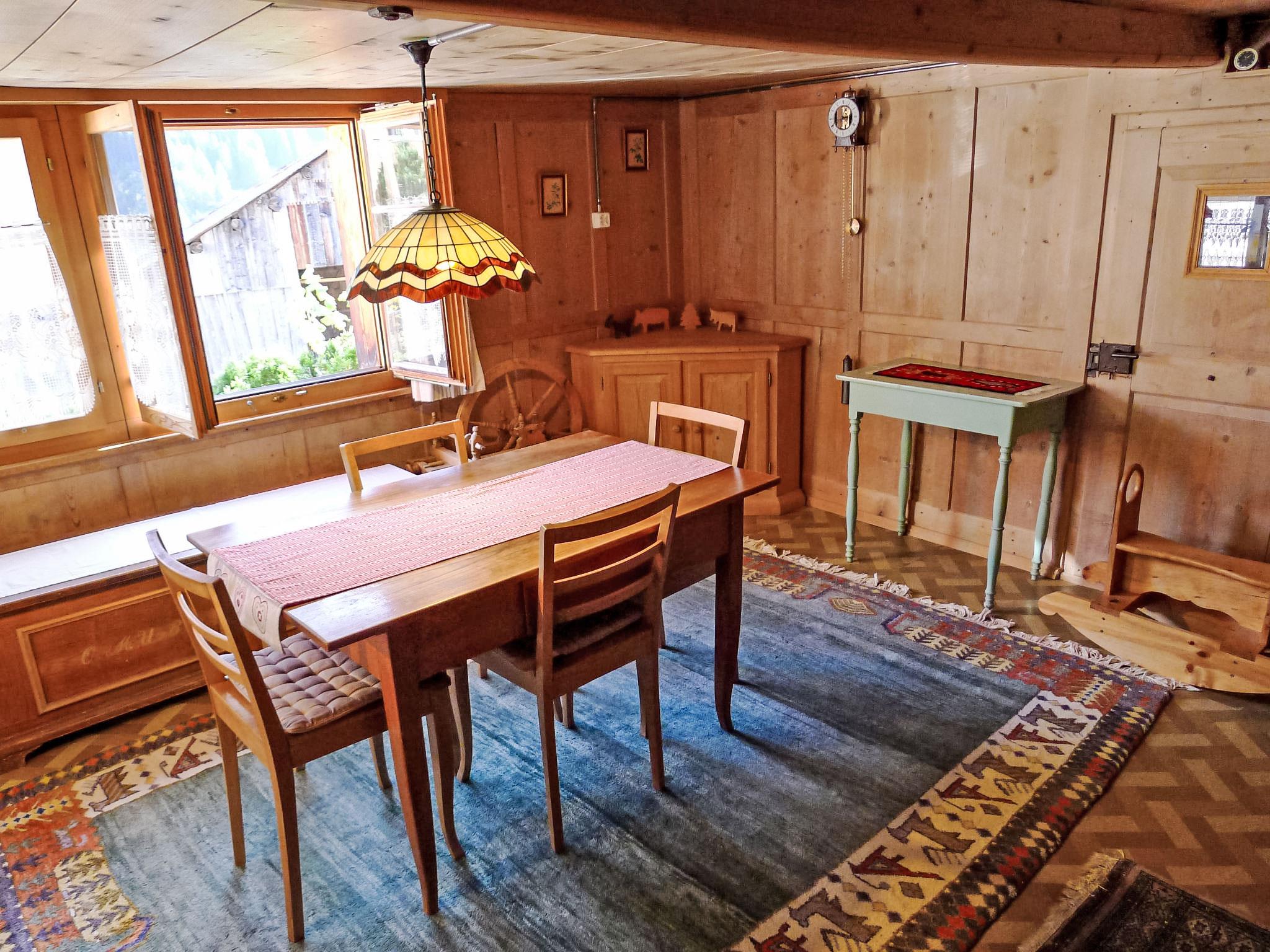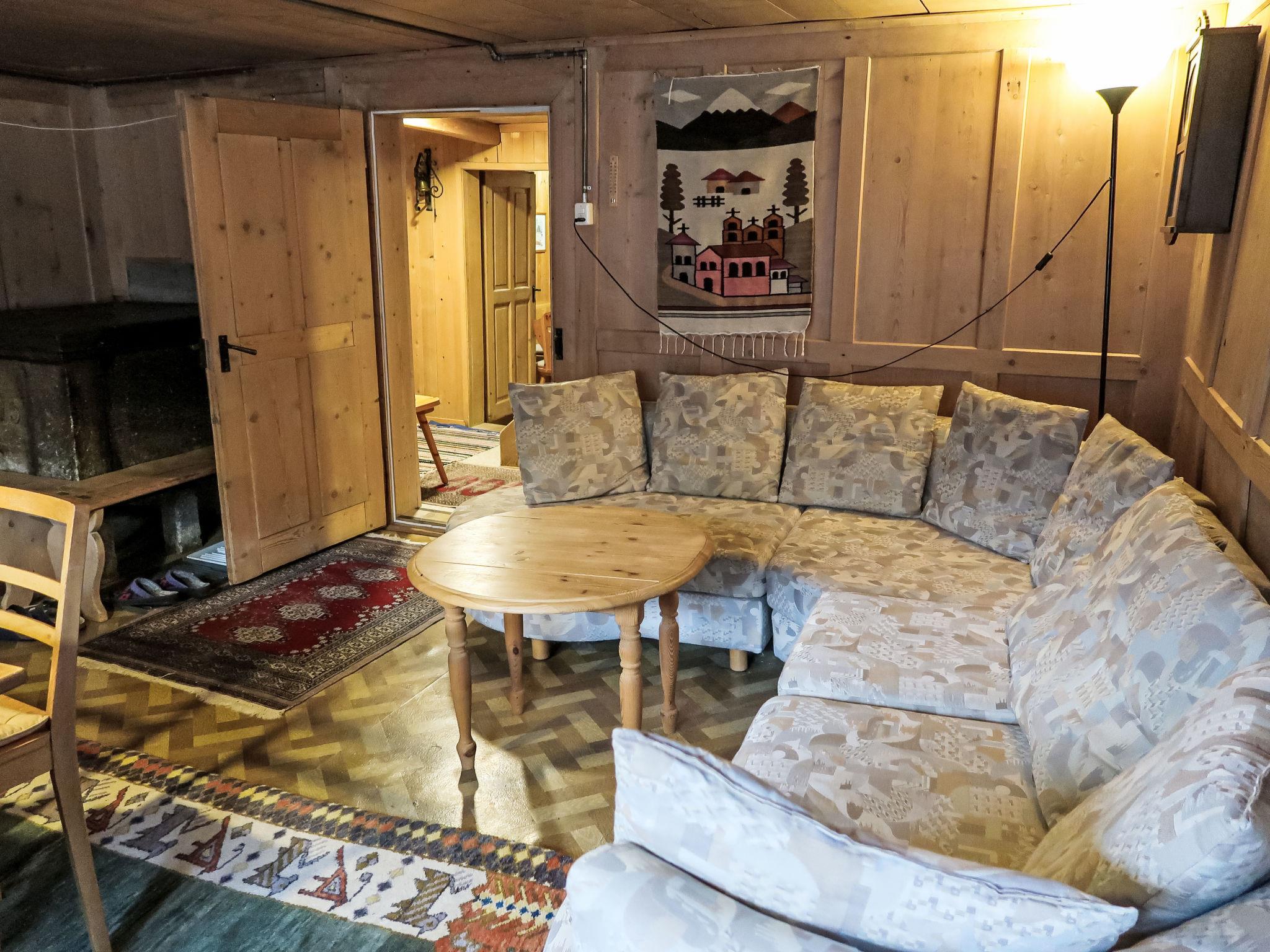 "Crestatgiet", 4-Zimmer-Wohnung 79 m2 auf 2 Stockwerken. Einfach und rustikal eingerichtet: Wohn-/Esszimmer, Deckenhöhe 170 - 190 cm, niedrige Türrahmen, Höhe 165 cm mit Kachelofen. Küche (Backofen, 4 Glaskeramikplatten, elektrische Kaffeemaschine) mit Esstisch. Sep. WC. Boiler (300 Liter). Obergeschoss: 3 Zimmer, jedes Zimmer mit 2 Betten. Dusche/WC. E-Heizung, Specksteinofen. Holzdielenboden. Eingeschränkte Sicht auf die Berge und die Landschaft. Bitte beachten: Nichtraucher-Unterkunft.