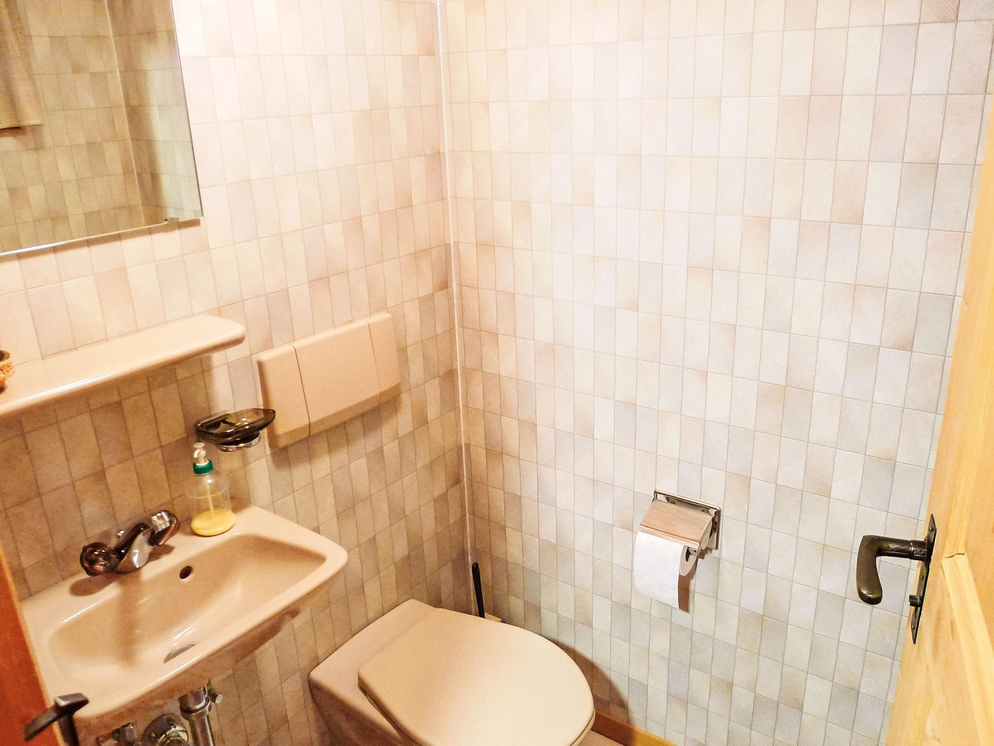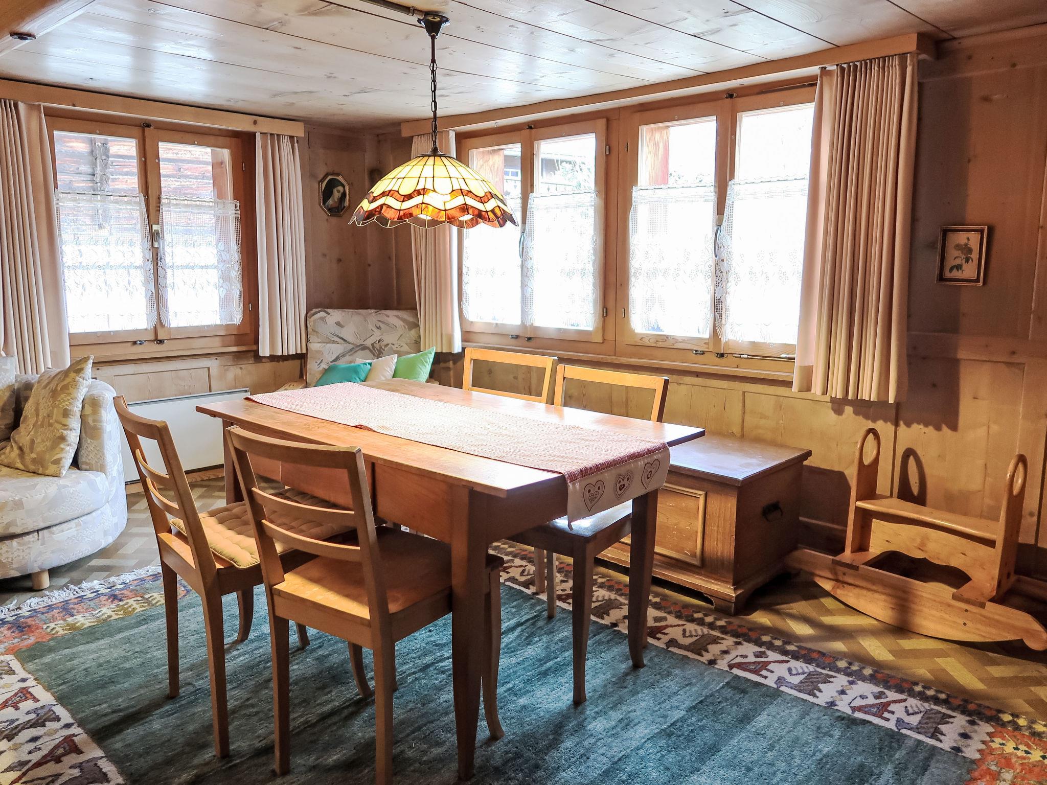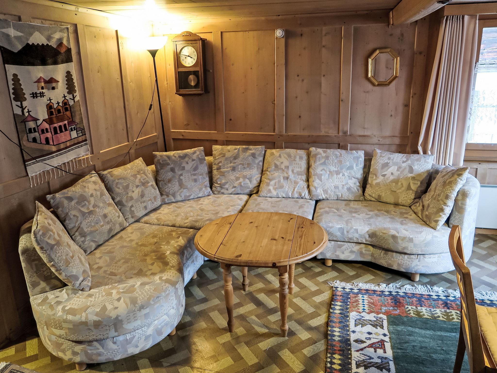 "Crestatgiet", 4-Zimmer-Wohnung 79 m2 auf 2 Stockwerken. Einfach und rustikal eingerichtet: Wohn-/Esszimmer, Deckenhöhe 170 - 190 cm, niedrige Türrahmen, Höhe 165 cm mit Kachelofen. Küche (Backofen, 4 Glaskeramikplatten, elektrische Kaffeemaschine) mit Esstisch. Sep. WC. Boiler (300 Liter). Obergeschoss: 3 Zimmer, jedes Zimmer mit 2 Betten. Dusche/WC. E-Heizung, Specksteinofen. Holzdielenboden. Eingeschränkte Sicht auf die Berge und die Landschaft. Bitte beachten: Nichtraucher-Unterkunft.