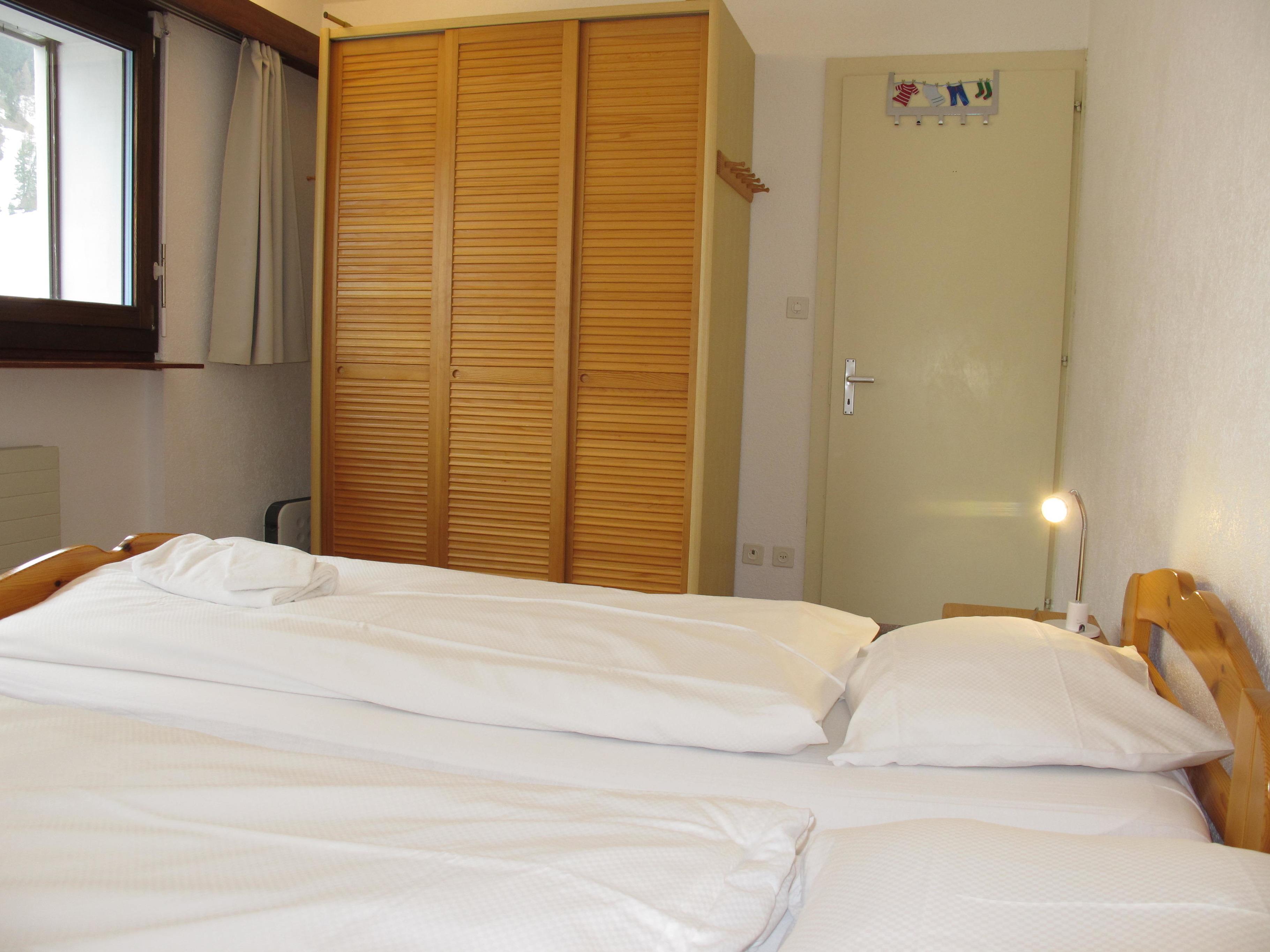 Helle, gemütliche, gut ausgestattete 2-Zimmer-Wohnung, 3. Etage (Aufzug) mit ca. 60 m² Wohnfläche. Eingang in Flur mit Garderobe. Wohn-/Schlafraum mit Einzelbett und Ausziehbatt (je 0,9 x 2m), offener Kamin (Holz gegen Bezahlung im Supermarkt) und Eßplatz. Kleine Küche mit 3 Platten, Backofen, Geschirrspüler, Mikrowelle, Kühlschrank mit Gerfierfach, Toaster, Kaffeemaschine, Wasserkocher, Fondue-Rechaud und Raclette-Gerät. Großes Zweibetzimmer mit Blick auf Lift und Pisten hinüber in das Sigebiet nach Veysonnaz. Bad. Sep.WC. Überdachter Südbalkon mit Mobiliar und schönem Blick auf die Berge und Pisten.