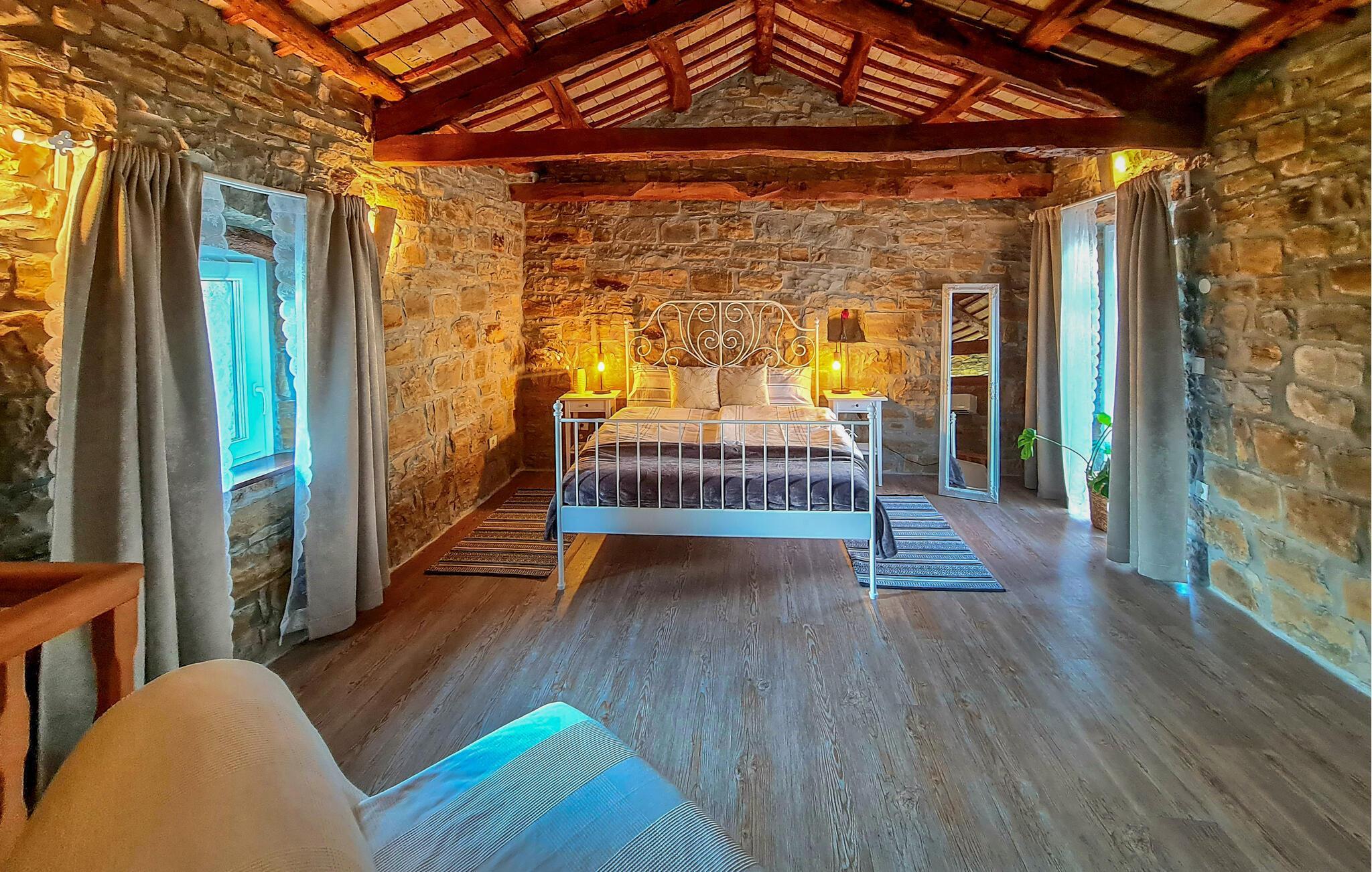 Willkommen in dem einladenden Haus, das Sie in schöner Lage umgeben von Weinbergen und Olivenhainen empfängt. Es verdankt seinen Charme der Einrichtung mit rustikaler Gemütlichkeit, die durch schöne Holzdecken und teilweise sichtbares Mauerwerk gepaart mit modernen Möbeln entsteht, und lädt zu einer erholsamen Pause vom Alltag ein. Entspannen Sie nach Ihren Aktivitäten in der Umgebung in gemütlichem Rahmen, machen Sie es sich am Esstisch bequem und veranstalten Sie einen Spieleabend oder plaudern Sie bis spät in den Abend am leise knisternden Kaminofen.