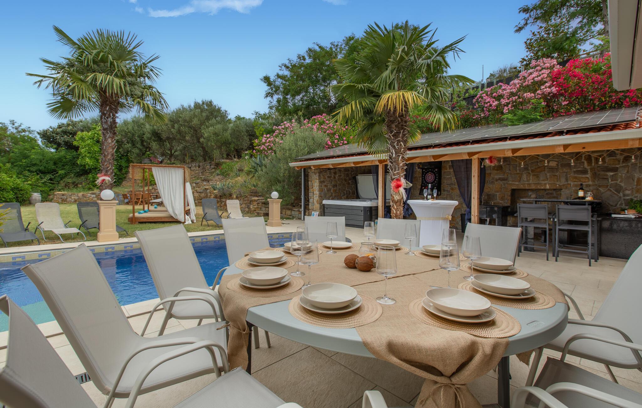 Dieses geräumige Ferienhaus befindet sich in einer eindrucksvollen Panoramalage und bietet einen atemberaubenden Blick auf den Golf von Triest und die Weinberge. Die Besonderheit des Hauses sind die großzügigen Terrassen und die wunderschön angelegte Anlage, die ein reiches Angebot an Sport- und Freizeitaktivitäten für Sie bereithält. Das Interieur ist modern und bietet Komfort auf höchstem Niveau. Eine Sauna, ein Whirlpool und ein Fitnessraum sind ebenfalls vorhanden. Von der großen Lounge haben Sie Meerblick und Zugang zu einer großen Terrasse, die teilweise überdacht ist. Neben der größeren Hauptküche verfügt das Haus auch über zwei kleinere Küchen, die auf Wunsch Privatsphäre bieten, wenn zwei oder mehr Familien im Haus Urlaub machen. In der Nähe befinden sich Koper und Muggia (Italien). Besuchen Sie unbedingt das mittelalterliche Piran und unternehmen Sie einen Tagesausflug zur Höhle von Postojna oder ins schöne Bled.