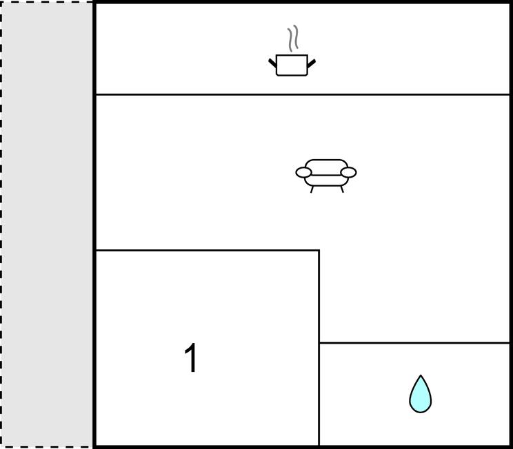 Badezimmer (nr. 1) - WC. Warmes und kaltes Wasser. Dusche