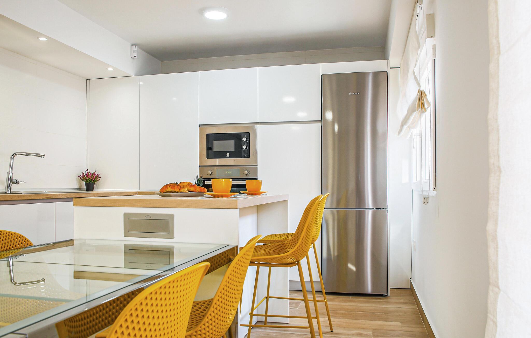 Diese Wohnung ist wie geschaffen für eine erholsame Auszeit vom hektischen Alltag. Modernes Mobiliar, dezente Farben und fröhliche Farbakzente sorgen dafür, dass Sie schnell zur Ruhe kommen und neue Energie tanken können. Egal ob Sie sich auf dem Sofa entspannen, die neuesten Hits der Charts hören oder leckere Mahlzeiten in der Küche zubereiten, hier bestimmen Sie das Tempo Ihres Tages.