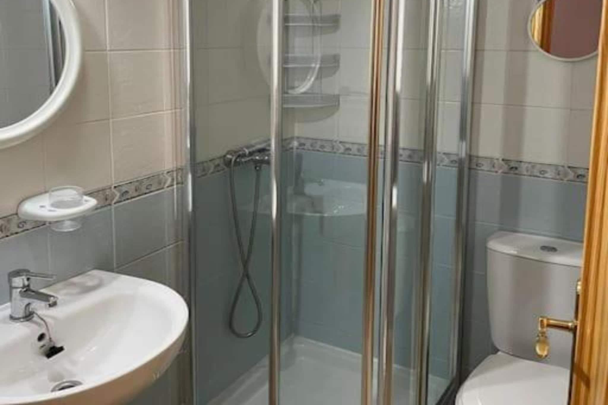 In der 1. Etage: (Wohnzimmer(Doppelschlafcouch, TV, Sitzecke, Balkon oder Terrasse), Küche(Kochherd, Backofen, Mikrowelle, Spülmaschine, Kühl-/Gefrierkombination, Zitruspresse, Mixer, Coffee), Schlafzimmer(Etagenbett oder 2 Einzelbetten), Schlafzimmer(Doppelbett), Badezimmer(Badewanne oder Dusche, Waschbecken, Toilette, Bidet), Badezimmer(Dusche, Waschbecken, Toilette), Dachterasse) Parkplatz, Pool(Gemeinschaftliche Nutzung mit anderen Gästen)