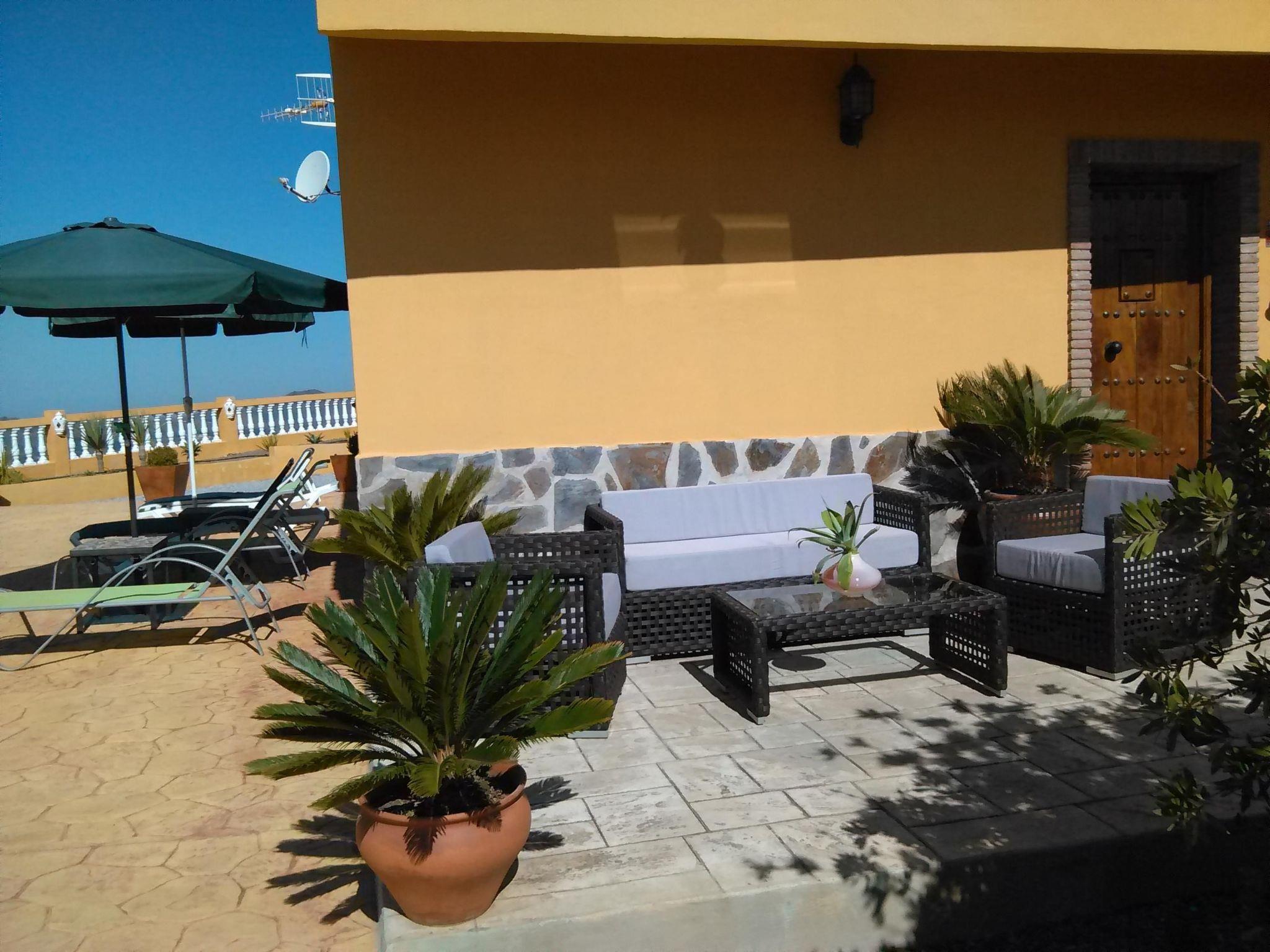 Das gemütliche Haus, teilweise im rustikalen andalusischen Stil, bietet auf 130m² ausreichend Platz für bis zu sechs Personen. Es ist über eine Etage verteilt und verfügt über drei Schlafzimmer, eines mit zwei Einzelbetten (105cm und 90cm breit) und die anderen beiden mit Doppelbetten (135cm breit). Die Schlafzimmer haben jeweils eine Fläche von 13m². Das Haus verfügt außerdem über zwei Badezimmer mit Dusche. Eines der Bäder befindet sich en suite mit dem Doppelschlafzimmer. Das Herzstück des Hauses ist das gemeinsame Wohn- und Esszimmer mit Sofas, Kamin, Sat-TV, Stereoanlage, Esstisch und Stühlen. Die geräumige Küche bietet eine Grundausstattung mit Induktionskochfeld, Geschirrspüler, Waschmaschine, Wasserkocher und Mikrowelle.