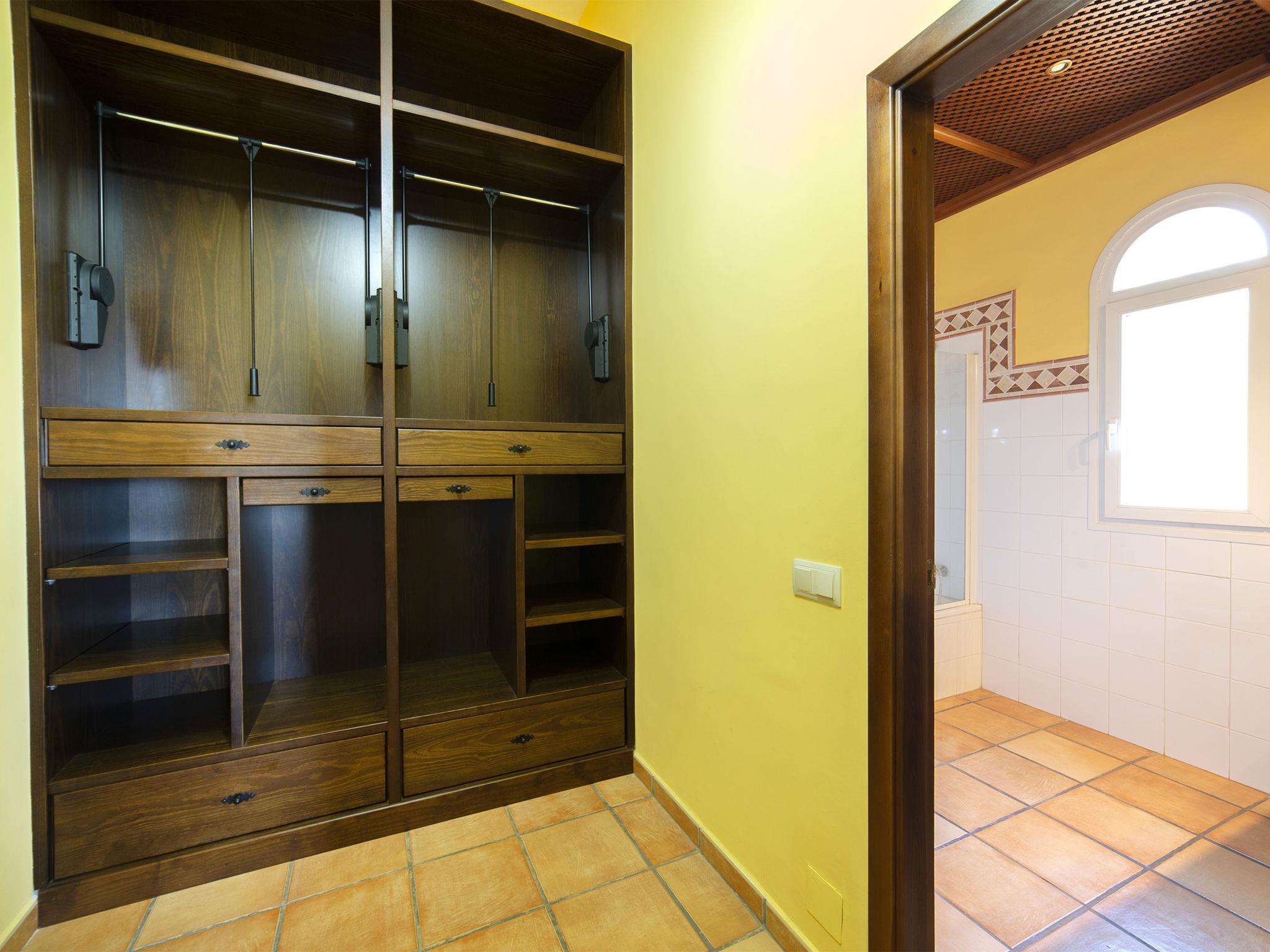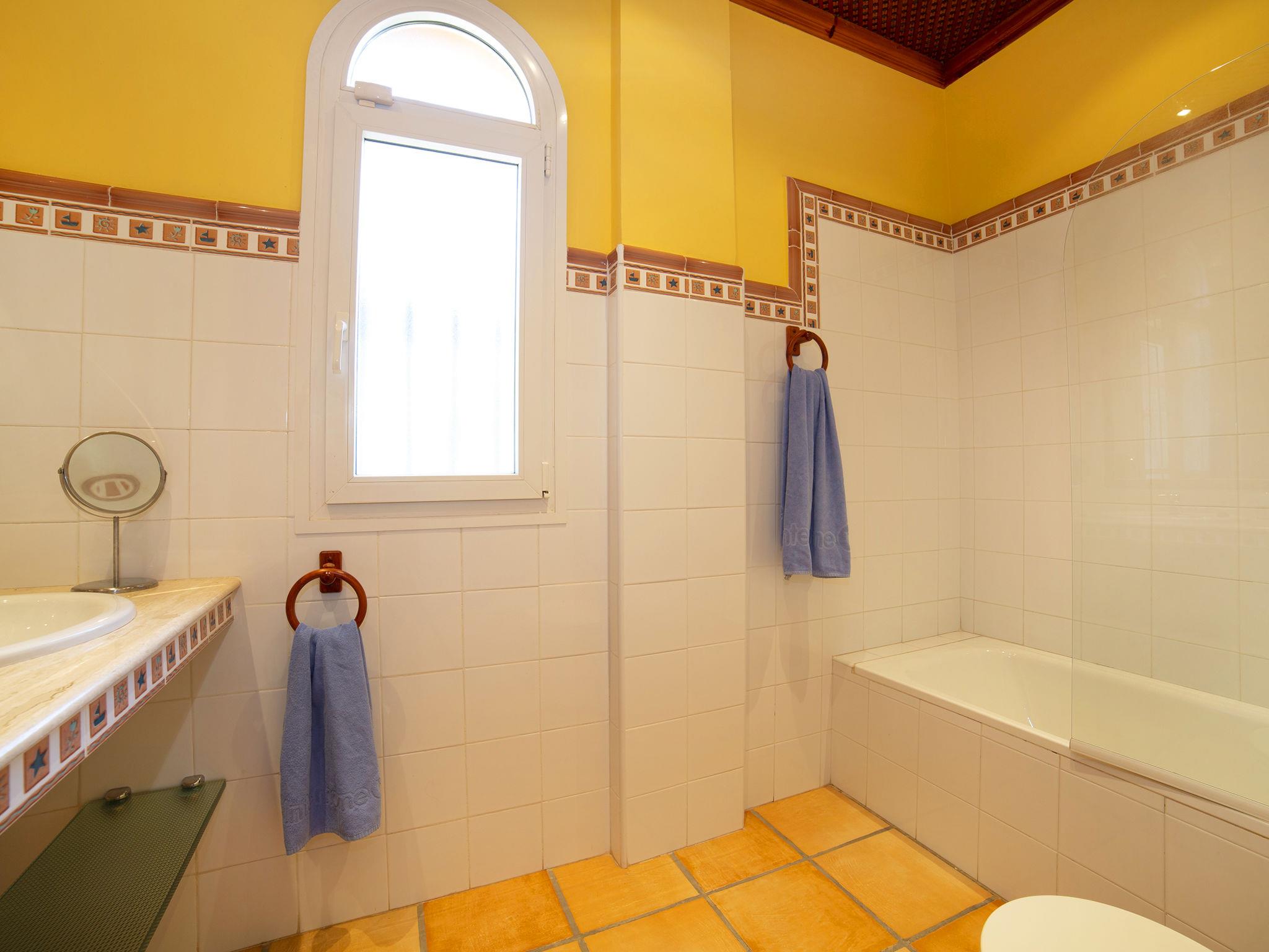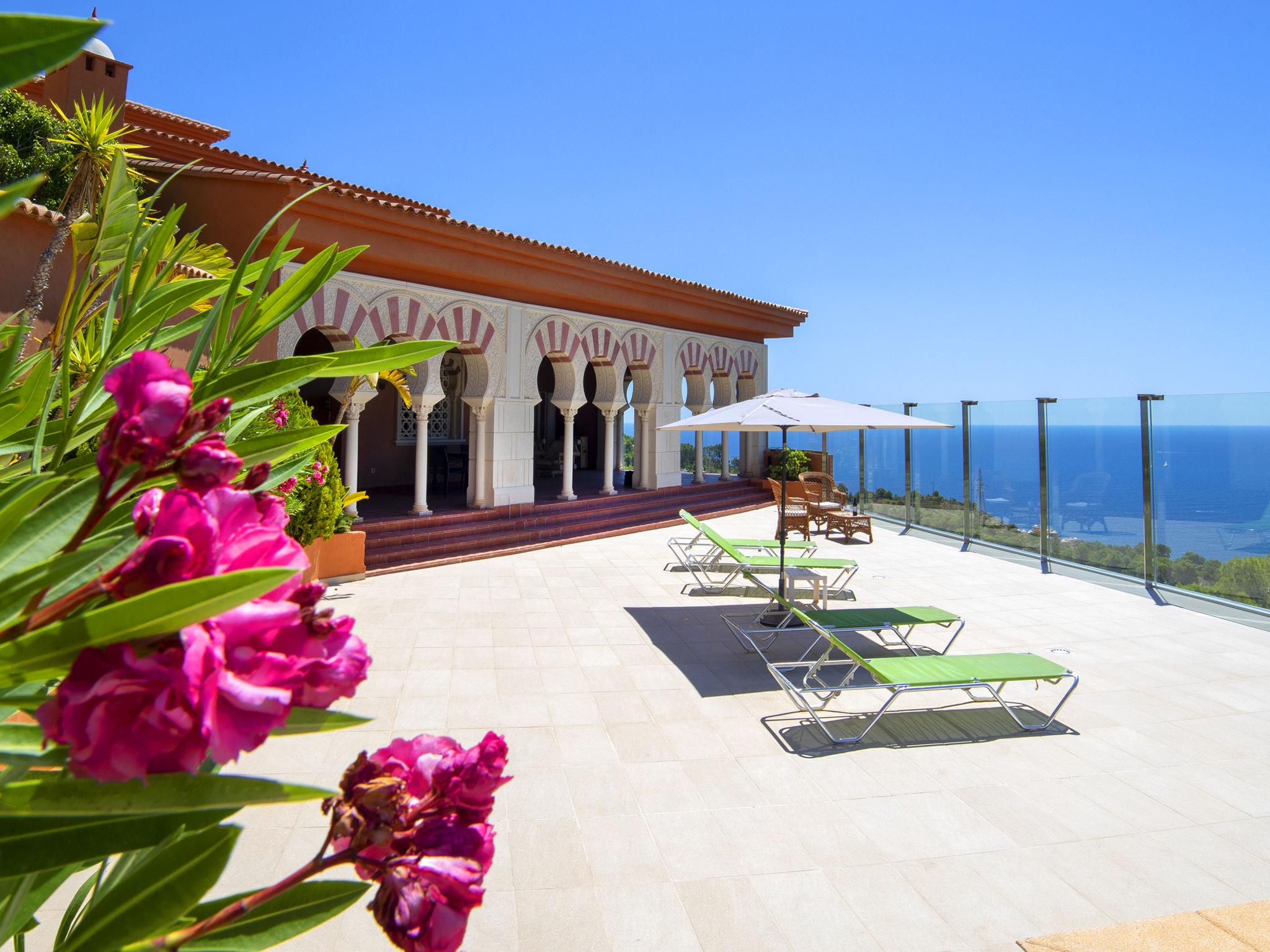 "Azahara", 5-Zimmer-Villa 307 m2. Geräumig, schön und stilvoll eingerichtet: grosses Wohn-/Esszimmer mit Sat-TV und Digital-TV. Ausgang zur Terrasse, zum Schwimmbad. 1 Zimmer mit begehbarem Kleiderschrank mit 1 franz. Bett (1 x 150 cm, Länge 190 cm), Bad/WC, Klimaanlage und Warmluftheizung. 1 Zimmer mit 2 Betten (90 cm, Länge 190 cm), Bad/WC, Doppelwaschbecken, Klimaanlage und Warmluftheizung. 1 Zimmer mit 2 Betten (90 cm, Länge 190 cm), Bad/WC, Klimaanlage und Warmluftheizung. 1 Zimmer mit 2 Betten (90 cm, Länge 190 cm), Dusche/WC, Klimaanlage und Warmluftheizung. Grosse Küche (Backofen, Geschirrspüler, 4 Glaskeramikplatten, Mikrowelle) mit Esstisch. Ausgang zur Terrasse. Sep. WC. Grosse Terrasse. Terrassenmöbel, Gartengrill, Liegestühle. Panoramasicht auf das Meer, die Ortschaft und das Städtchen. Zur Verfügung: Waschmaschine, Kinderhochstuhl, Babybett, Haartrockner. Internet (WLAN, gratis). Parkplatz. Geeignet für Familien. VT-485094-A // Reg. Nr.: ESFCTU00000305300027218900000000000000000VT-485094-A9