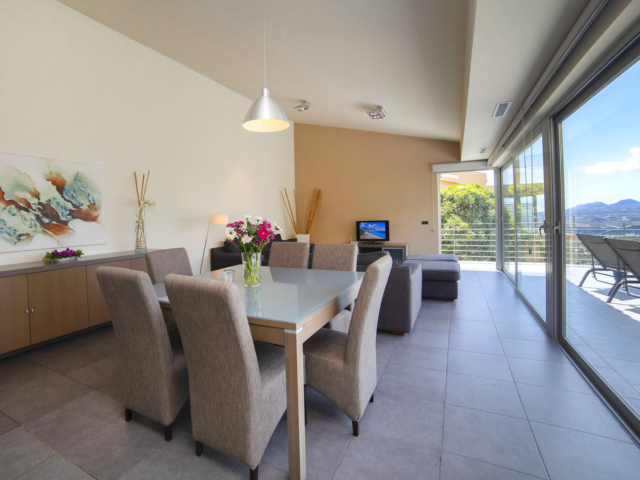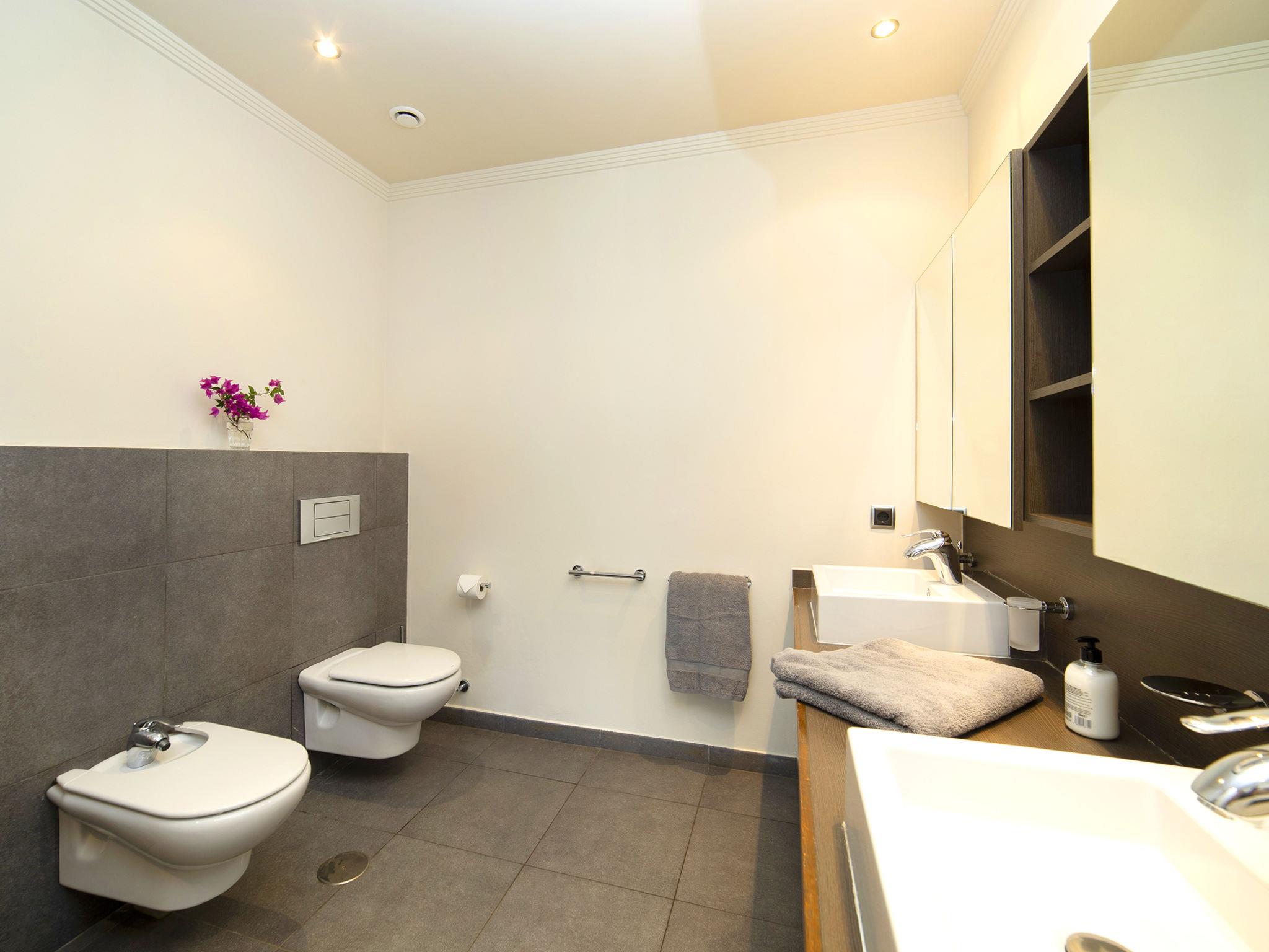 "La Estrella", 5-Zimmer-Villa 276 m2 auf 2 Stockwerken. Objekt geeignet für 8 Erwachsene. Geräumig und hell, schön und modern eingerichtet: offenes grosses Wohn-/Esszimmer mit Esstisch, Sat-TV, Digital-TV, Klimaanlage und Warmluftheizung. Offene Küche (Backofen, Geschirrspüler, 4 Glaskeramikplatten, Toaster, Wasserkocher, Mikrowelle, Tiefkühler, elektrische Kaffeemaschine) mit Klimaanlage und Warmluftheizung. Sep. WC. Heizung nur verfügbar von 01.11. bis 30.04, Solarstrom. Unteres Geschoss: 1 Zimmer mit 1 franz. Bett, Bad/Dusche/Bidet/WC, Klimaanlage und Warmluftheizung. Ausgang zur Terrasse, zum Schwimmbad. 2 Zimmer, jedes Zimmer mit 1 Doppelbett, Klimaanlage und Warmluftheizung. 1 Zimmer mit 1 franz. Bett, Klimaanlage und Warmluftheizung. 2 Duschen/Bidet/WC, Doppelwaschbecken. 2 grosse Terrassen. Terrassenmöbel, Gartengrill (mobil). Panoramasicht auf die Landschaft, die Ortschaft und das Städtchen. Zur Verfügung: Waschmaschine, Wäschetrockner, Bügeleisen, Kinderhochstuhl, Babybett bis 2 Jahre, Haartrockner. Internet (WLAN, gratis). Parkplatz (2 Autos). E-Ladestation. Bitte beachten: geeignet für Familien. Nichtraucher-Haus. VT-488094-A // Reg. Nr.: ESFCTU00000305300031088100000000000000000VT-488094-A8