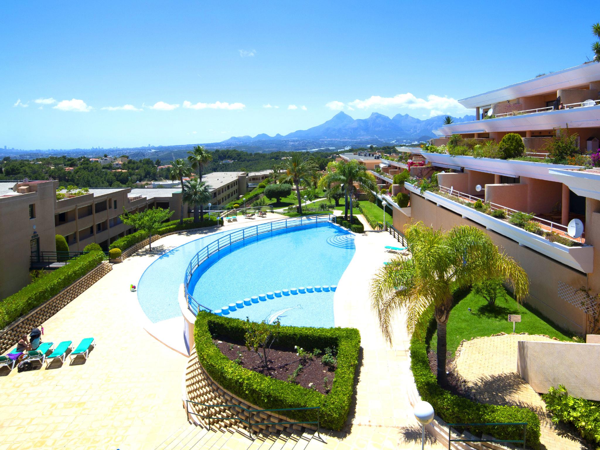 Sierra de Altea: Schönes Appartementhaus "Altea La Nova". 2.2 km vom Zentrum von Altea la Vieja, 6 km vom Zentrum von Altea, sonnige, erhöhte Lage, verkehrsberuhigte Zone, 3.5 km vom Meer, 3.5 km vom Strand. Zur Mitbenutzung: Grundstück (eingezäunt), Garten mit Rasen, 2 Schwimmbäder (saisonale Verfügbarkeit: 01.Mai. - 30.Sep.) mit Innentreppe. Kinderbecken, Aussendusche, Terrasse. Im Hause: Empfang, Fahrstuhl. Einkaufsgeschäft 2.2 km, Lebensmittelgeschäft 2.2 km, Supermarkt 2.2 km, Restaurant 3 km, Bar 2.2 km, Bäckerei 2.2 km, Café 2.2 km, Internet-Café 2.2 km, Fußgängerzone 2.2 km, Fahrradverleih 2.2 km, Biergarten 2.2 km, Zentrum zu Fuss in 33 Minuten erreichbar, Bushaltestelle 1.8 km, Sandstrand "Playa Puerto Blanco -Calpe-" 12 km, Badebucht 5 km. Sporthafen 7 km, Jacht-Hafen 7 km, Golfplatz (9 Loch) 1 km, Surfschule 7 km, Segelschule 7 km. Nahe gelegene Sehenswürdigkeiten: Aqualandia 20 km, Mundomar 20 km, Terra Mitica 25 km, Terra Natura 25 km, Fuentes del Algar 22 km, Guadalest 25 km. Wandergebiete: Peñon de Ifach 15 km. Der Besitzer akzeptiert keine Jugendgruppen.