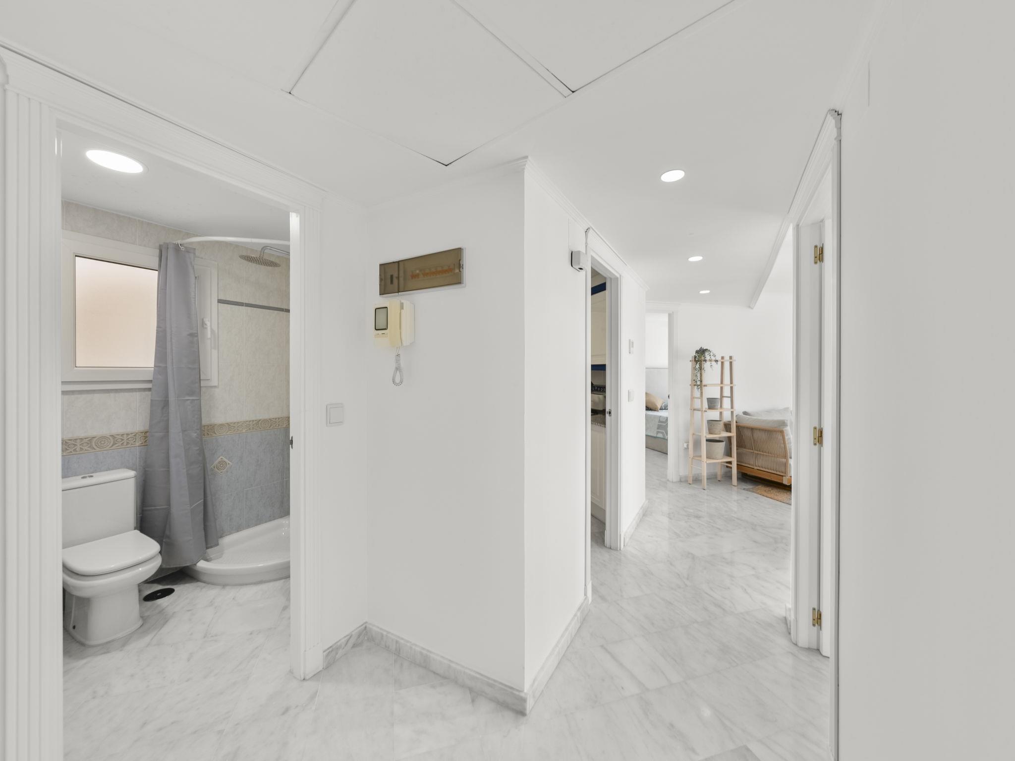 "Panorama", 3-Zimmer-Wohnung 119 m2 im 2. Stock. Geräumig und hell, schön eingerichtet: offenes Wohn-/Esszimmer mit Digital-TV, Klimaanlage und Warmluftheizung. Ausgang zur Terrasse. 1 Zimmer mit 1 franz. Bett (1 x 160 cm, Länge 200 cm), Bad/Bidet/WC, Klimaanlage, Ventilator und Warmluftheizung. 1 Zimmer mit 2 Betten (90 cm, Länge 200 cm), Klimaanlage, Ventilator und Warmluftheizung. Küche (Backofen, Geschirrspüler, 3 Induktionskochplatten, Toaster, Wasserkocher, Mikrowelle, elektrische Kaffeemaschine). Dusche/WC. Grosse Terrasse. Terrassenmöbel, Sitzplatz. Panoramasicht auf das Meer und das Schwimmbad. Zur Verfügung: Waschmaschine, Bügeleisen, Kinderhochstuhl, Babybett bis 2 Jahre, Haartrockner. Internet (WLAN, gratis). Parkplatz Nr. 37 (überdacht). Bitte beachten: Nichtraucher-Haus. AT-503083-A // Reg. Nr.: ESFCTU00000305300027628600000000000000000AT-503083-A3