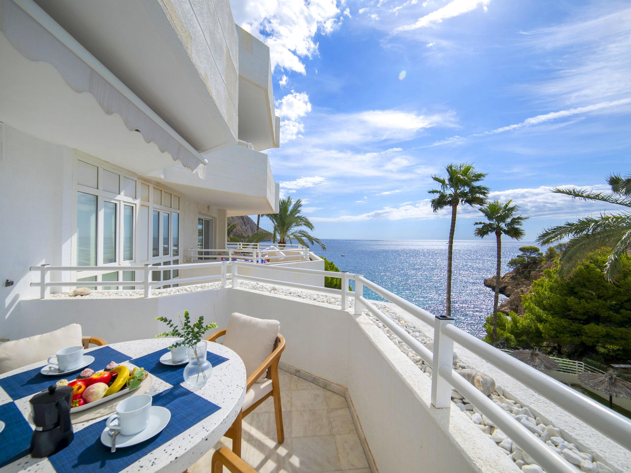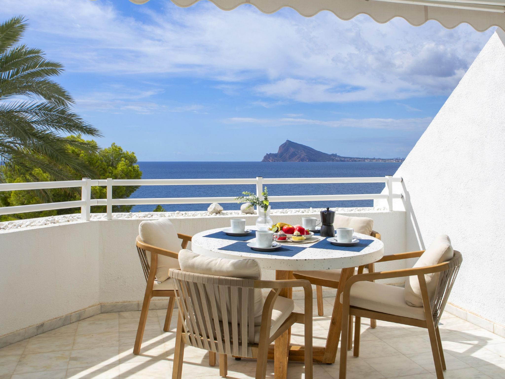 Mascarat: Schönes Appartementhaus "Panorama". 7 km vom Zentrum von Altea, 6 km vom Zentrum von Calpe, ruhige, sonnige Lage, verkehrsberuhigte Zone, direkt am Meer, direkt am Strand. Zur Mitbenutzung: Grundstück (eingezäunt), Garten mit Rasen, Schwimmbad (20 x 8 m, saisonale Verfügbarkeit: 01.Jan. - 31.Dez.). Aussendusche. Im Hause: Fahrstuhl. Lebensmittelgeschäft 3 km, Supermarkt 3 km, Restaurant 2 km, Bushaltestelle "Parada Bus" 5.5 km, Felsstrand "Playa Mascarat" 80 m. Sporthafen 600 m, Jacht-Hafen 600 m, Golfplatz (9 Loch) 7 km. Nahe gelegene Sehenswürdigkeiten: Aqualandia, Mundomar, Terra Mítica, Terra Natura, Les Fonts de l'Algar, Castillo de Guadalest.