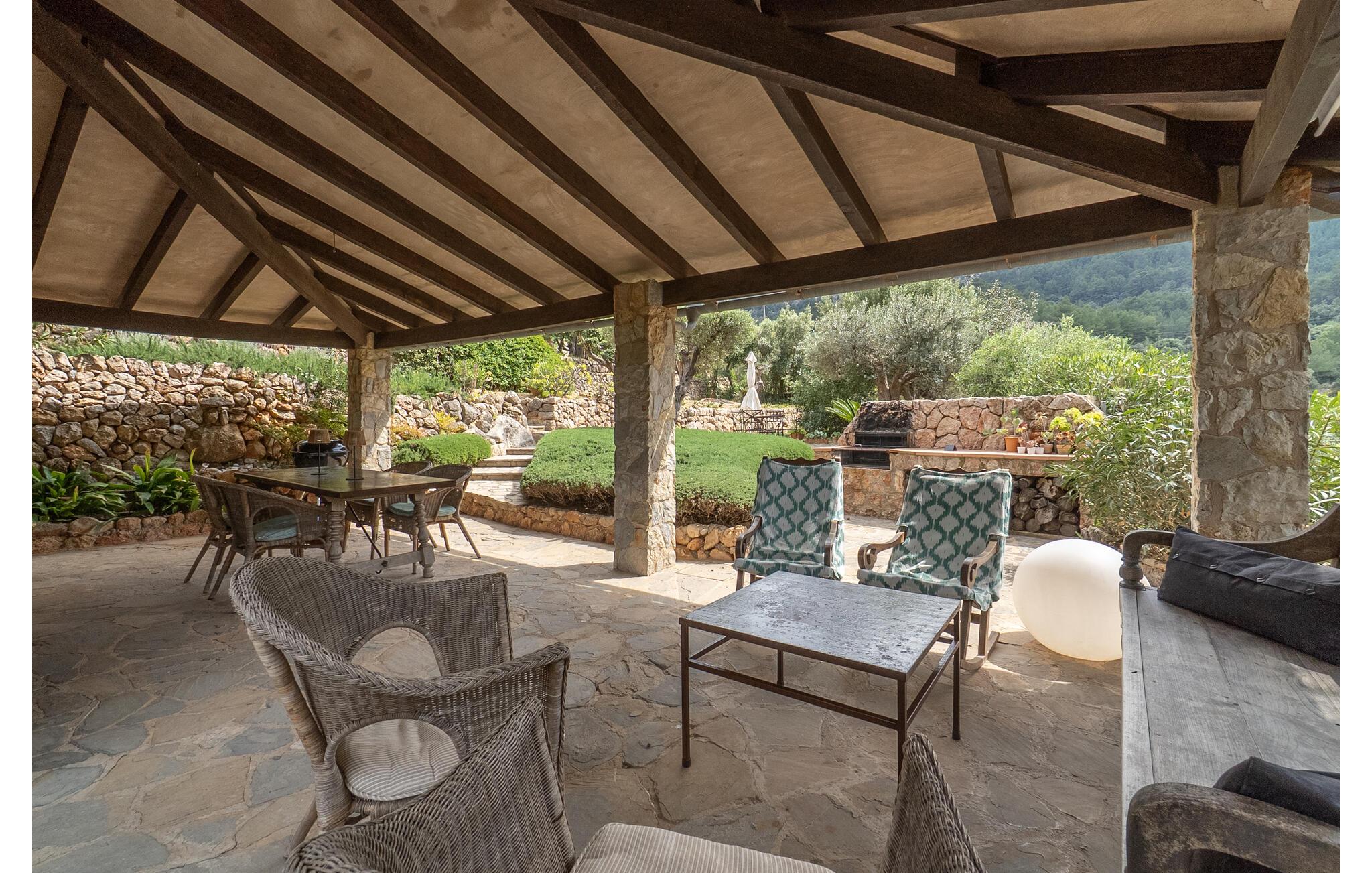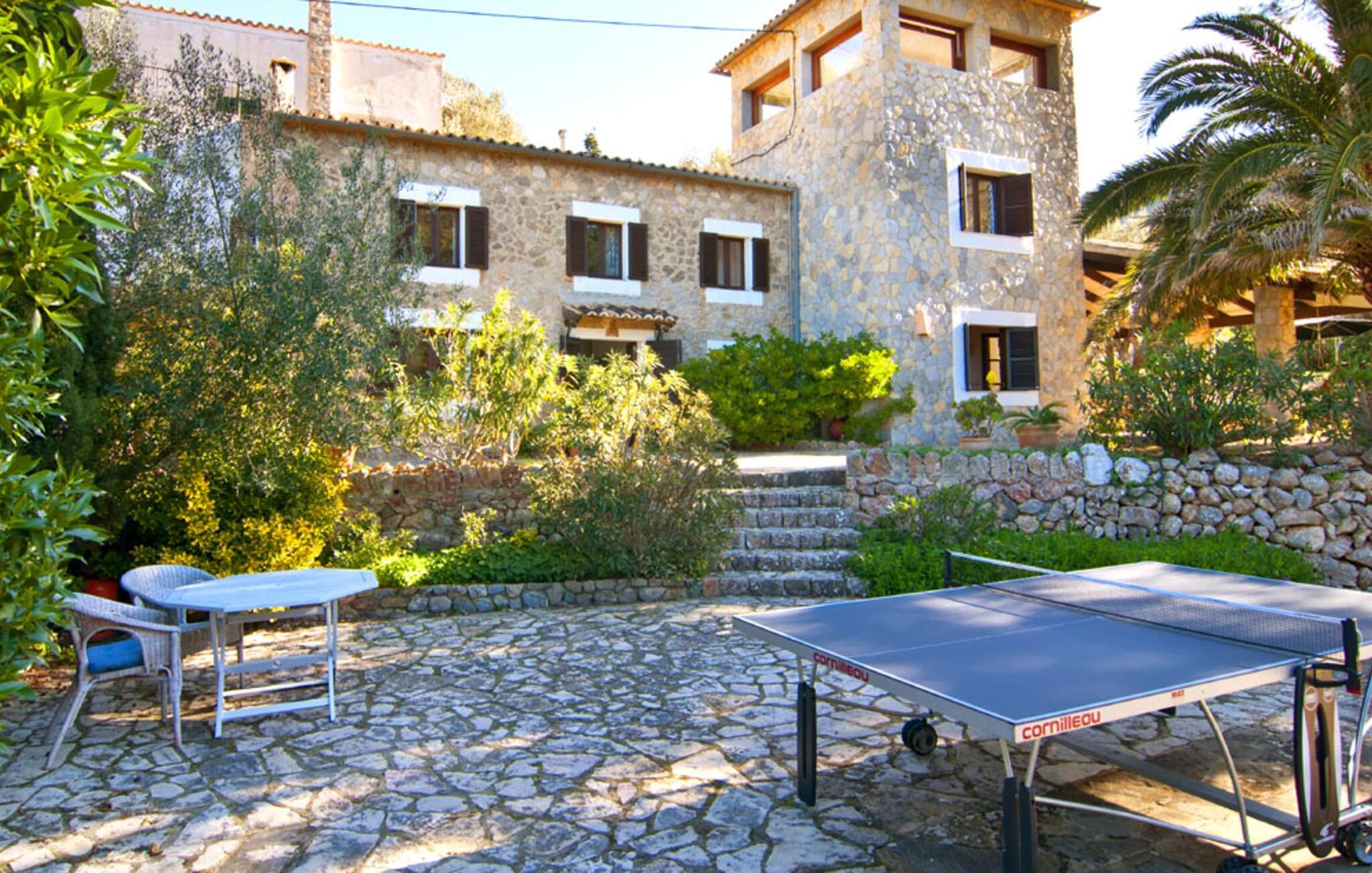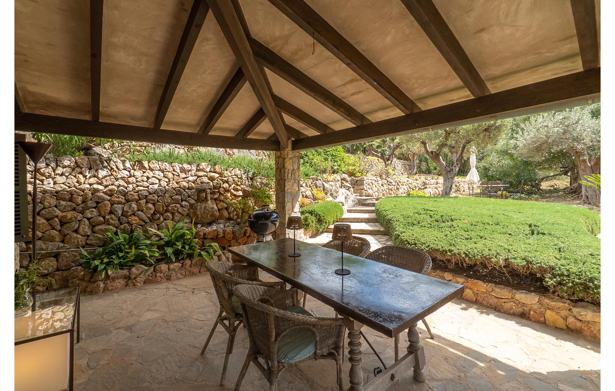 Die typische Bruchsteinvilla „Ana“ befindet sich in phänomenaler Hanglage oberhalb der Bucht von Estellencs, die sich aufgrund ihres kristallklaren Wassers großer Beliebtheit erfreut. Wer die Natur und die Ruhe liebt, aber dennoch direkt am Meer liegen und seinen Urlaub entspannt verbringen möchte, ist hier genau richtig, wunderbar eingebettet in die herrliche Landschaft. Die Hanglage im Tramuntana-Gebirge bietet der Villa Schutz inmitten ehrwürdiger, großer Bäume. Genießen Sie diese fantastische Kulisse mit Blick auf das Meer – einfach spektakulär. Die zauberhaft anmutende Natursteinvilla liegt auf einem sehr gepflegten und unberührten Grundstück. Die verschiedenen, von Natursteinen umrahmten Terrassen und Außensitzplätze fügen sich nahtlos in die Umgebung ein und die hübsche Villenanlage verschmilzt mit der Natur. Egal, ob Sie Tischtennis spielen, am Pool auf einer der Sonnenliegen im Schatten der Markise verweilen, an einem der Tische im Schatten der Olivenbäume sitzen und den Blick auf das Meer genießen möchten und ferne Landschaften – diese Villa ist voller wahrer Wohlfühlorte. Während Sie den Außengrill nutzen, um ein schönes Abendessen zuzubereiten und gemeinsam am Tisch auf der überdachten Terrasse speisen, können Sie diese ruhige Urlaubsoase so richtig genießen.