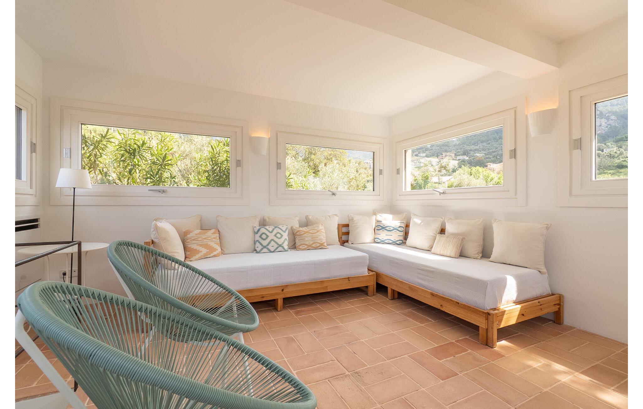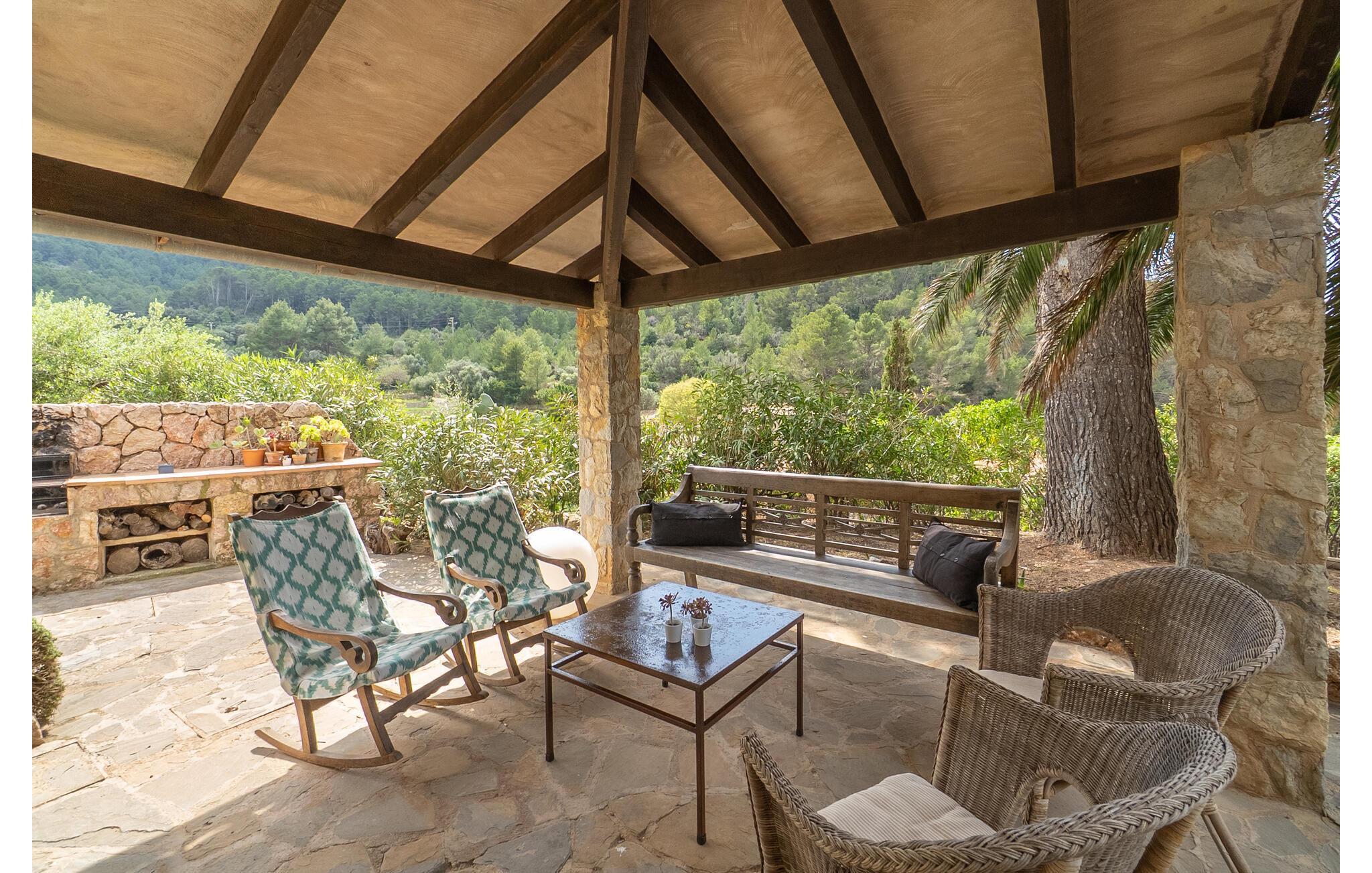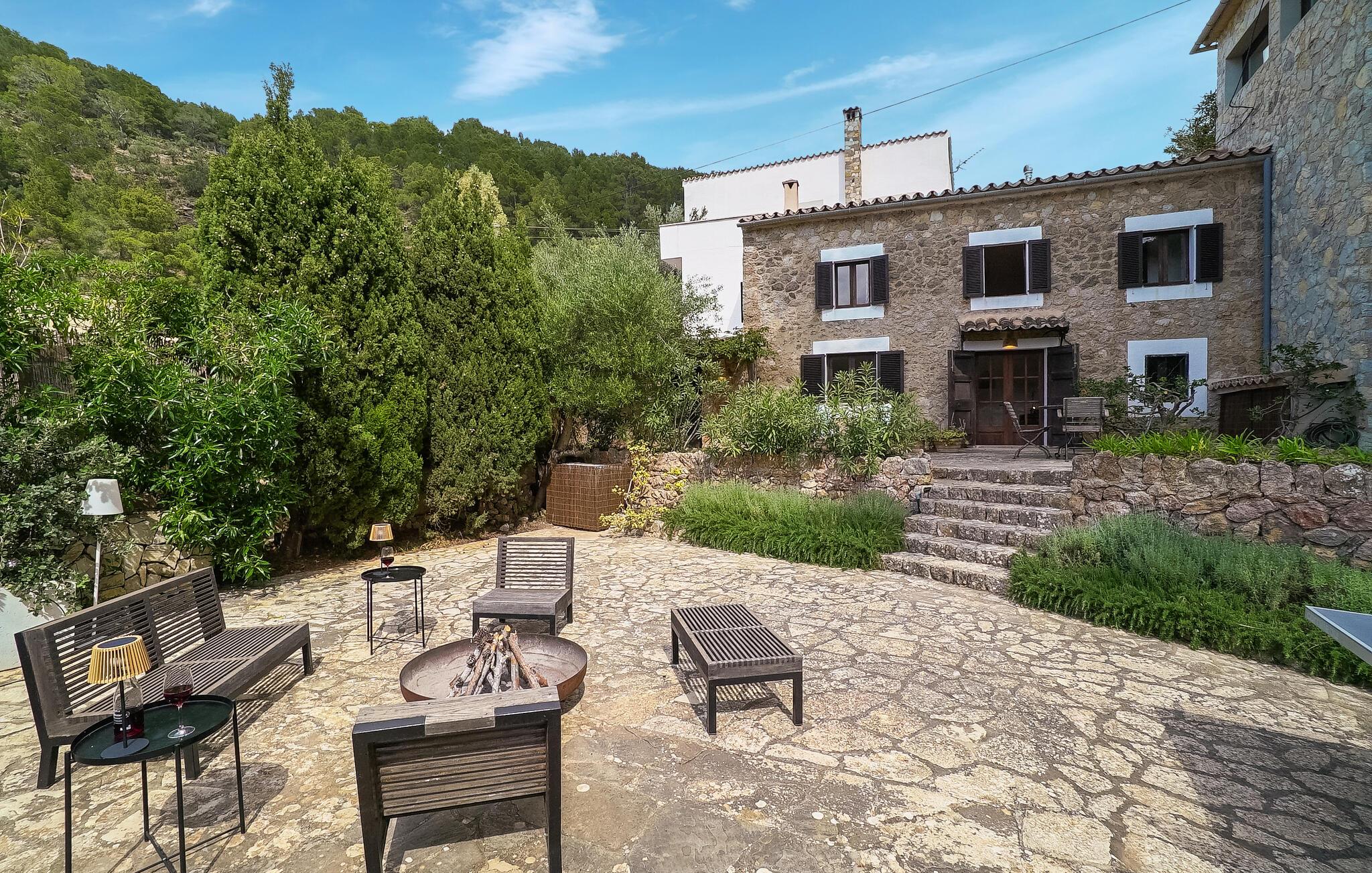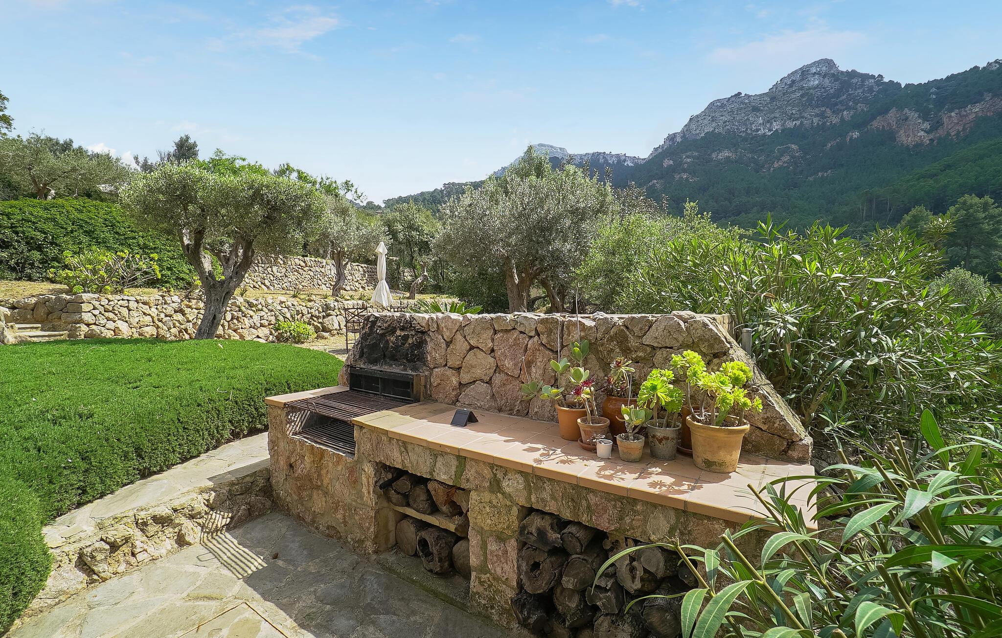 Die typische Bruchsteinvilla „Ana“ befindet sich in phänomenaler Hanglage oberhalb der Bucht von Estellencs, die sich aufgrund ihres kristallklaren Wassers großer Beliebtheit erfreut. Wer die Natur und die Ruhe liebt, aber dennoch direkt am Meer liegen und seinen Urlaub entspannt verbringen möchte, ist hier genau richtig, wunderbar eingebettet in die herrliche Landschaft. Die Hanglage im Tramuntana-Gebirge bietet der Villa Schutz inmitten ehrwürdiger, großer Bäume. Genießen Sie diese fantastische Kulisse mit Blick auf das Meer – einfach spektakulär. Die zauberhaft anmutende Natursteinvilla liegt auf einem sehr gepflegten und unberührten Grundstück. Die verschiedenen, von Natursteinen umrahmten Terrassen und Außensitzplätze fügen sich nahtlos in die Umgebung ein und die hübsche Villenanlage verschmilzt mit der Natur. Egal, ob Sie Tischtennis spielen, am Pool auf einer der Sonnenliegen im Schatten der Markise verweilen, an einem der Tische im Schatten der Olivenbäume sitzen und den Blick auf das Meer genießen möchten und ferne Landschaften – diese Villa ist voller wahrer Wohlfühlorte. Während Sie den Außengrill nutzen, um ein schönes Abendessen zuzubereiten und gemeinsam am Tisch auf der überdachten Terrasse speisen, können Sie diese ruhige Urlaubsoase so richtig genießen.
