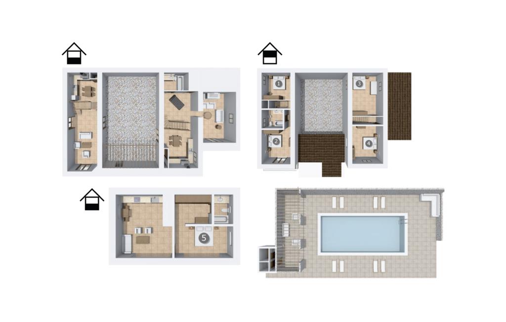 Mit geschmackvoller, gemütlicher Ausstattung punktet die Villa „Andratx“ zudem mit insgesamt 315 m² Wohnfläche verteilt auf drei separate Gebäude. Die Räumlichkeiten wurden 2005 komplett renoviert und verfügen daher über moderne Einrichtungen mit dem typisch mallorquinischen Flair, das diesen Ort so liebenswert macht. Mit nostalgischen Accessoires, Decken mit traditionellen Holzbalken, schöner Beleuchtung und gemütlichen Möbeln verfügen die Ferienhäuser über eine sehr ästhetische Innenatmosphäre. Die beiden größeren Häuser verfügen jeweils über 120 m² Wohnfläche, während die kleinere Villa über 75 m² verfügt. Jedes Gebäude verfügt über eine voll ausgestattete Küche mit integriertem Essbereich und ein eigenes Badezimmer. Lassen Sie Haartrockner und Bügeleisen gerne zu Hause, diese stehen den Gästen ebenfalls zur Verfügung. Charmante Wohnräume mit bequemen Sesseln und Sofas laden zum Entspannen oder gemeinsamen Verweilen ein. Je nach Lust und Laune können Sie auch eine DVD anschauen, ein Spiel spielen oder den Fernseher einschalten, um Ihre Lieblingssendung zu sehen. Die kleinere Villa verfügt über ein Doppelzimmer, während die anderen beiden jeweils über zwei Doppelzimmer (oder ein Dreibettzimmer) verfügen. Die Schlafzimmer sind besonders gemütlich, bieten viel Platz zum ruhigen Entspannen und verfügen jeweils über eine eigene Klimaanlage, sodass die Temperatur im heißen Sommer individuell eingestellt werden kann. Durch die Trennung der drei Wohneinheiten kann jedes Mitglied Ihrer Reisegruppe, ob Familie oder Freunde, die Ruhe und Privatsphäre genießen, die es sich wünscht, und gleichzeitig ausreichend Platz und Möglichkeiten haben, die schönste Zeit des Jahres gemeinsam zu verbringen. Bei Bedarf kann das Ehepaar, dem die Immobilie gehört, Sie gegen eine Gebühr mit allen Mitteln beherbergen, die Ihren Aufenthalt angenehmer machen, z. B. Wäsche holen oder zum Bäcker laufen.