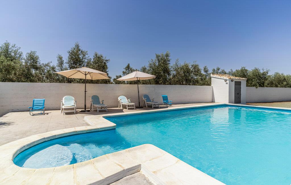 Draußen lädt der herrliche Pool zu erfrischenden Momenten unter dem blauen Himmel ein. Lassen Sie auf der Sonnenliege die Seele baumeln, bereiten Sie köstliche Gerichte auf dem gemauerten Grill zu und plaudern Sie bei Wein und Kerzenschein in die lauen Sommernächte hinein.