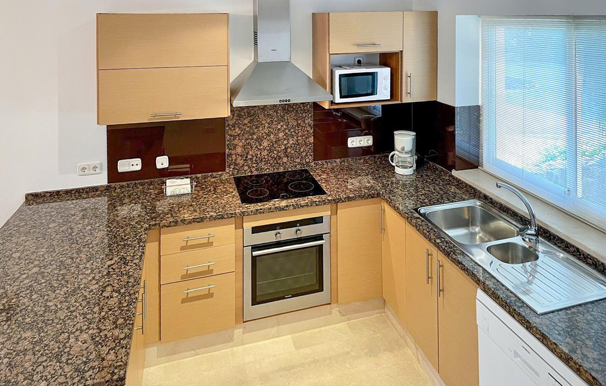 Die Küchenzeile verfügt über heißes Wasser