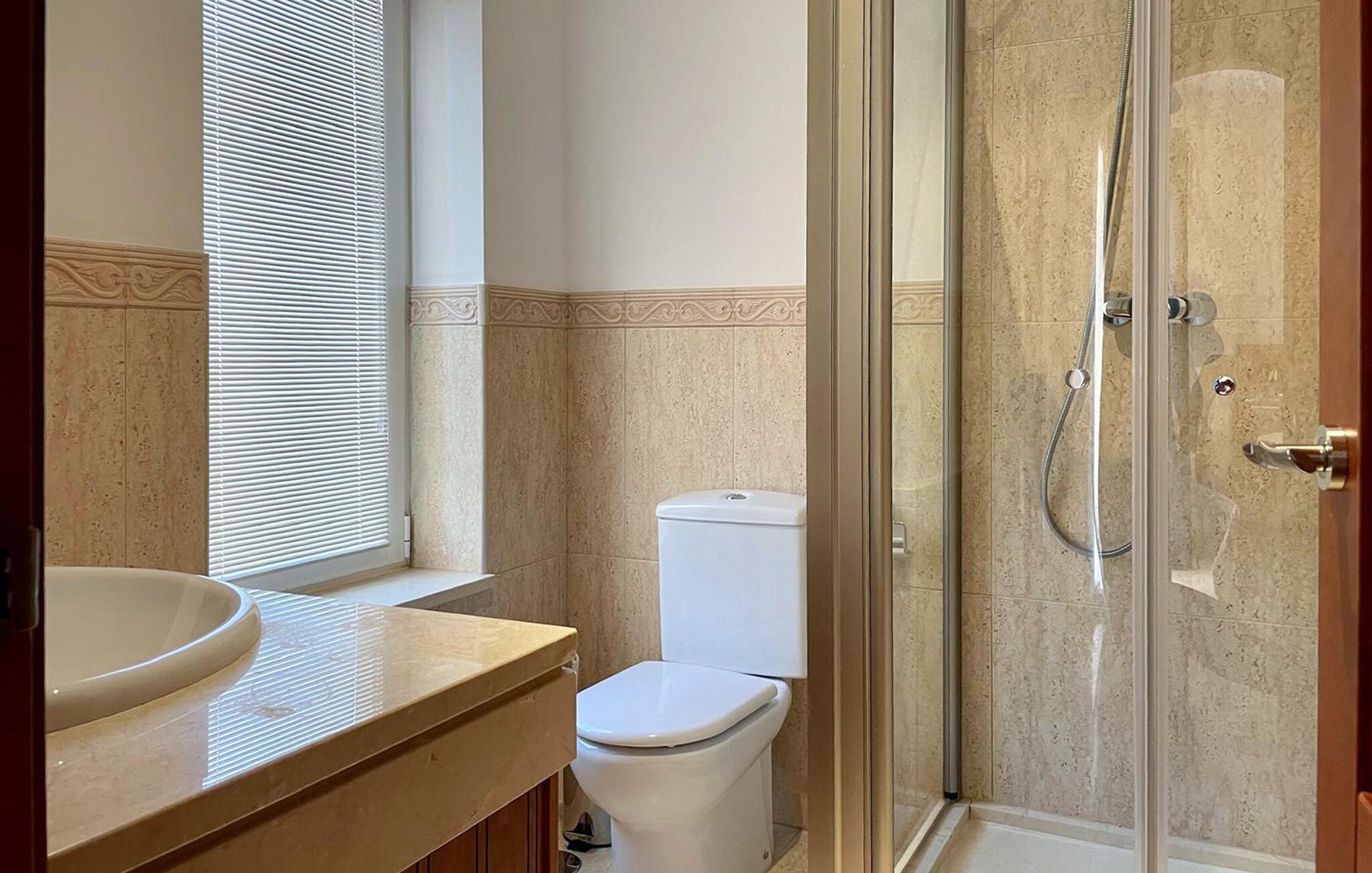 Badezimmer 8m2 (nr. 1) - WC. Warmes und kaltes Wasser. Handdusche, Wanne und Dusche
