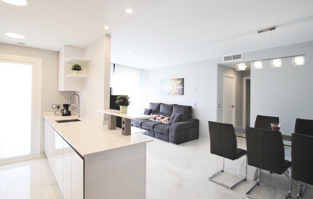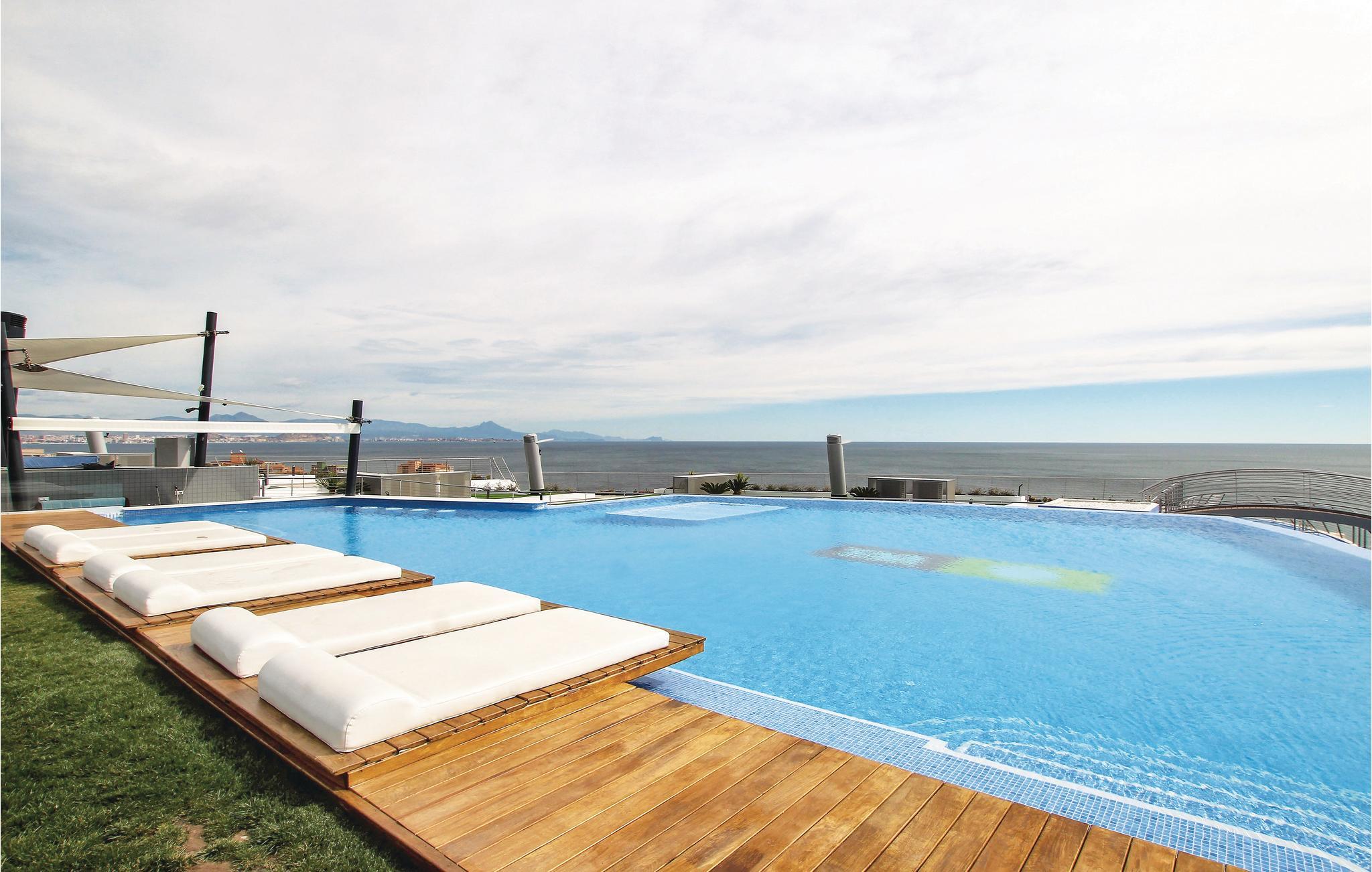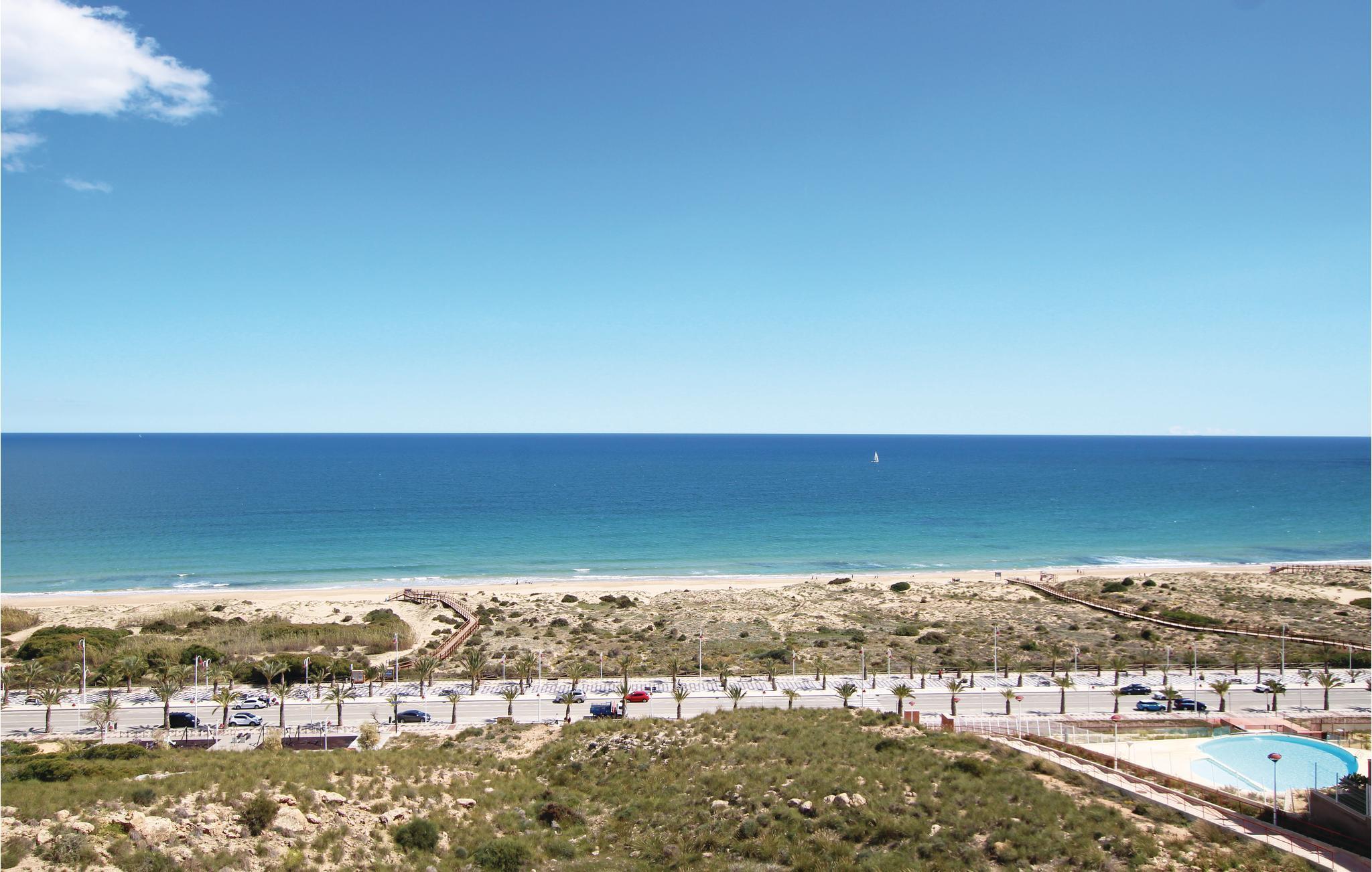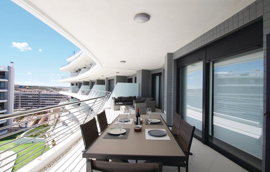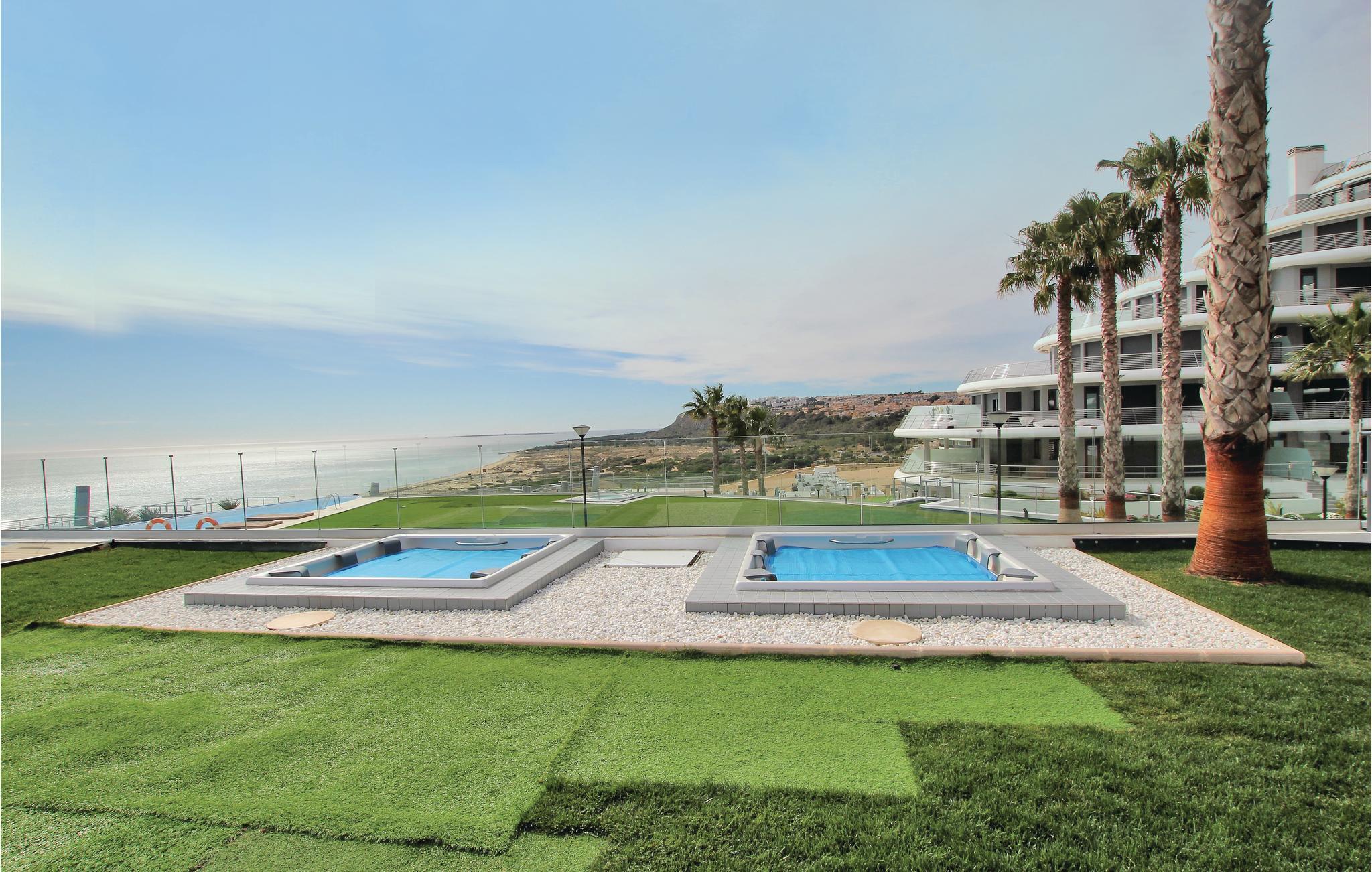 Dieses luxuriöse Ferienapartment liegt in einer der exklusivsten Urbanisationen von Arenales del Sol and der Costa Blanca, nur 350 m von traumhaften Sandstrand entfernt. Die Wohnanlage verfügt über drei Whirlpools, einen Warmwasserpool, Fitnessbereich, Sauna, Spielbereich für Kinder, Tennis – und Paddleplatz, Sportzentrum, Cafeteria und einen atemberaubenden Ausblick auf das Meer.