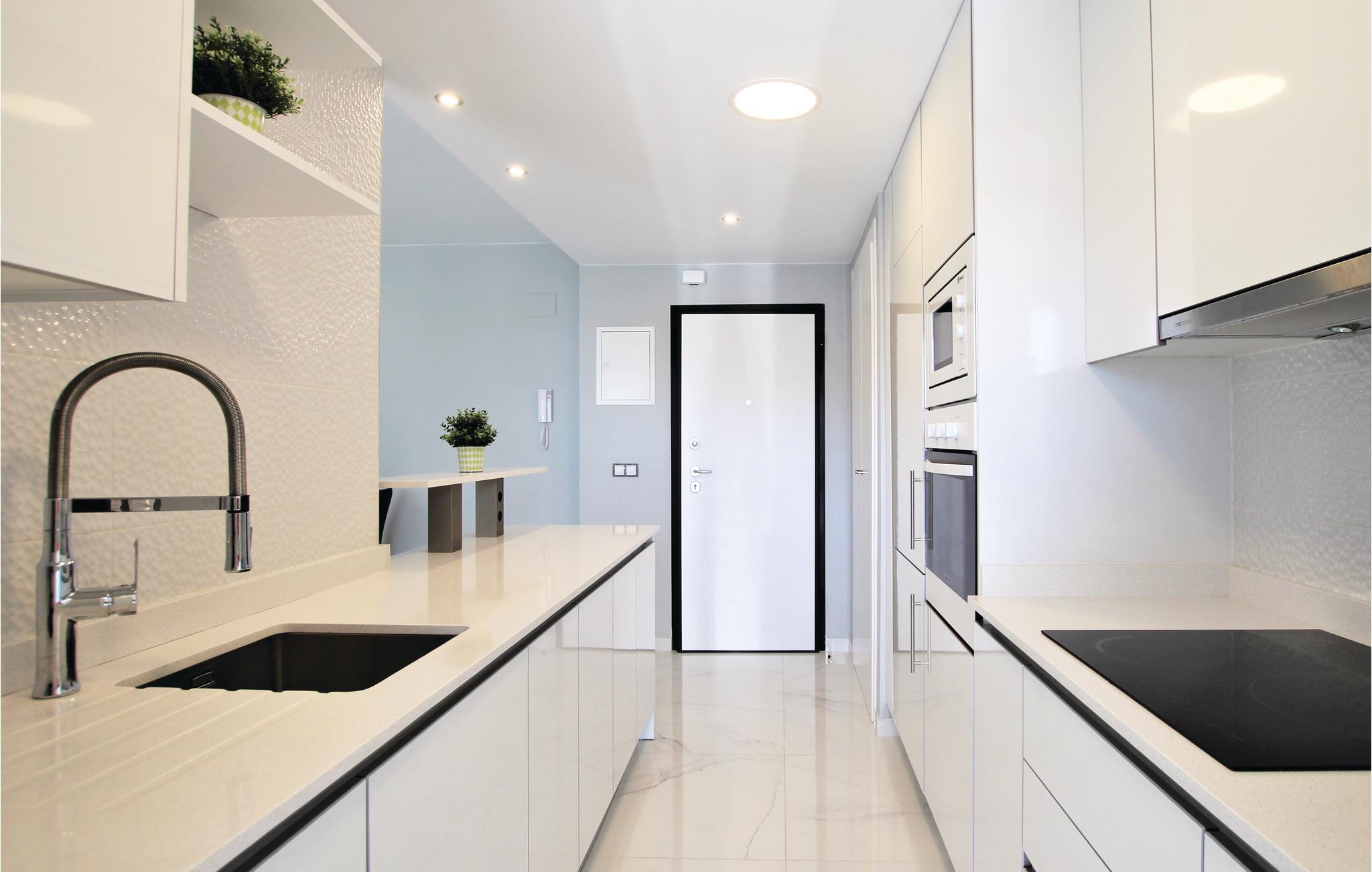Die Küchenzeile verfügt über heißes Wasser