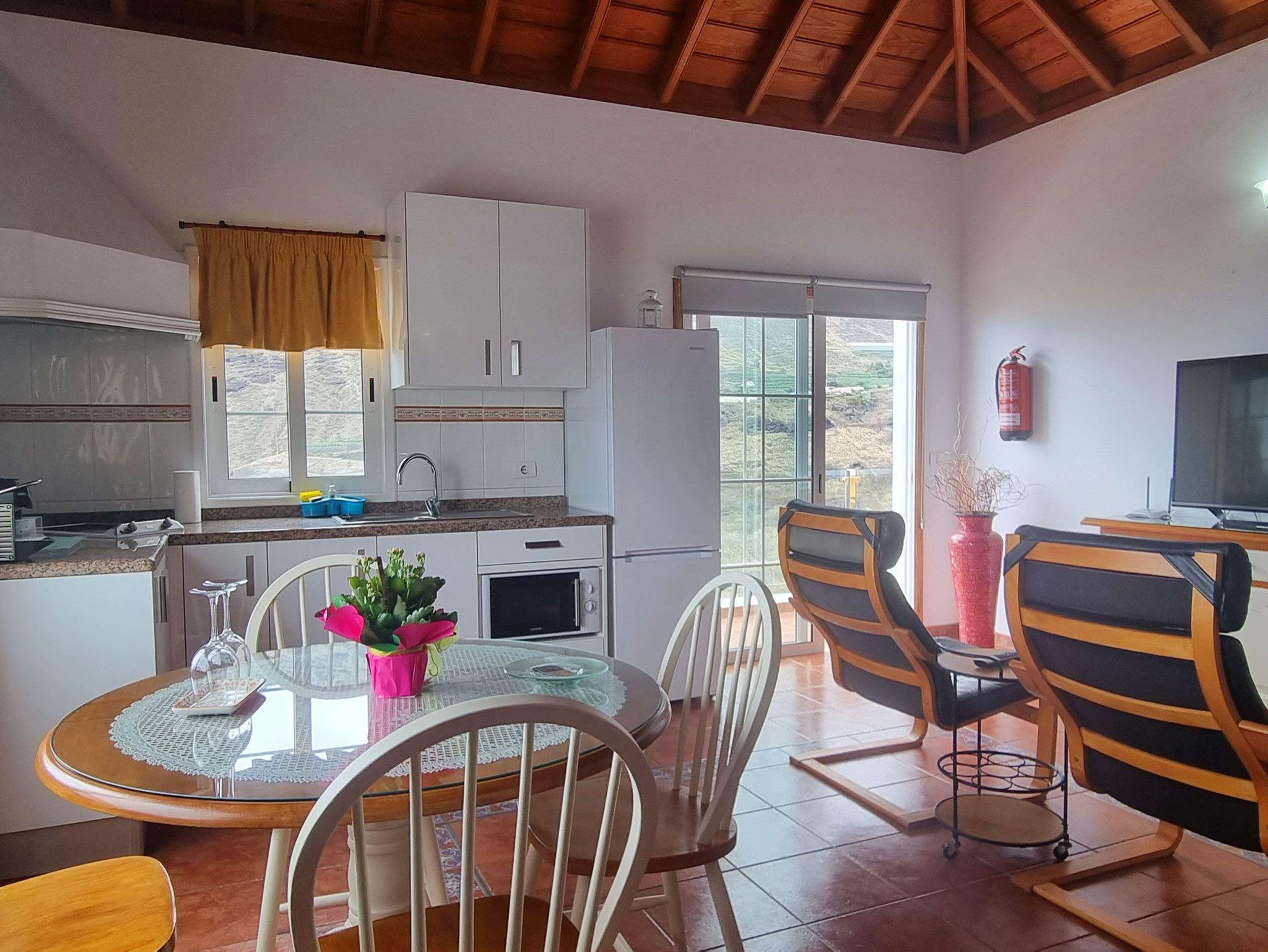 Vom Balkon aus haben Sie fantastischen Blick bis zum Meer, zum Mirador del Time und auf der anderen Seite in den Barranco de Angustias. Die kleine Anlage hat 3 Einheiten, aktuell sind jedoch 2 fest vermietet, nur Casita Acerina A steht für Urlaubsgäste bereit. Acerina A hat den schönsten Blick nach Puerto de Tazacorte und in die Caldera.