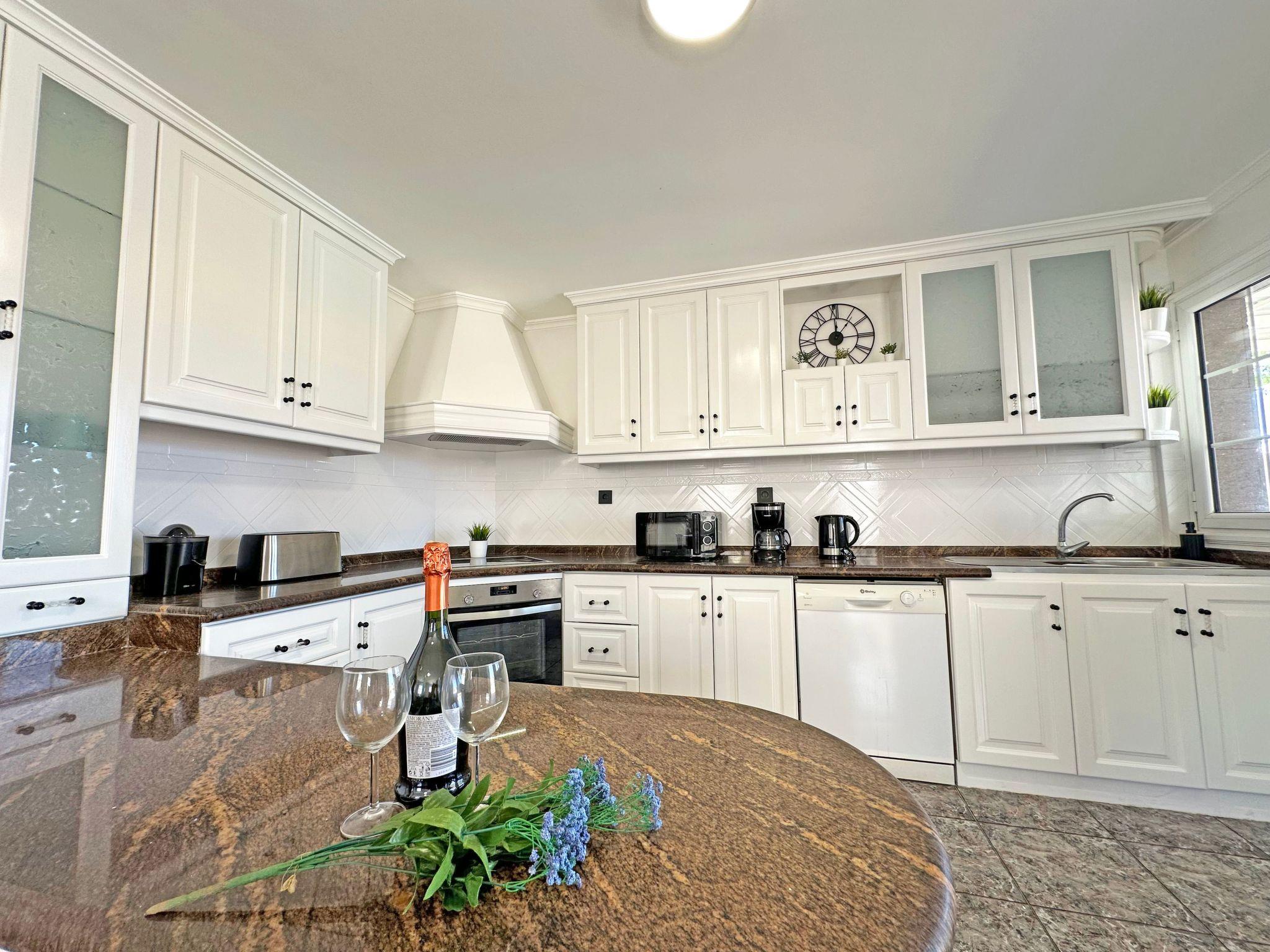 Im Inneren des Hauses erwartet Sie eine einladende und gut ausgestattete Umgebung mit 7 Schlafzimmern und 4 Badezimmern, die sowohl mit Dusche als auch mit Badewanne ausgestattet sind, um den Vorlieben aller Gäste gerecht zu werden. Von der Waschmaschine über die Filterkaffeemaschine und den Geschirrspüler bis hin zum unverzichtbaren Wasserkocher findet sich Praktisches in jedem Winkel des Hauses, so dass ein komfortabler und problemloser Aufenthalt für alle gewährleistet ist.