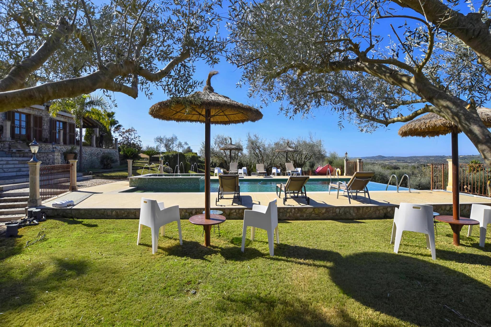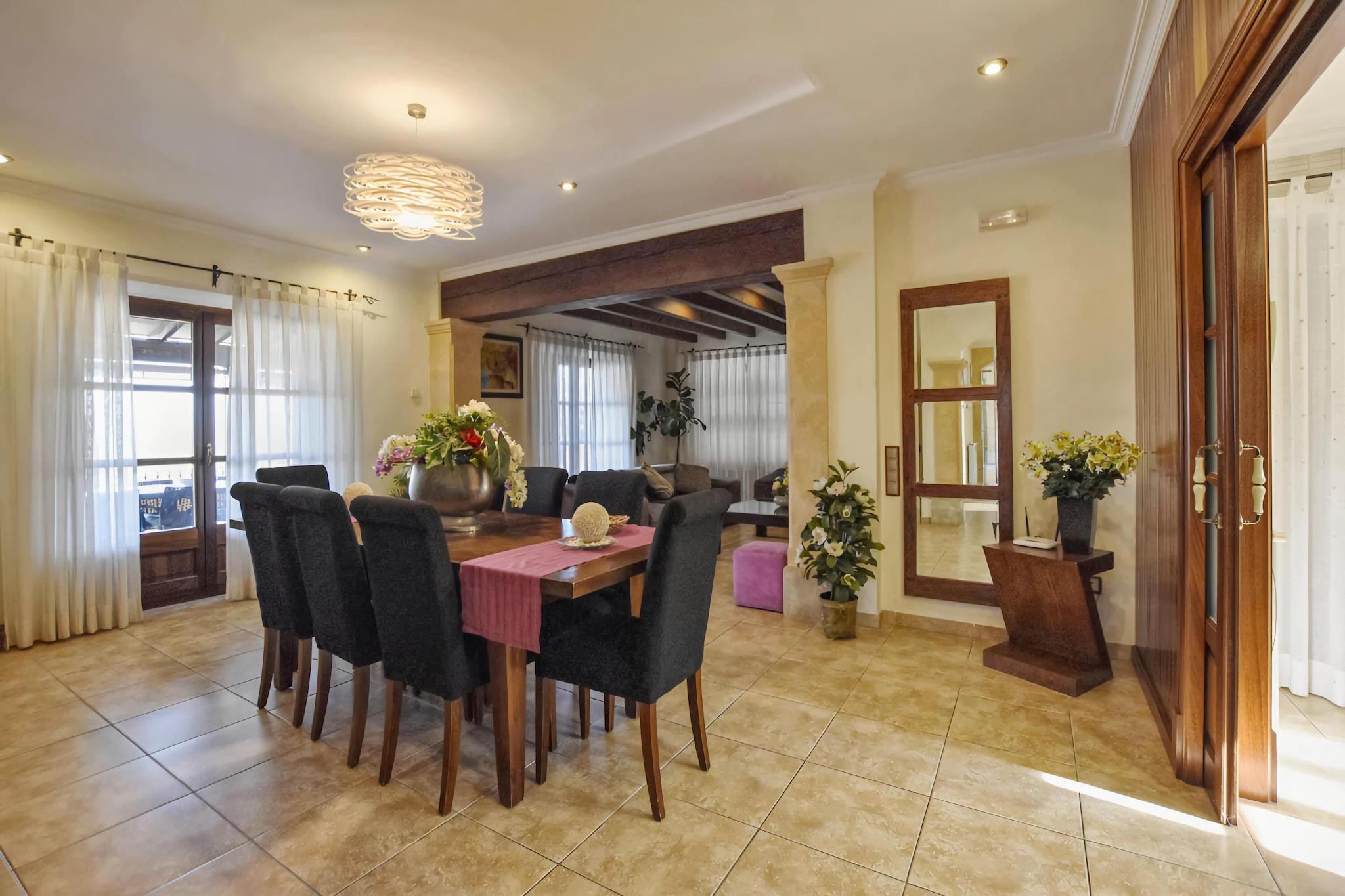 Elegantes Landhaus Auf einem ruhigen Anwesen in der Nähe von Ariany gelegen, bietet dieses geräumige Landhaus eine einzigartige Balance aus Komfort und Stil. Auf über 400 m² bietet das Haus acht Doppelzimmer, sechs Badezimmer – zwei davon mit Hydromassageduschen und Badewannen –, ein großes Wohn- und Esszimmer mit Kamin und eine voll ausgestattete moderne Küche. Die sorgfältig mit eleganten Möbeln eingerichteten Innenräume schaffen eine einladende Atmosphäre für gesellige Zusammenkünfte, während Terrassen und Veranden den Wohnraum nach draußen erweitern. Private Gärten und Ausblicke Das Haus ist von angelegten Gärten, schattigen Terrassen und einem privaten Pool mit Blick auf die Landschaft und die Berge umgeben. Gäste können auf Sonnenliegen entspannen, im Freien am Grill speisen oder den Sonnenuntergang von der Veranda aus beobachten. Die ruhige Lage lädt zum Abschalten ein, und dank der Nähe zu Ariany sind Cafés, Bäckereien und Geschäfte in wenigen Minuten erreichbar. Strände wie Can Picafort und Son Serra de Marina mit goldenem Sand und mediterranem Wasser sind nur eine kurze Autofahrt entfernt. Essen und lokales Leben Ariany und die umliegenden Dörfer bieten authentische mallorquinische Küche – von familiengeführten Restaurants mit Paella und Tapas bis hin zu rustikalen Lokalen mit saisonalen Inselprodukten. Für mehr Abwechslung sorgen die Küstenstädte Santa Margalida und Artà mit ihren lebhaften Märkten und traditionellen Bäckereien. Palma, knapp eine Stunde entfernt, lädt mit seinen historischen Straßen, lebhaften Restaurants und kulturellen Sehenswürdigkeiten zum Erkunden ein.
