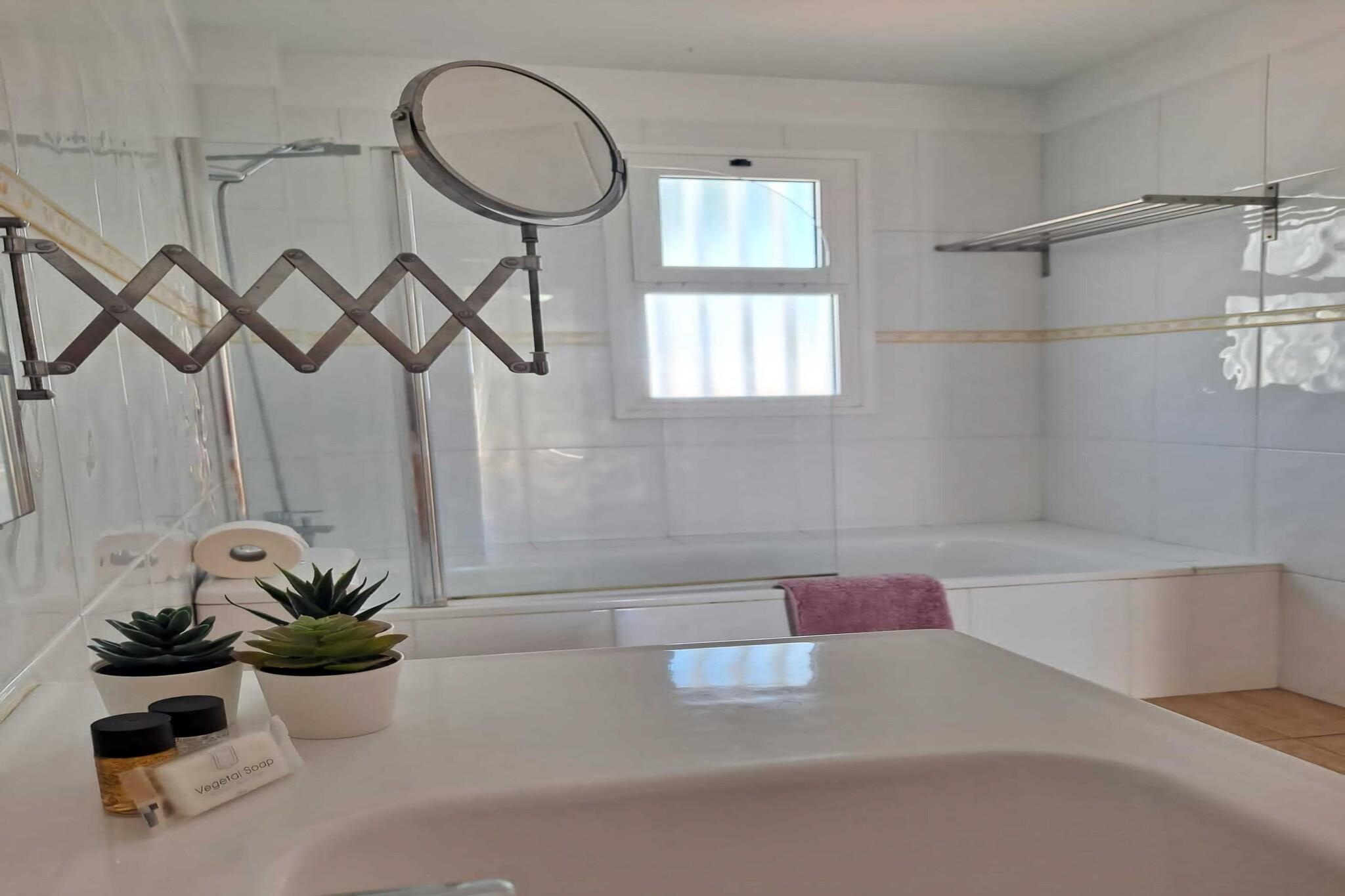 Dieses gemütliche Apartment auf der spanischen Insel Teneriffa hat eine schöne Lage am Meer und einen wunderschönen privaten Swimmingpool. Es ist ideal für einen romantischen Sonnenurlaub mit Ihrem Partner, sowohl im Sommer als auch im Winter. Auf Teneriffa finden Sie wunderschöne Strände, gemütliche Restaurants und schöne Geschäfte. Bewundern Sie den beeindruckenden Vulkan El Teide oder entscheiden Sie sich für einen Tag voller Wasserspaß im Siam Park. Auf dem Mercado Municipal Nuestra Senora de Africa finden Sie frische Produkte in authentischer Marktatmosphäre. Das Ferienhaus verfügt über einen wunderschönen Garten und Sie können Ihre Lieblingsgerichte in der geräumigen, gut ausgestatteten Küche zubereiten. Auf dem Balkon oder der Terrasse können Sie den Tag bei einem Glas Wein ausklingen lassen.