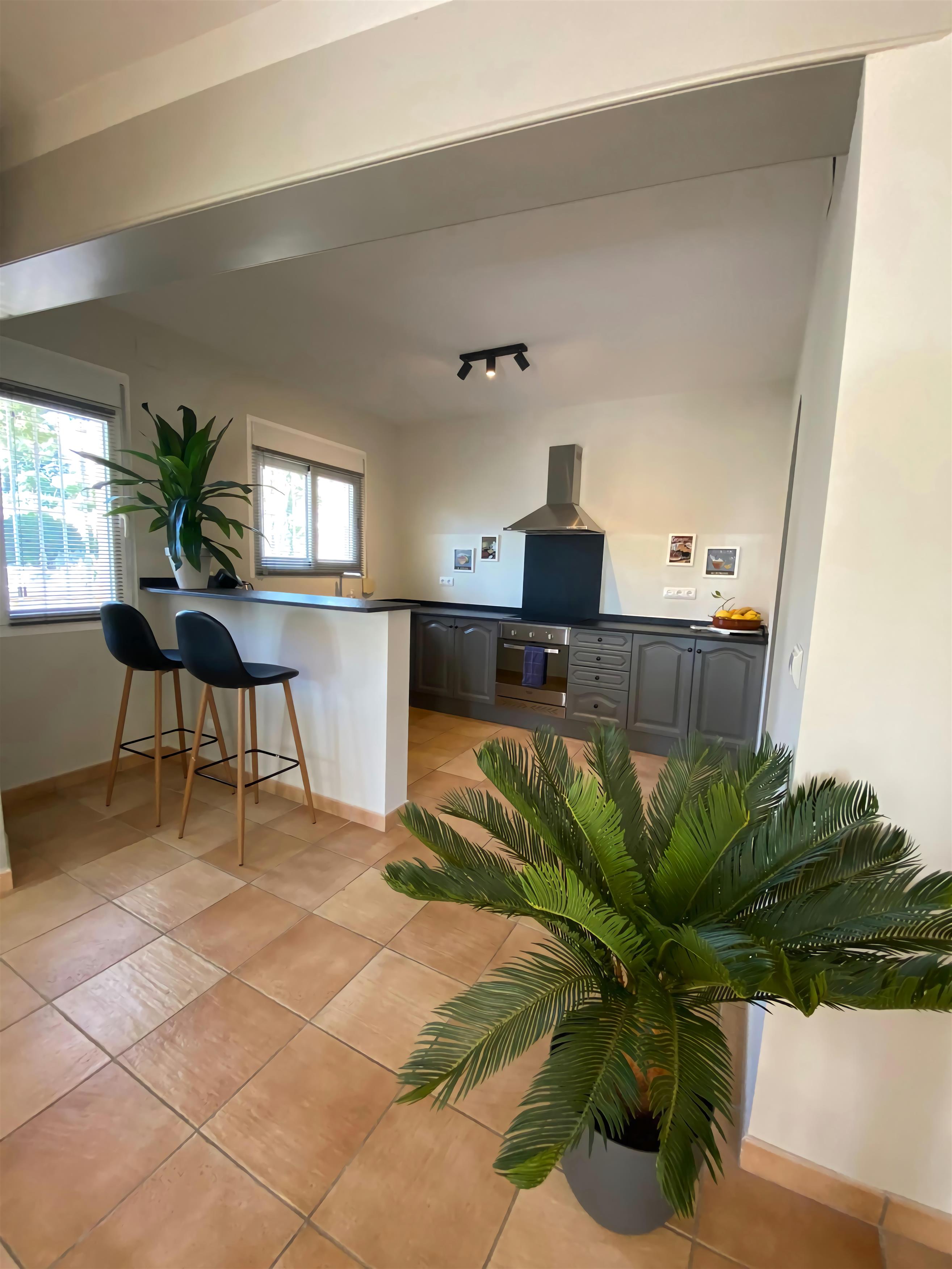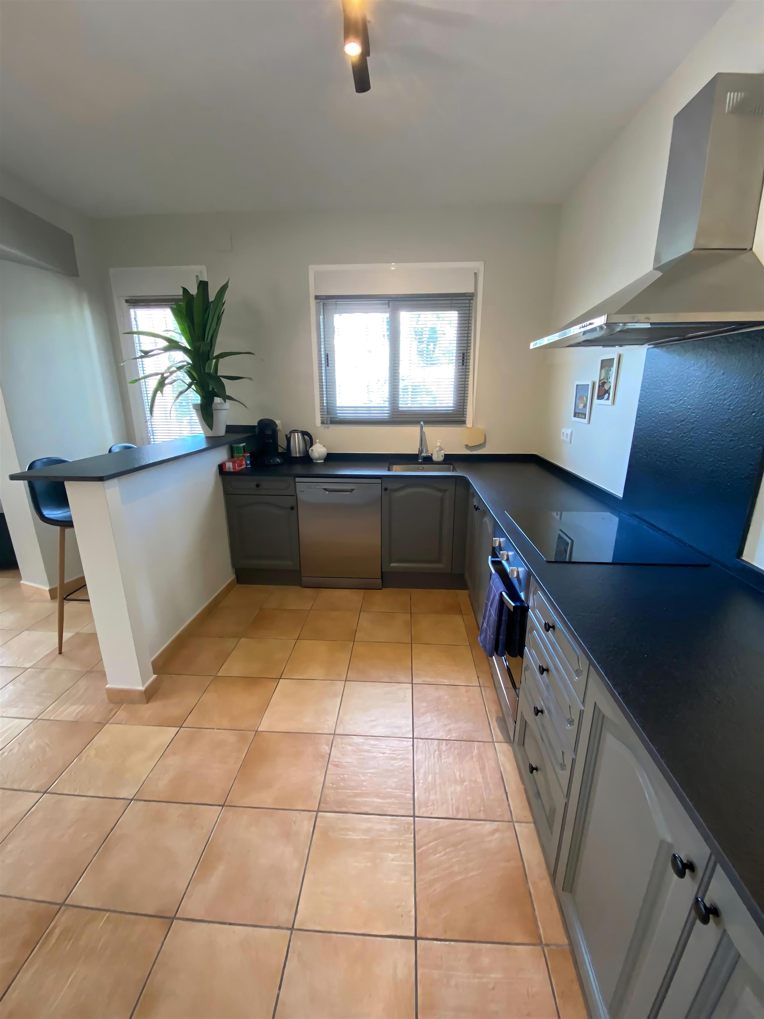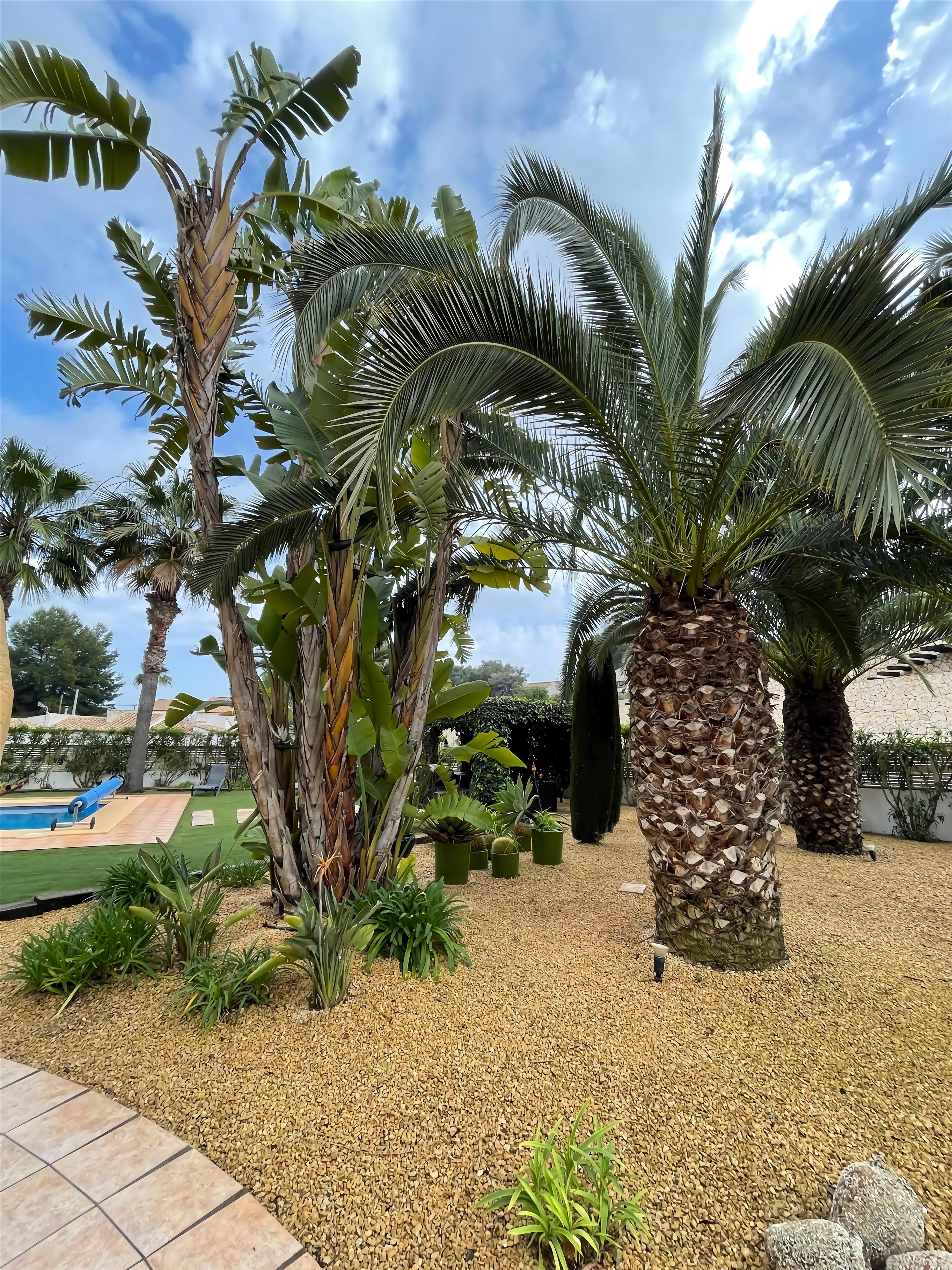 Die Casa Sonrisa ist eine wunderschöne Villa mit 3 Schlafzimmern und 3 Bädern. Im schönen Garten gibt es einen großen Pool. Hier ist genug Platz zum Entspannen und um draußen zu essen. Die Casa Sonrisa liegt in La Fustera, nicht weit von den Städten Calpe und Benissa entfernt. Hier finden Sie kilometerlange Sandstrände und ein großes Angebot an Cafés und Restaurants. Sie erreichen diese große Villa über ein privates Eingangstor. In der Auffahrt haben minimal 3 Autos Platz. Dann gelangen Sie über eine Treppe zum Eingang. Hier erwartet Sie eine gemütliche Sitzgelegenheit mit Blick über den Garten und auf den Pool. Drinnen angelangt finden Sie ein großes Wohn-/ Esszimmer sowie eine vollständig eingerichtete Küche. Das Wohnzimmer grenzt wiederum an eine Terrasse mit Tisch und Stühlen. Auf dieser Etage finden Sie auch das Elternschlafzimmer mit eigenem Bad sowie noch 2 Zimmer für je 2 Personen und eine Dusche. Im Parterre liegen die überdachte Terrasse mit Esstisch und Stühlen, ein Wohn-/ Esszimmer mit offener Küche und ein getrennter Hauswirtschaftsraum. Außerdem finden Sie hier noch 2 Schlafzimmer und eine Dusche vor. Alle Schlafzimmer sind mit Einbauschränken und Klimaanlage ausgestattet. Im Garten gibt es noch eine große Terrasse mit Esstisch, Stühlen und Sonnenschirmen inmitten von Obstbäumen, und beim Pool ist ein großer, schattiger Loungeraum mit gemütlichen Sofas, Stühlen und Liegen eingerichtet. Die Villa ist mit qualitativ hochwertigen Möbeln ausgestattet und alle Zimmer verfügen über eine Klimaanlage. Die Gärten sind herrlich angelegt, mit vielen Palmen und Obstbäumen. Es gibt genug Terrassen in der Sonne und im Schatten, auf denen man sich ausruhen, essen und sich am Pool sonnen kann. Diese herrliche Villa liegt in La Fustera, ein paar Kilometer von der Stadt Calpe entfernt. Das perfekte Reiseziel für Urlauber, die alle Hektik hinter sich lassen und sich auf der Terrasse am eigenen Pool entspannen möchten. Und wenn Sie doch mehr Unterhaltung suchen, sind Sie im Nu in Calpe mit seinen vielen Geschäften, Boutiquen, Restaurants und kleinen Bars an den Stränden. Hier trifft man tagsüber und auch abends immer Leute an - ideal für Jung und Alt. In den typisch spanischen Restaurants im Hafen kann man toll frischen Fisch essen und hier gibt es auch genügend gemütliche Cafés, wo man schön etwas trinken kann. Der geschützte Strand von La Fustera ist ungefähr 1 km von der Villa entfernt. Aktivurlauber können 2 km weiter diverse Wassersportarten betreiben.
