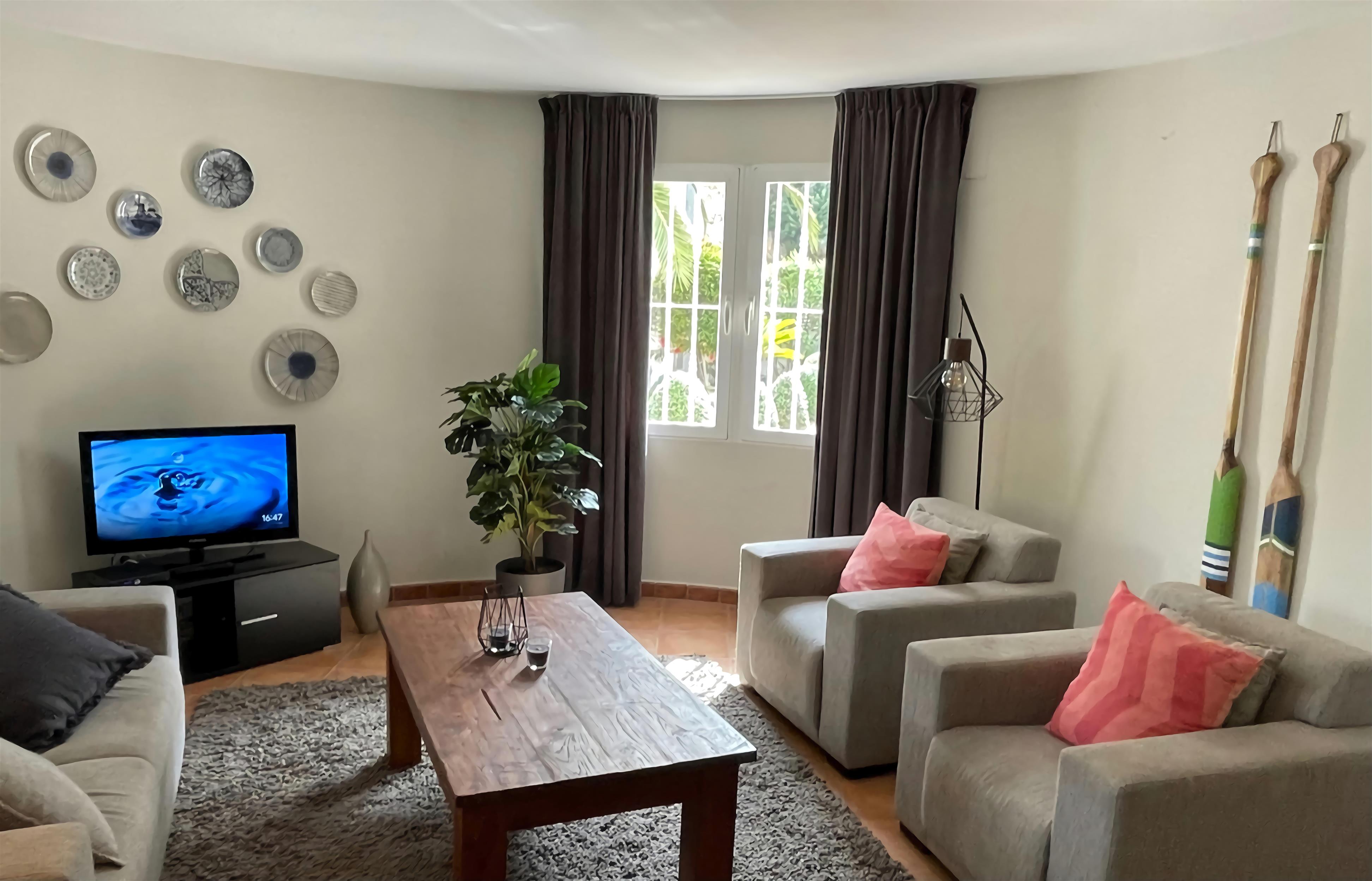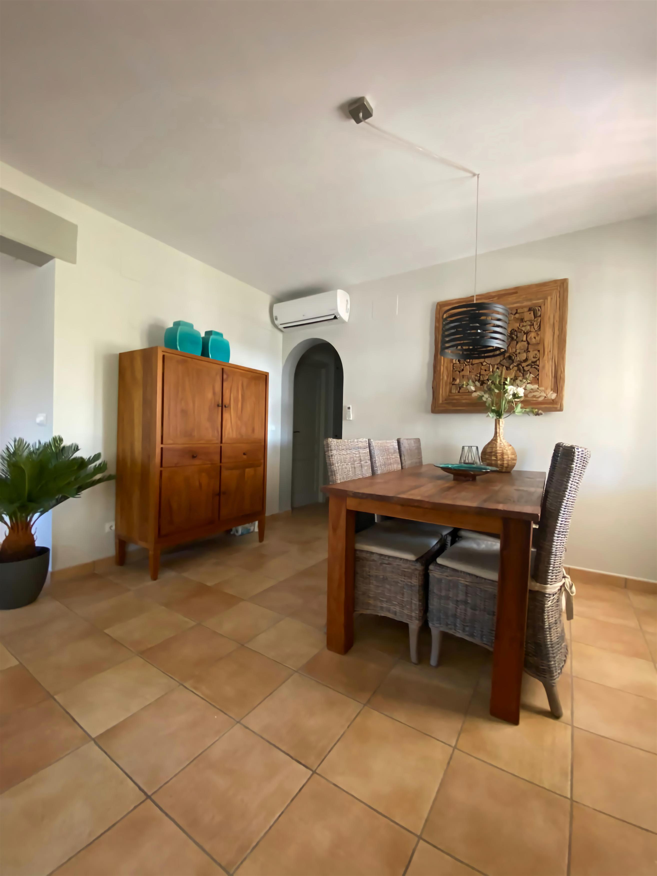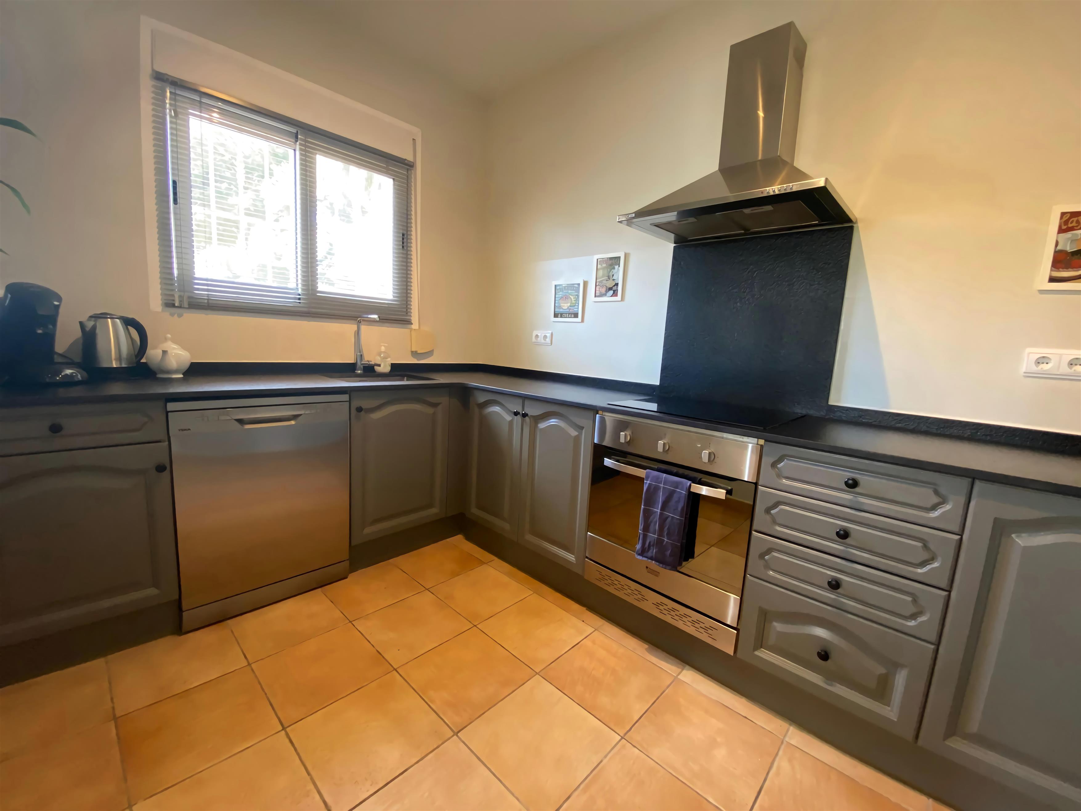 Die Casa Sonrisa ist eine wunderschöne Villa mit 3 Schlafzimmern und 3 Bädern. Im schönen Garten gibt es einen großen Pool. Hier ist genug Platz zum Entspannen und um draußen zu essen. Die Casa Sonrisa liegt in La Fustera, nicht weit von den Städten Calpe und Benissa entfernt. Hier finden Sie kilometerlange Sandstrände und ein großes Angebot an Cafés und Restaurants. Sie erreichen diese große Villa über ein privates Eingangstor. In der Auffahrt haben minimal 3 Autos Platz. Dann gelangen Sie über eine Treppe zum Eingang. Hier erwartet Sie eine gemütliche Sitzgelegenheit mit Blick über den Garten und auf den Pool. Drinnen angelangt finden Sie ein großes Wohn-/ Esszimmer sowie eine vollständig eingerichtete Küche. Das Wohnzimmer grenzt wiederum an eine Terrasse mit Tisch und Stühlen. Auf dieser Etage finden Sie auch das Elternschlafzimmer mit eigenem Bad sowie noch 2 Zimmer für je 2 Personen und eine Dusche. Im Parterre liegen die überdachte Terrasse mit Esstisch und Stühlen, ein Wohn-/ Esszimmer mit offener Küche und ein getrennter Hauswirtschaftsraum. Außerdem finden Sie hier noch 2 Schlafzimmer und eine Dusche vor. Alle Schlafzimmer sind mit Einbauschränken und Klimaanlage ausgestattet. Im Garten gibt es noch eine große Terrasse mit Esstisch, Stühlen und Sonnenschirmen inmitten von Obstbäumen, und beim Pool ist ein großer, schattiger Loungeraum mit gemütlichen Sofas, Stühlen und Liegen eingerichtet. Die Villa ist mit qualitativ hochwertigen Möbeln ausgestattet und alle Zimmer verfügen über eine Klimaanlage. Die Gärten sind herrlich angelegt, mit vielen Palmen und Obstbäumen. Es gibt genug Terrassen in der Sonne und im Schatten, auf denen man sich ausruhen, essen und sich am Pool sonnen kann. Diese herrliche Villa liegt in La Fustera, ein paar Kilometer von der Stadt Calpe entfernt. Das perfekte Reiseziel für Urlauber, die alle Hektik hinter sich lassen und sich auf der Terrasse am eigenen Pool entspannen möchten. Und wenn Sie doch mehr Unterhaltung suchen, sind Sie im Nu in Calpe mit seinen vielen Geschäften, Boutiquen, Restaurants und kleinen Bars an den Stränden. Hier trifft man tagsüber und auch abends immer Leute an - ideal für Jung und Alt. In den typisch spanischen Restaurants im Hafen kann man toll frischen Fisch essen und hier gibt es auch genügend gemütliche Cafés, wo man schön etwas trinken kann. Der geschützte Strand von La Fustera ist ungefähr 1 km von der Villa entfernt. Aktivurlauber können 2 km weiter diverse Wassersportarten betreiben.