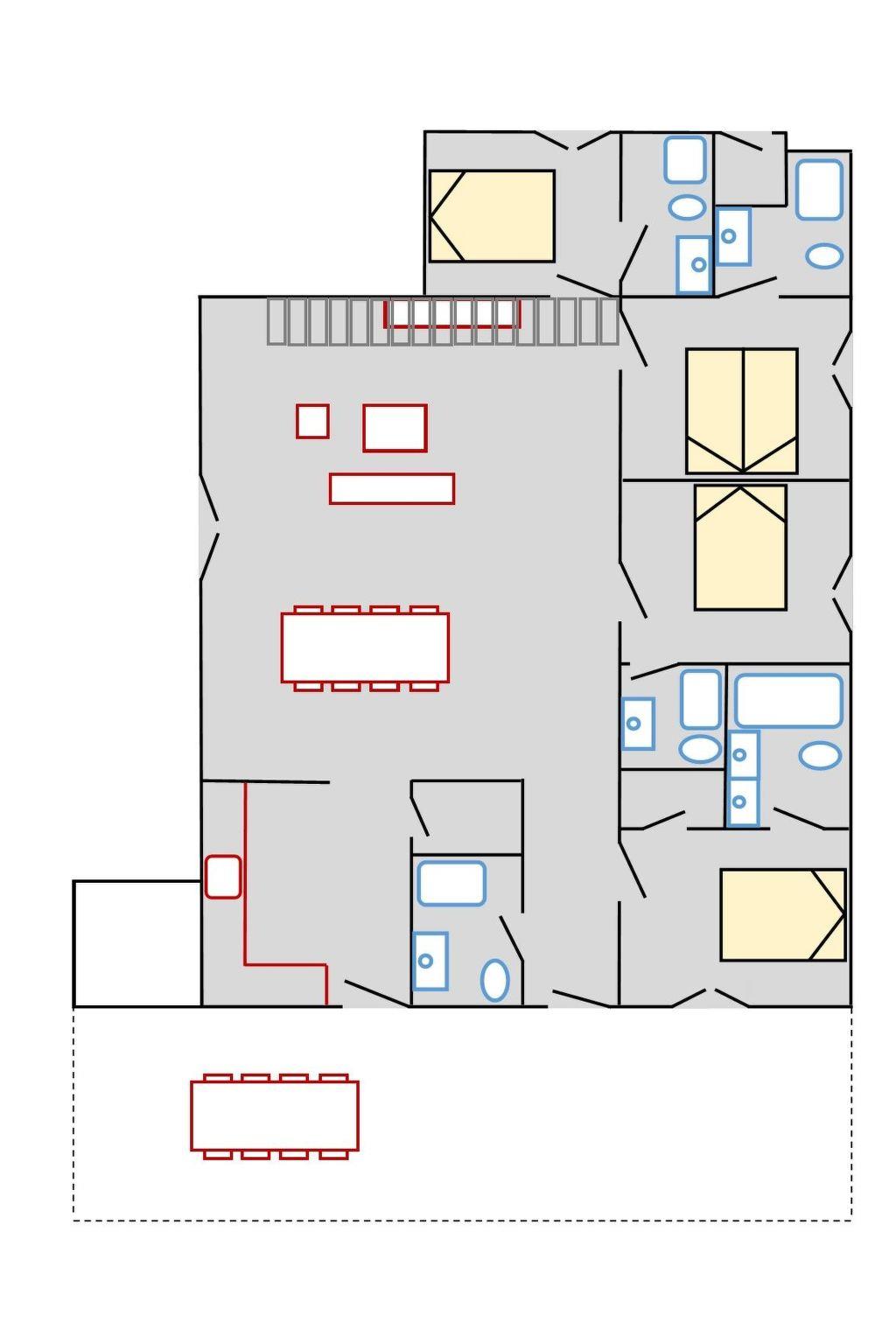 Im Inneren ist das Haus komplett ausgestattet, um einen komfortablen und bequemen Aufenthalt zu gewährleisten. Mit insgesamt 4 Schlafzimmern und 5 Badezimmern (jedes Schlafzimmer hat ein eigenes Bad) ist der Platz perfekt verteilt, um alle Gäste bequem unterzubringen. Die Klimaanlage in allen Zimmern sorgt für eine kühle und angenehme Atmosphäre während der heißen Sommertage. Darüber hinaus ist das Haus mit den wichtigsten Annehmlichkeiten wie Waschmaschine und Trockner zur alleinigen Nutzung, Filterkaffeemaschine, Geschirrspüler und Wasserkocher ausgestattet, so dass Ihr Aufenthalt so komfortabel wie zu Hause ist.