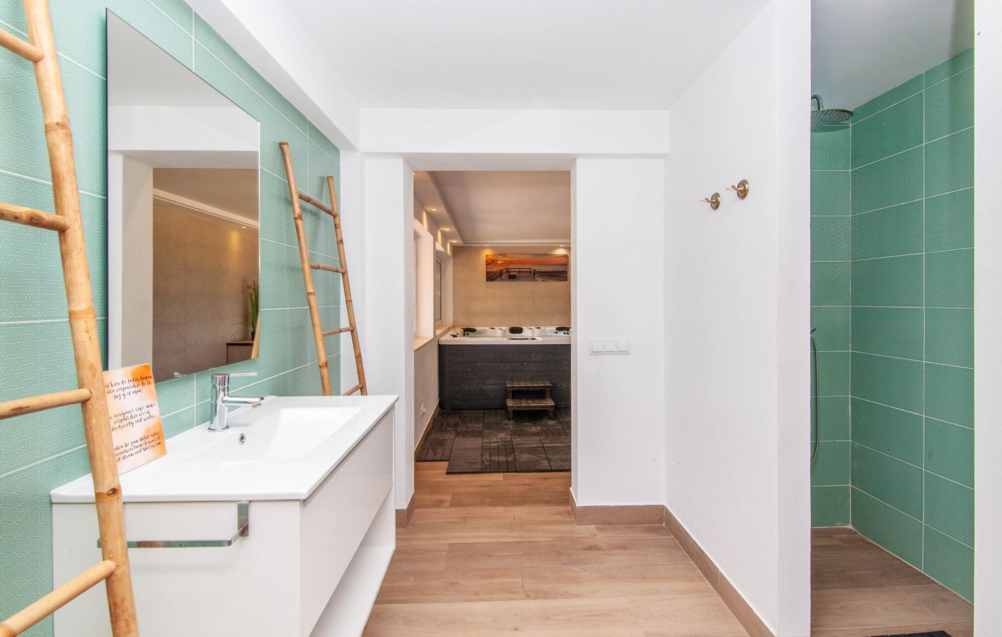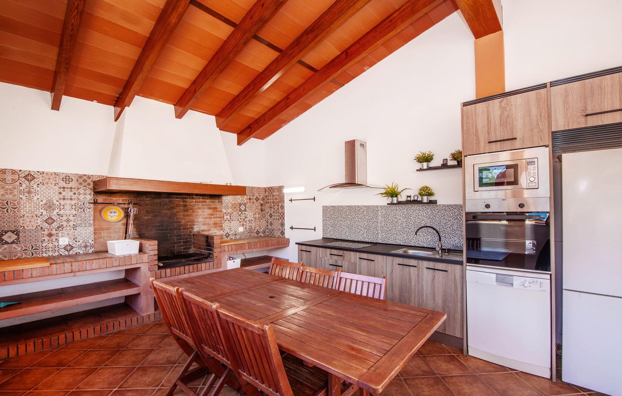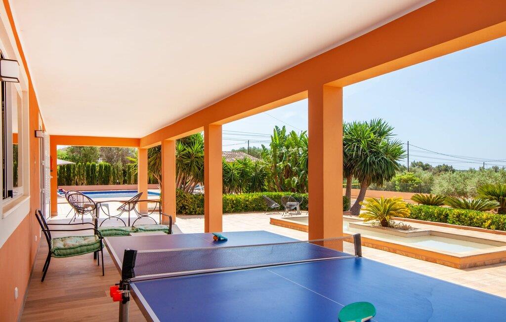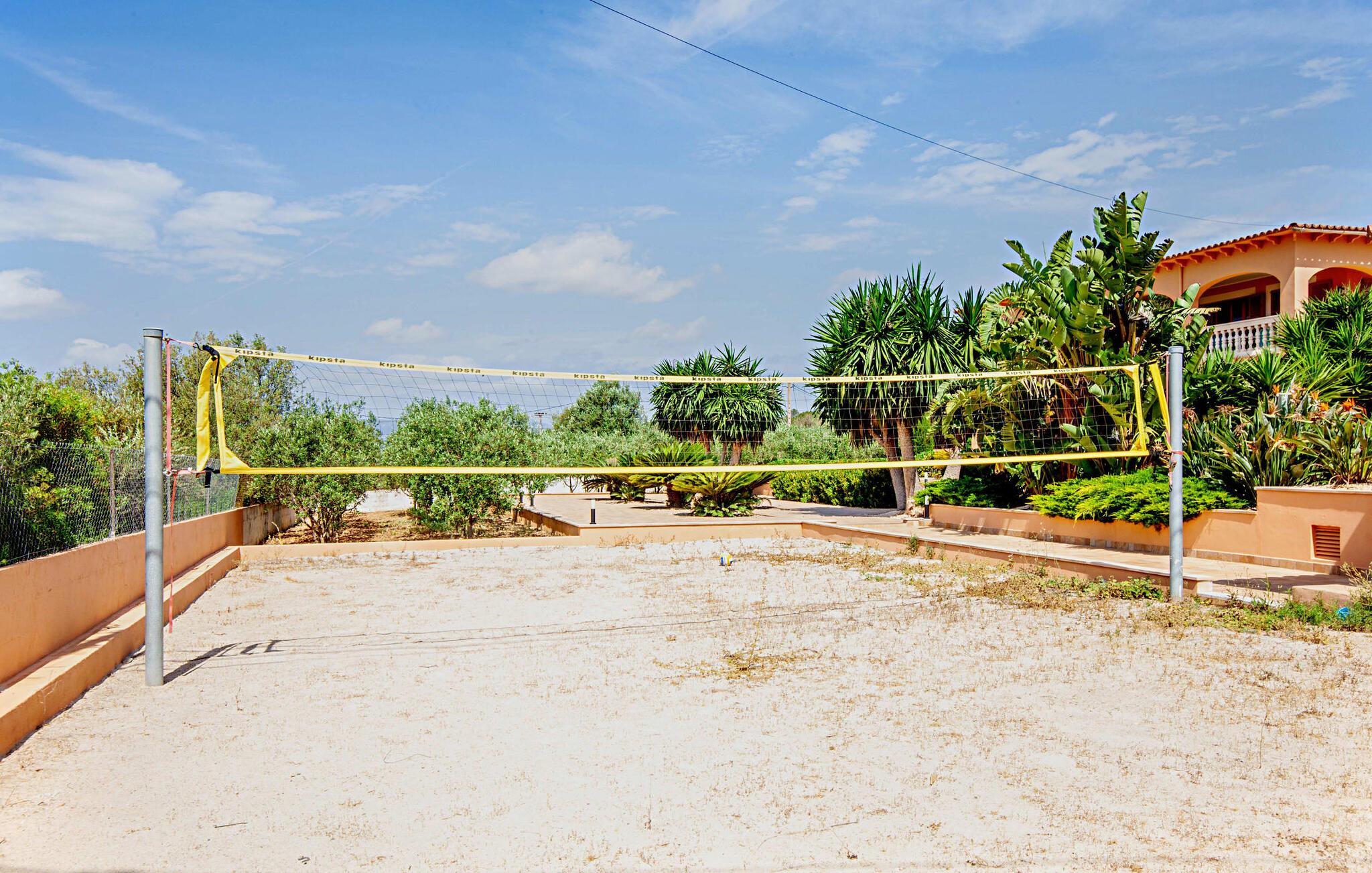 Der weitläufige, gepflegte Außenbereich ist mit Palmen bewachsen und schafft eine einladende Atmosphäre für das Leben im Freien. Ein Pool mit einer stilvollen Sonnenterrasse bietet den perfekten Ort zum Entspannen mit bequemen Liegen. Großzügige, möblierte Terrassen, von denen viele überdacht sind, bieten viel Platz zum Entspannen, während die vielseitige Außenküche das Leben im Freien zum Kinderspiel macht. Aktive Gäste werden die Vielfalt der Aktivitäten zu schätzen wissen, darunter der CrossFit-Bereich im Freien. Die Finca verfügt auch über eine Fahrradwerkstatt und liegt ideal in der Nähe von Radwegen.