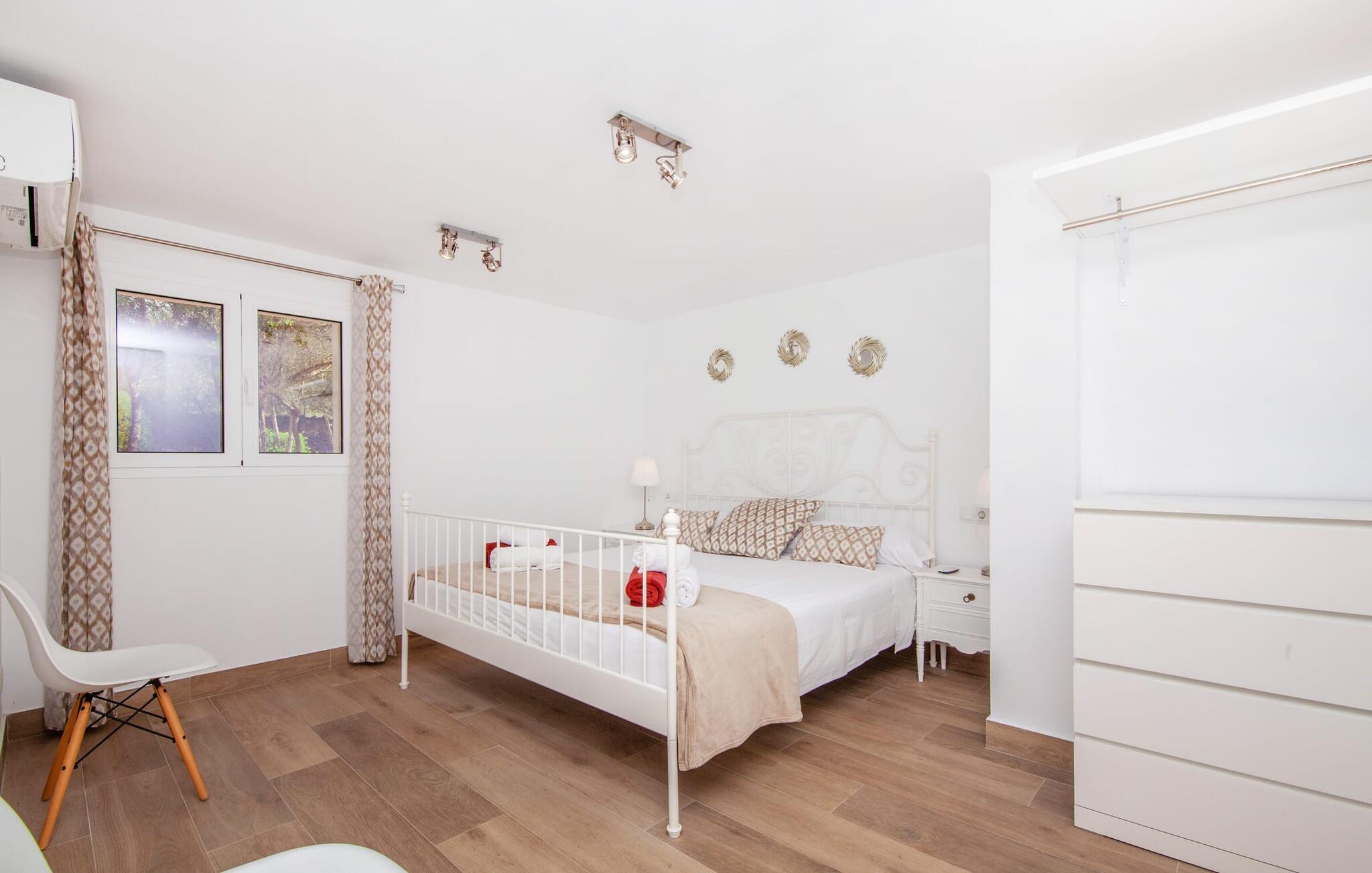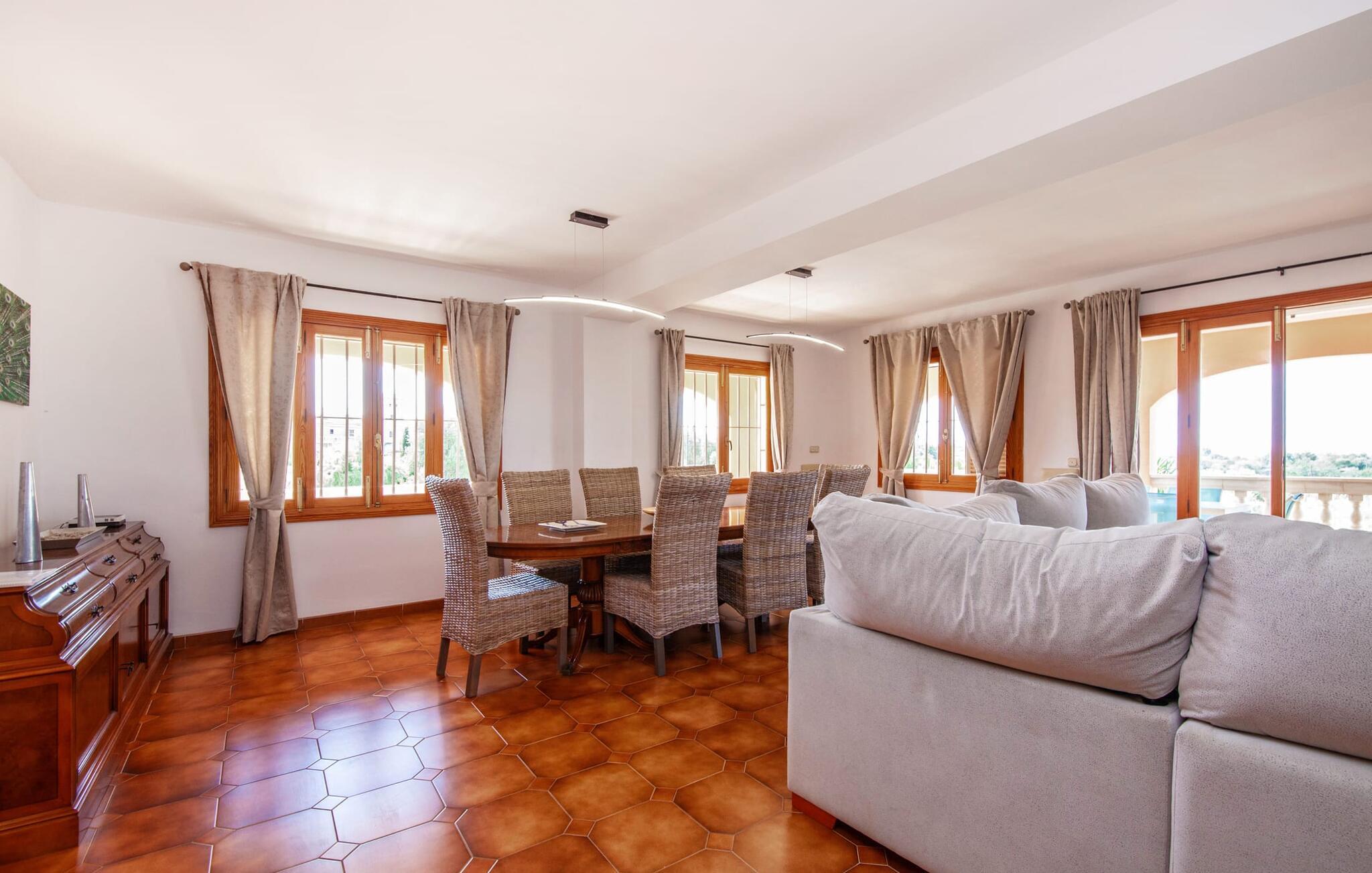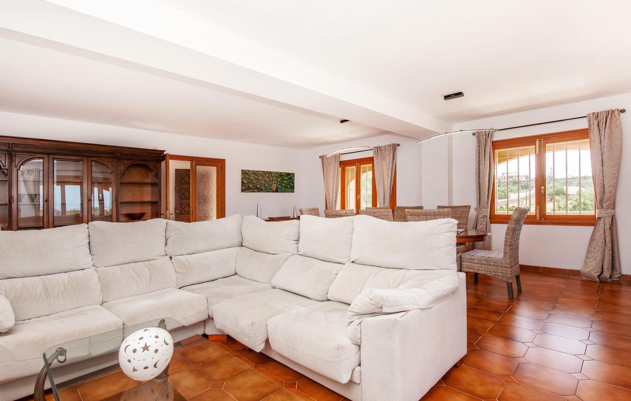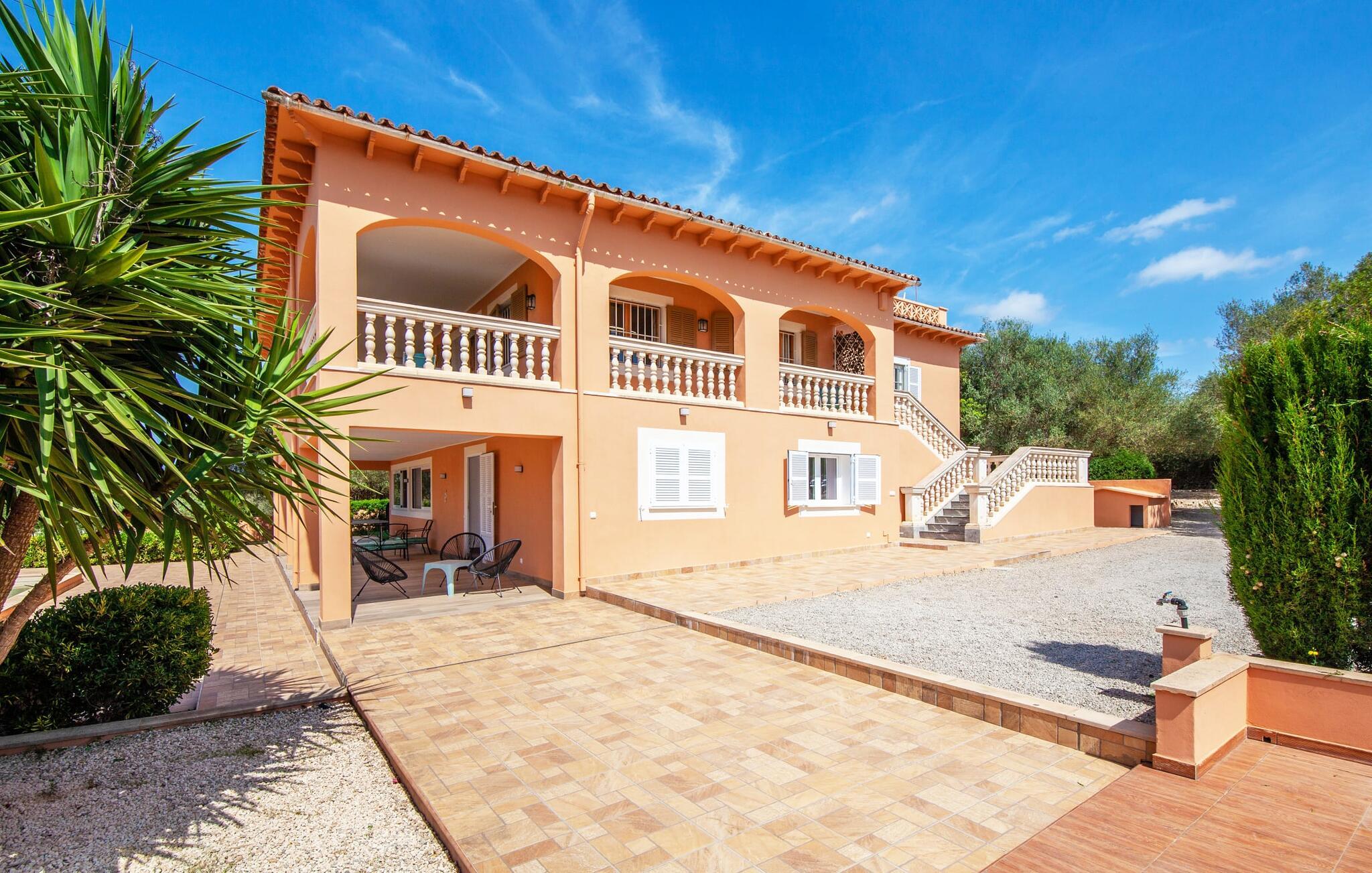 Die charmante, aprikosenfarbene Finca liegt nur 9 km südwestlich des malerischen Städtchens Santa Maria, im Herzen Mallorcas. Die nahe gelegene Straße verbindet Sie mühelos mit beliebten Zielen und hervorragenden Annehmlichkeiten. Palma, nur ca. 14 km entfernt, bietet tolle Einkaufsmöglichkeiten, während die schönen Strände entlang der Südküste, wie der Passeig de Molinar (13 km) oder die Cuidad Jardin (10 km), den perfekten Ort für einen entspannten Tag am Meer bieten.