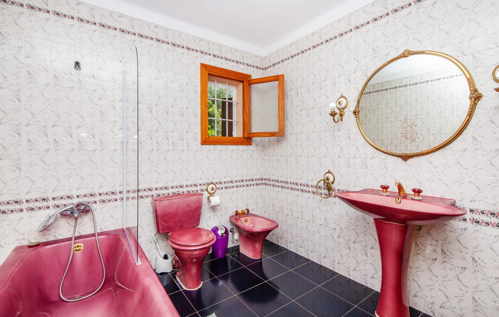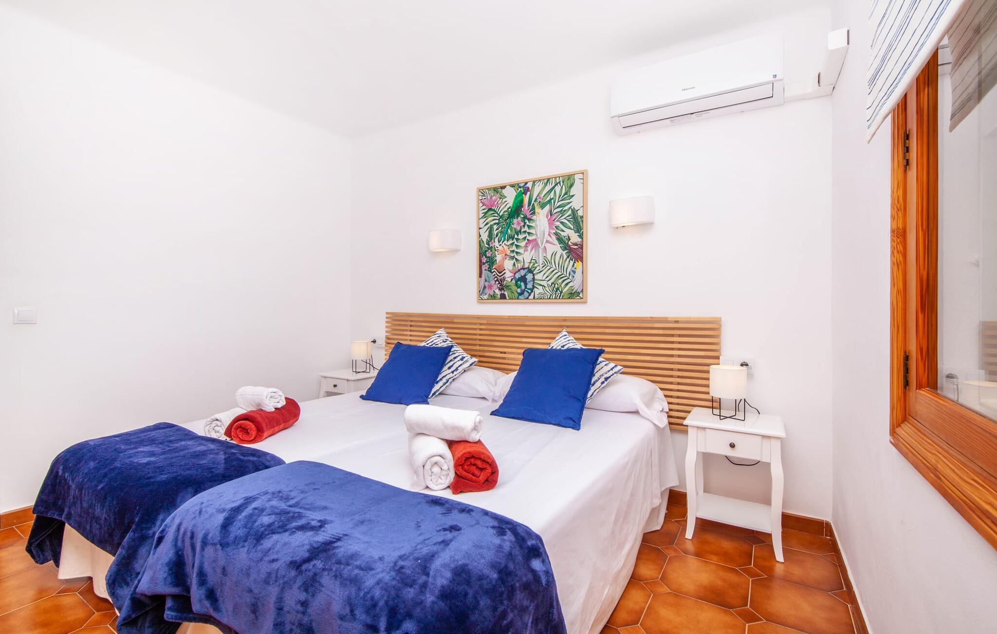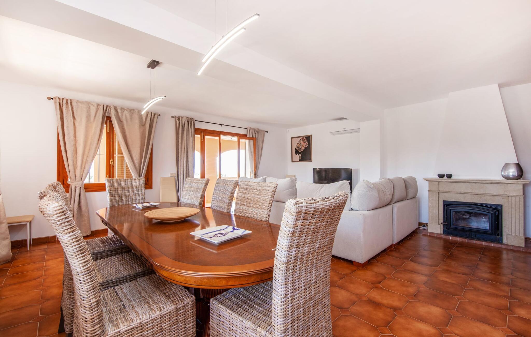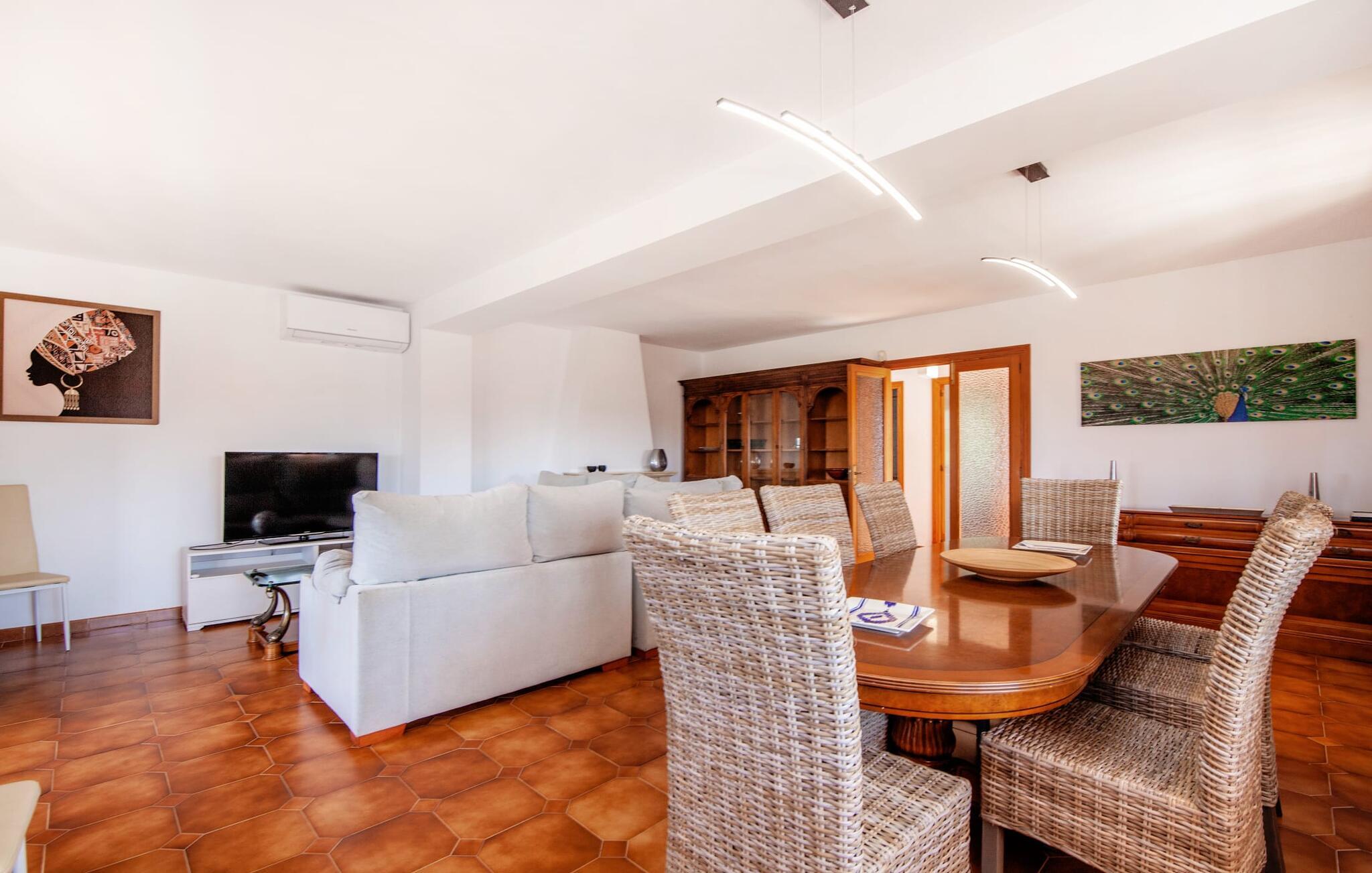 Die charmante, aprikosenfarbene Finca liegt nur 9 km südwestlich des malerischen Städtchens Santa Maria, im Herzen Mallorcas. Die nahe gelegene Straße verbindet Sie mühelos mit beliebten Zielen und hervorragenden Annehmlichkeiten. Palma, nur ca. 14 km entfernt, bietet tolle Einkaufsmöglichkeiten, während die schönen Strände entlang der Südküste, wie der Passeig de Molinar (13 km) oder die Cuidad Jardin (10 km), den perfekten Ort für einen entspannten Tag am Meer bieten.