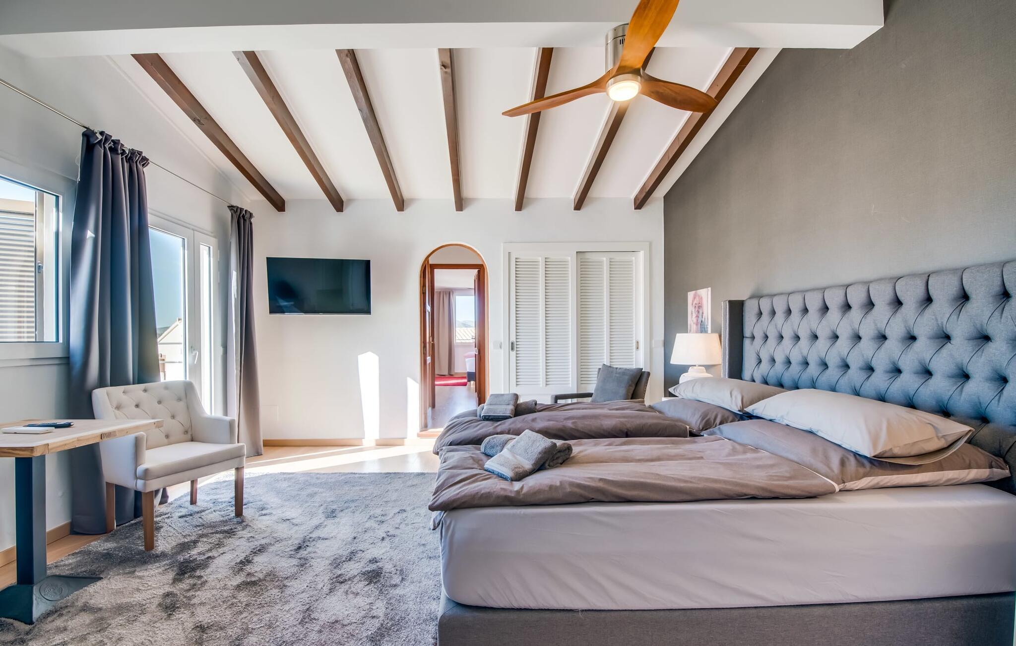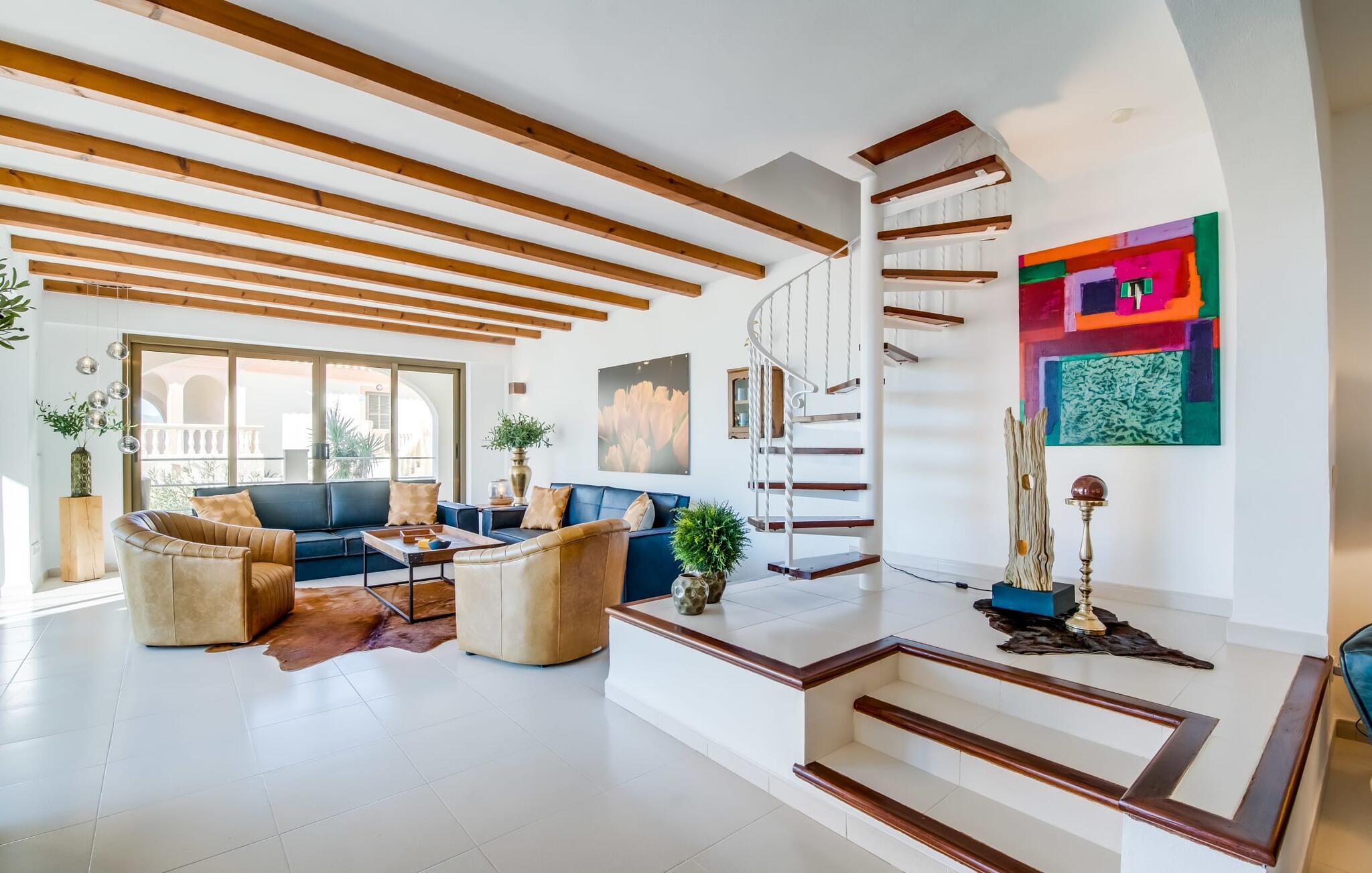 Die spektakuläre Meervilla "Can Eolo" thront auf den Klippen von Cala Agulla, in der Nähe von Cala Ratjada, und bietet einen phänomenalen Blick auf das offene Meer. Der Außenbereich verfügt über eine weitläufige Terrasse, die sich um den Berghang schlängelt, mit einer steingerahmten Meeresterrasse, die sich perfekt zum Faulenzen und Grillen eignet. Ein Mosaik-Poolbereich mit Sonnenliegen und einer charmanten fischförmigen Außendusche verleiht dieser wunderschön restaurierten Villa eine einzigartige Note.