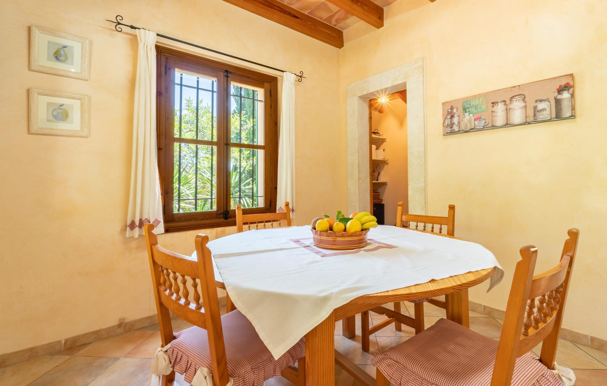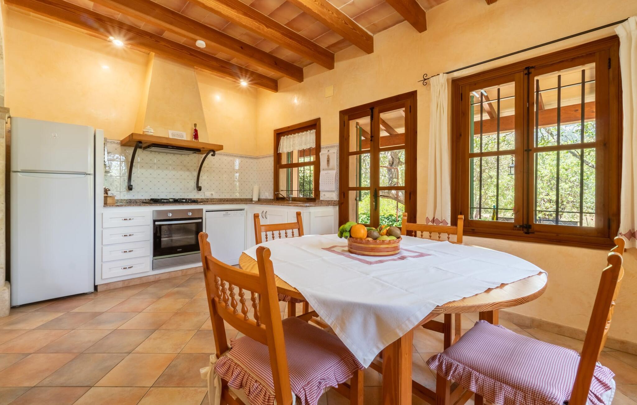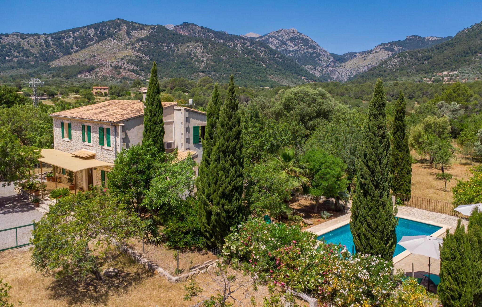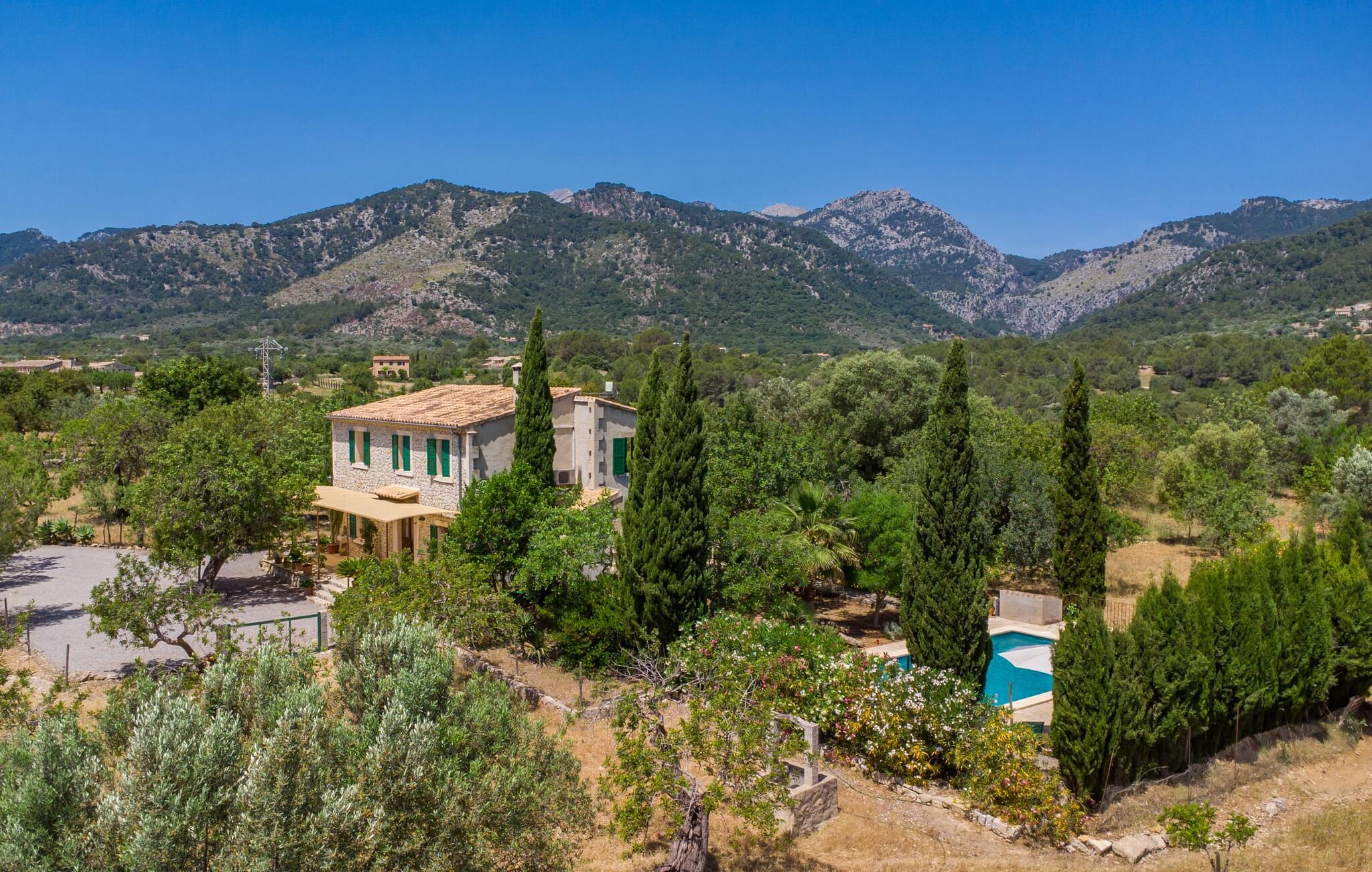 Natur pur und ein klassisches Landhaus zum Wohlfühlen, wir freuen uns, Ihnen die Finca „Can Tabou“ präsentieren zu dürfen. Umgeben von der ganzjährigen grünen Üppigkeit Mallorcas erleben Sie ein zweistöckiges Ferienhaus, das sich ideal für Familien und Freunde eignet. Wohin Sie auch schauen, Sie sehen Mandel-, Zitronen- und Johannisbrotbäume vor der mächtigen Kulisse des Tramuntana-Gebirges. Diese Finca begeistert nicht nur natur- und sportbegeisterte Gäste, die gerne wandern und Golf spielen. Genießen Sie zudem die einzigartige Privatsphäre des erfrischenden Pools – für die Abkühlung zwischendurch oder für ein nächtliches Bad. Zwischen duftendem Oleander und Palmen können Sie eine Partie Tischtennis spielen oder auf den bereitgestellten Liegestühlen die mediterrane Sonne genießen. Wenn Sie möchten, können Sie sich auch im Schatten der Bäume oder unter den Sonnenschirmen rund um den Pool ausruhen. Rund um das Haus gibt es weitere Sitzplätze im Freien, teilweise überdacht. Bei einem gemütlichen Grillabend können Sie den Tag ganz entspannt ausklingen lassen, bevor Sie sich in den Schoß des gepflegten Ferienhauses begeben.