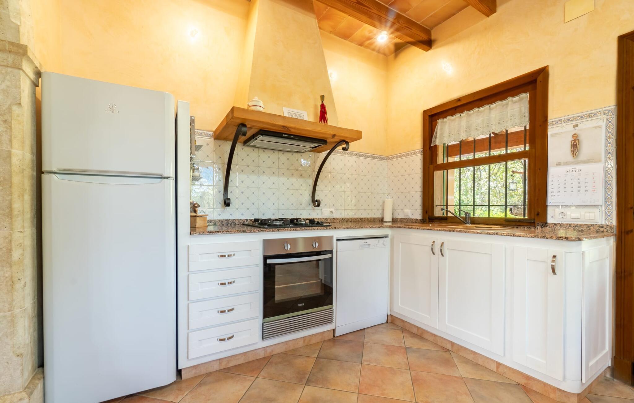 Dort erleben Sie das entspannte, ländliche Mallorca, wie wir es kennen und lieben. Im Erdgeschoss erwarten Sie die allgemeinen Räume. Dazu gehört auch die helle Küche in fabelhafter Vollausstattung – ideal für die bewusst gewählte Selbstversorgung in diesem charmanten Ferienhaus im Rustico-Stil. Die Küche ist über einen runden, mit Steinen gefassten Torbogen mit dem Wohn- und Esszimmer mit Kamin verbunden. Ein separater Fernsehraum rundet die Gemütlichkeit ab. Auf jeder Etage gibt es ein Badezimmer (Duschbad im Erdgeschoss und gemütliche Badewanne zwischen den drei klimatisierten Schlafzimmern im Obergeschoss). Die Schlafzimmer sind insgesamt sehr geräumig und verfügen über Doppel- oder Einzelbetten. Für alle, die im Urlaub gelegentlich ihr Homeoffice ins Ferienhaus verlegen, gibt es ein besonderes Highlight in Form eines Arbeitszimmers mit phänomenaler Aussicht auf das Tramuntana-Gebirge. „Can Tabou“ vermittelt ein angenehmes Gefühl von Frieden und Freiheit. Einfach unwiderstehlich, oder was meint ihr?