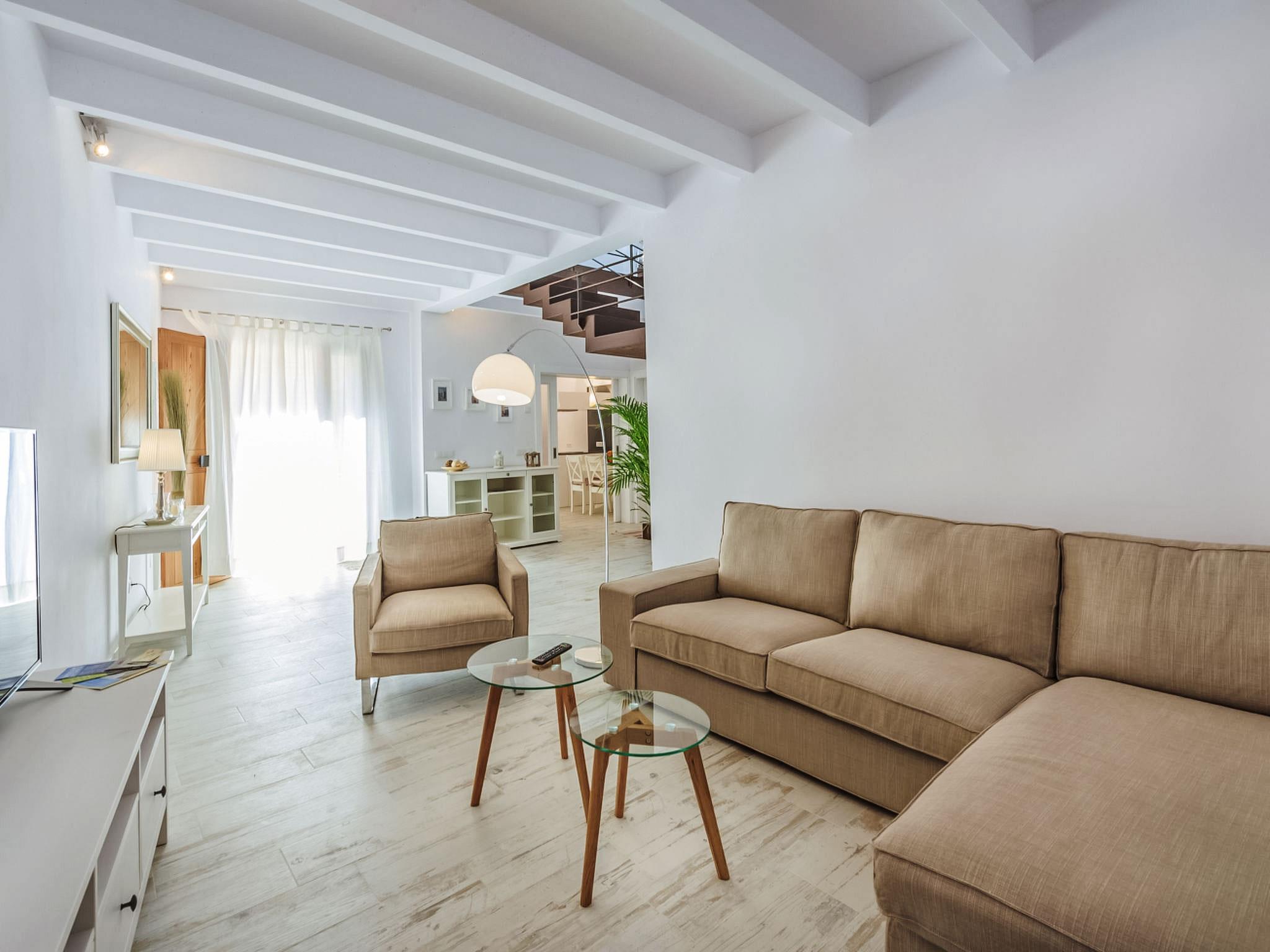 "Es Reco", 4-Zimmer-Haus 160 m2 auf 3 Stockwerken. Objekt geeignet für 4 Erwachsene. Hell, vollständig renoviert, sehr komfortabel und modern eingerichtet: offenes grosses Wohnzimmer mit Digital-TV, Flachbildschirm, Klimaanlage und Warmluftheizung. Grosse Wohnküche (Backofen, Geschirrspüler, 3 Glaskeramikplatten, Toaster, Wasserkocher, Mikrowelle, elektrische Kaffeemaschine, Kochinsel) mit Esstisch. Bad/Dusche/WC. Obergeschoss: (Leiter) 1 grosses Doppelzimmer mit Panoramafenster mit 1 franz. Bett (160 cm), Klimaanlage und Warmluftheizung. 1 grosses Doppelzimmer mit Panoramafenster mit 2 Betten (90 cm), Klimaanlage und Warmluftheizung. Bad/Dusche/WC. 2. Obergeschoss: (Leiter) Salon mit Schiebetür mit Klimaanlage und Warmluftheizung. Ausgang zur Terrasse. Kleine Terrasse. Balkonmöbel. Schöne Sicht auf die Landschaft. Zur Verfügung: Waschmaschine, Bügeleisen, Kinderhochstuhl, Babybett, Haartrockner. Internet (WLAN, gratis). Geeignet für Familien. ETV/9236 // Reg. Nr.: ESFCTU000007011000020380000000000000000000000ETV92365