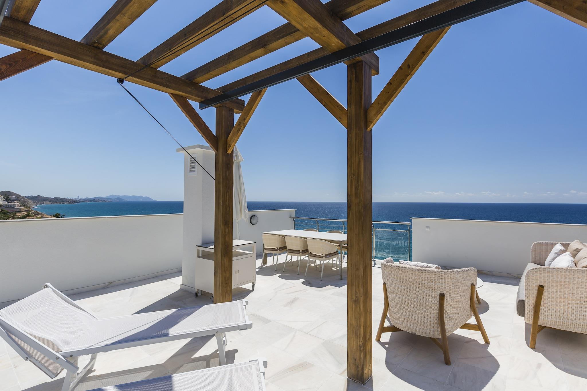 Übernachten Sie stilvoll in unserem Luxusapartment in einem Strandresort an der atemberaubenden Costa Blanca. Dieses moderne Refugium bietet Platz für bis zu vier Erwachsene und zwei Kinder und verfügt über Marmorböden, geschmackvolles mediterranes Dekor und eine voll ausgestattete Küche. Freuen Sie sich auf kostenloses WLAN, Klimaanlage und Zugang zu einem beheizten Gemeinschaftspool. Sichere Tiefgaragenstellplätze stehen zur Verfügung. Vom hellen Wohnzimmer aus betreten Sie Ihren privaten, möblierten Balkon mit einem bezaubernden seitlichen oder frontalen Blick auf das schimmernde Mittelmeer. Dahinter befindet sich eine großzügige Terrasse mit Sonnenliegen und einer schattigen Pergola – der ideale Ort für Ihren Morgenkaffee, Drinks bei Sonnenuntergang oder einfach zum Genießen der Meeresbrise. Ob Sie am Pool entspannen oder im Freien speisen, Sie werden das nahtlose Zusammenspiel von Innen- und Außenbereich lieben. Bringen Sie Ihre vierbeinigen Freunde mit – an den goldenen Stränden von El Campello sind angeleinte Hunde außerhalb der Stoßzeiten willkommen, und die nahegelegenen Promenaden laden zu malerischen Spaziergängen ein. Genießen Sie haustierfreundliche Cafés und Parks oder erkunden Sie charmante Küstenstädte, die nur eine kurze Autofahrt entfernt liegen. Genießen Sie abends frische Meeresfrüchte in lokalen Restaurants oder trinken Sie Sangria in Strandbars – alles bequem zu Fuß erreichbar.