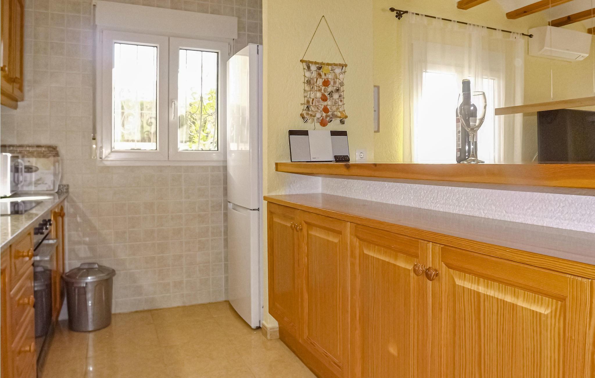 Nur 200 m vom Strand entfernt liegt dieses schöne Ferienhaus, dessen Pool in einer Rasenfläche eingebettet ist. Über eine Außentreppe gelangt man in das geräumige Schlafzimmer mit Bad und einer großen schönen Terrasse. In nur 150 Meter Entfernung ist ein kleines Einkaufscenter mit einem deutschen Bäcker und einer deutschen Fleischerei sowie Restaurants. Wer nicht nur das Strandleben genießen möchte, hat im bergigen Hinterland viele Möglichkeiten zum Wandern oder mit dem Auto reizvolle spanische Restaurants zu entdecken. Für Golfspieler bietet sich die mondäne Golfanlage Oliva Nova an. Der perfekte Ort um einen tollen Urlaub zu verbringen.
