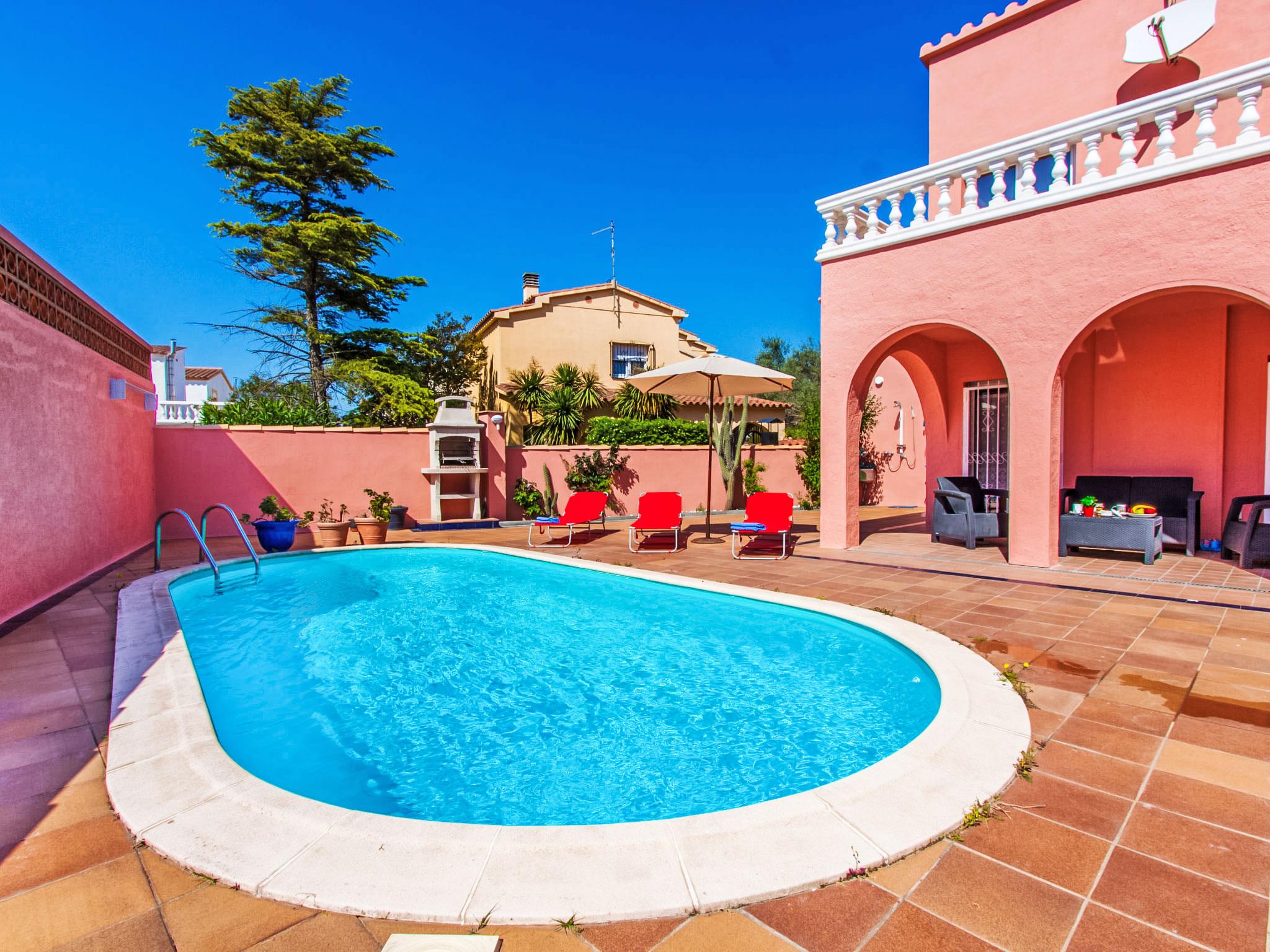 Requesens: Komfortables Einfamilienhaus "Requesens", auf 2 Stockwerken. Im Ortszentrum von Empuriabrava, zentrale, sonnige Lage im Villenviertel, exzellente Lage: Absolut zentral und dennoch ruhig, 400 m vom Meer, vom Kanal, 300 m vom Fluss, Richtung Süden. Zur Alleinbenutzung: Grundstück (eingezäunt), Obstgarten (eingezäunt), Teich, Schwimmbad (7 x 4 m, saisonale Verfügbarkeit: 01.Jan. - 31.Dez.). Aussendusche, Terrasse (400 m2), Gartenmöbel, Grill. Im Hause: Waschmaschine. Parkplatz beim Haus auf dem Grundstück. Einkaufsgeschäft, Lebensmittelgeschäft 100 m, Supermarkt 300 m, Einkaufszentrum 100 m, Restaurant, Bar 50 m, Café 100 m, Fußgängerzone 50 m, Bushaltestelle 200 m, Sandstrand "Empuriabrava" 300 m. Sporthafen 1 km, Golfplatz (18 Loch) 12 km, Tennis 3 km, Minigolf 600 m, Reitstall 4 km, Sportzentrum 1 km, Wanderwege ab Haus, Radweg 200 m. Nahe gelegene Sehenswürdigkeiten: Centro paracaidismo y túnel del viento 3 km, Parque Acuático Roses 6 km, Casino y festival de Peralada 14 km, Museo Dalí a Figueres 15 km, Ruïnes de Sant Martí de Empuries 21 km, Monasterio de Sant Pere de Rodes 23 km. Die Schlüsselübergabe findet bei der Agentur Interhome in Empuriabrava statt.