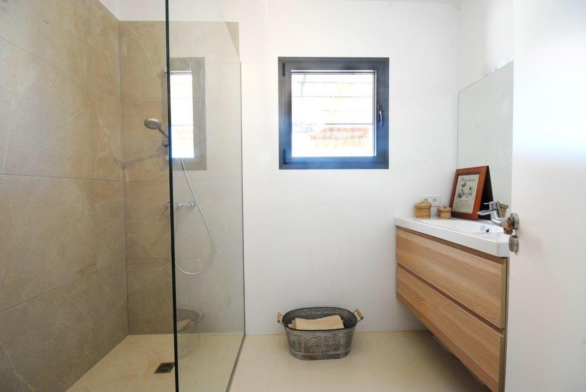 Alle 3 geschmackvoll eingerichteten Doppelschlafzimmer haben Klimaanlage. Die 2 Badezimmer sind modern und großzügig gehalten und haben bodentiefe Duschen. Der teils offen gehaltene Essbereich ist sehr geschmackvoll und liebevoll im Landhausstil eingerichtet und grenzt an ein Lese- bzw. Arbeitszimmer. Vom Esszimmer aus gelangt man auf die seitliche Terrasse. Die separate hochwertige Küche ist voll ausgestattet auch mit Gas-Kochfeld und von hier aus gelangt man auf die gemütliche Pool-Terrasse mit großem Esstisch. Ebenfalls von der Küche aus gelangt man in das großzügig gehaltene Wohnzimmer mit einer gemütlichen Couchlandschaft. Der Hauswirtschaftsraum mit Waschmaschine ist separat gelegen.
