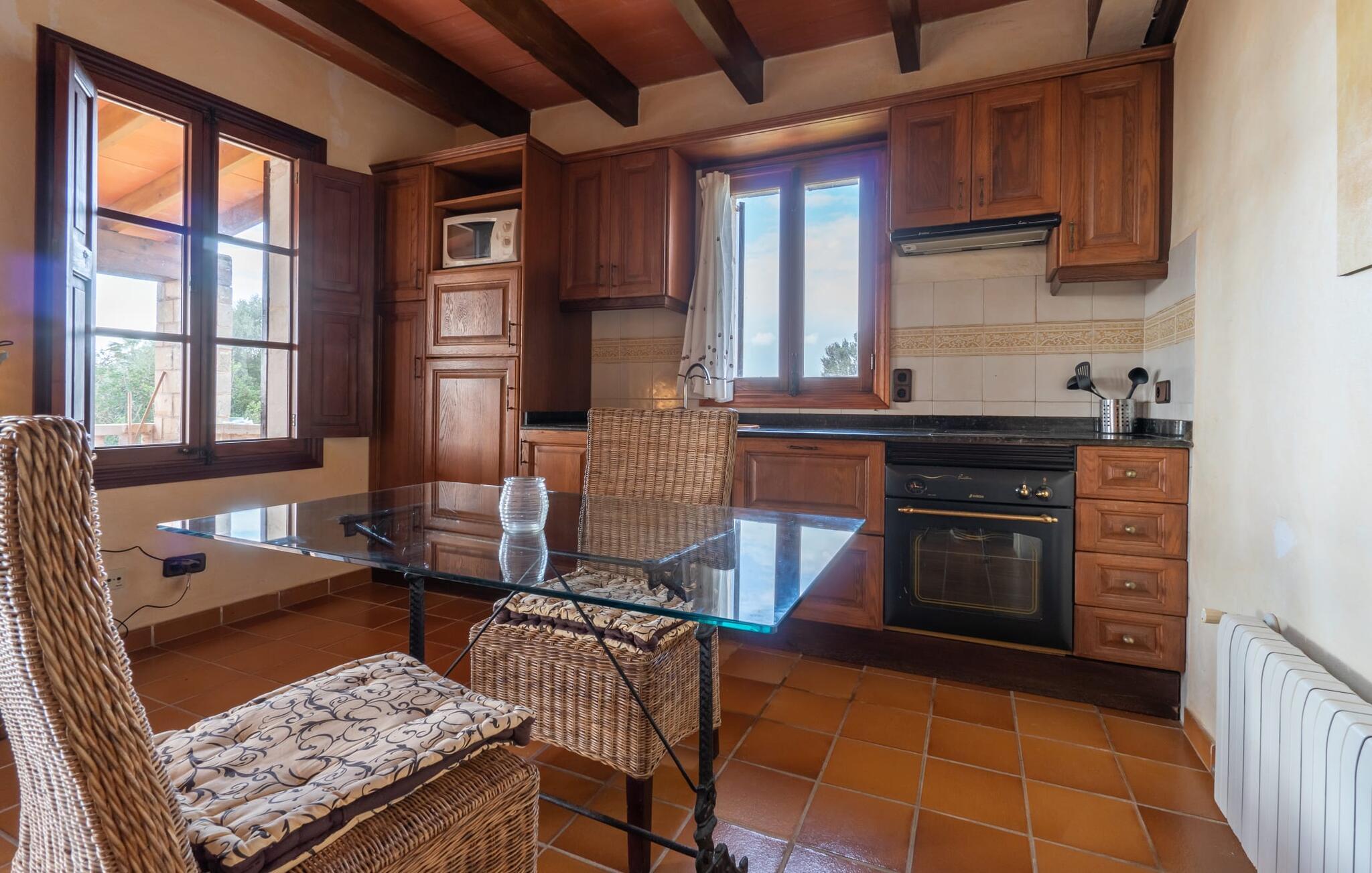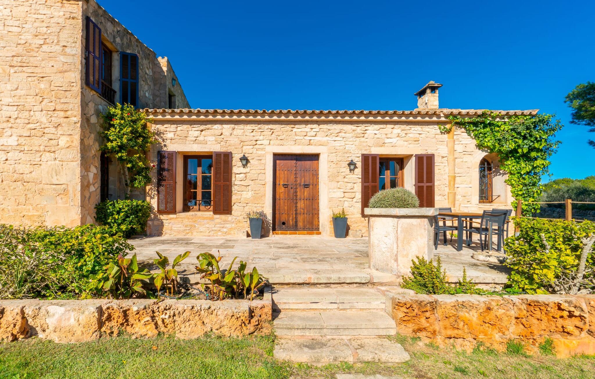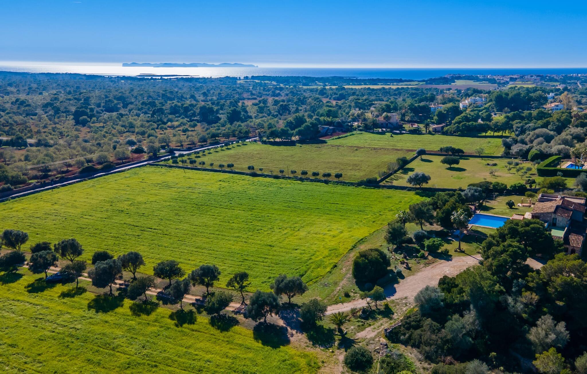 Sonne, Entspannung, viel Privatsphäre, eine schöne Aussicht, wohnen unweit der schönsten Strände Mallorcas – all das ist möglich im Apartment „Es Turo Formentera“, das sich als einladendes Urlaubsdomizil für zwei Gäste präsentiert. Auf dem riesigen, parkähnlichen und naturbelassenen Gelände können Sie bei kurzen Spaziergängen die unterschiedlichsten Perspektiven genießen und Ihren Urlaubsblick in aller Ruhe schweifen lassen. Manche Plätze können sich als Lieblingsplätze herausstellen, etwa die Sitz- und Liegemöglichkeiten am Pool, auf der Wiese, direkt unter freiem Himmel oder im luftigen Naturschatten eines Baumes. Die einladende Terrasse direkt neben der Wohnung bietet eine absolut wunderbare Möglichkeit, draußen zu sitzen und sich entspannt und genussvoll zu entspannen.
