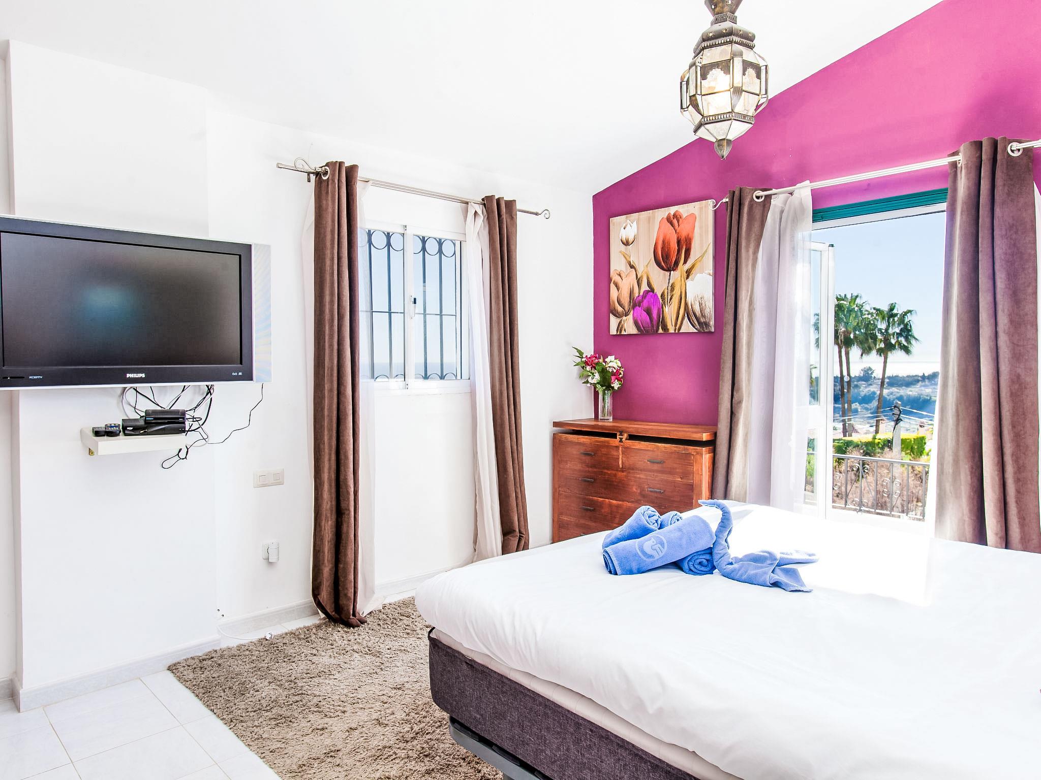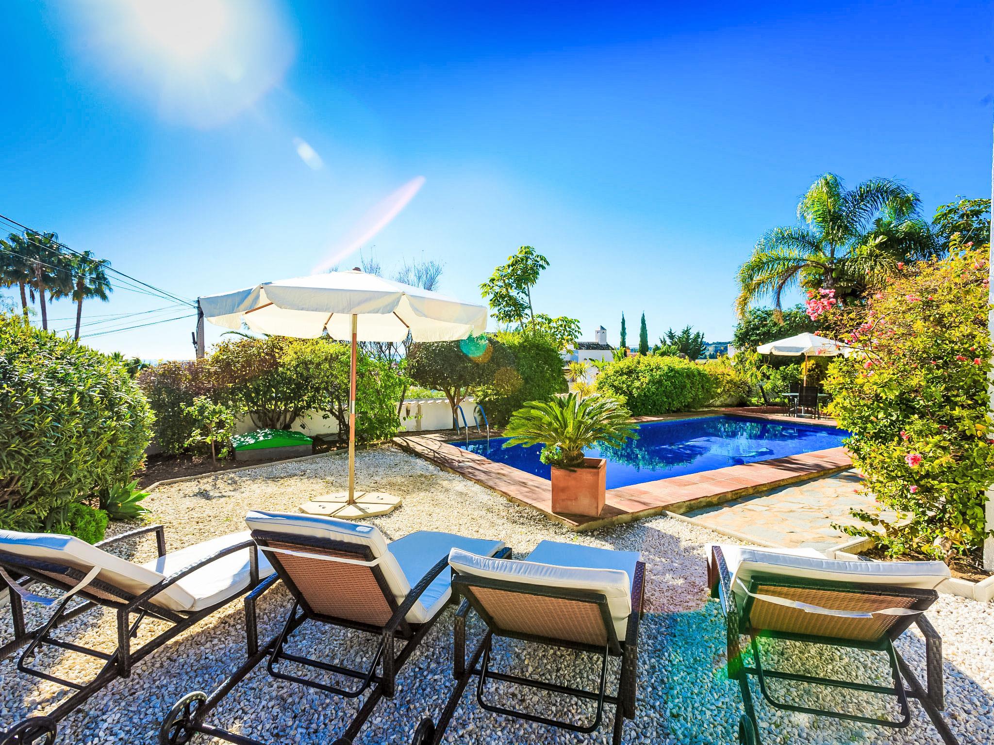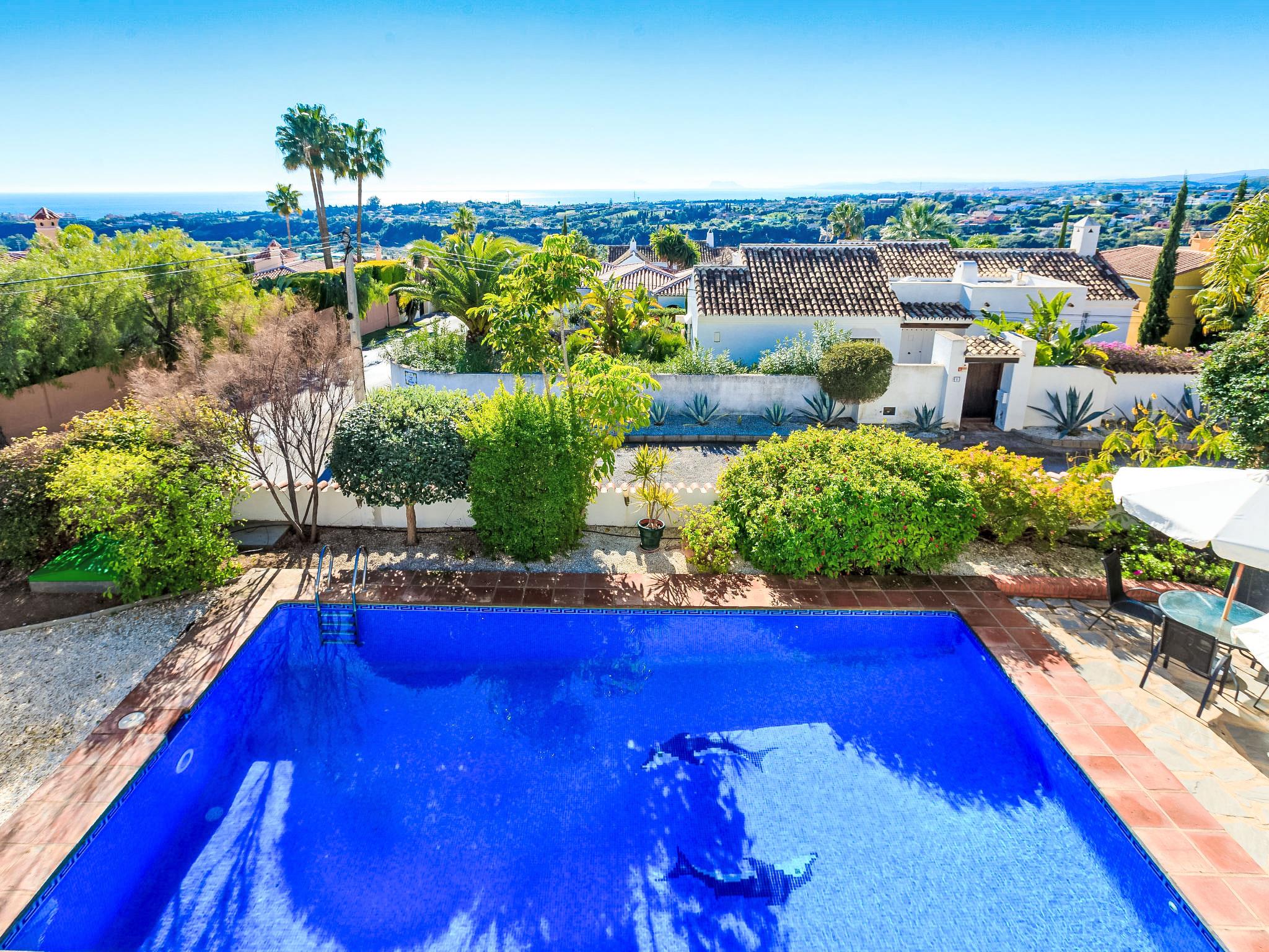 Schöne, komfortable Villa "Las Granadillas", auf 2 Stockwerken. Im Bezirk Estepona, sonnige, erhöhte Lage im Villenviertel, verkehrsberuhigte Zone, 4 km vom Meer, 4 km vom Strand, Richtung Südwesten. Zur Alleinbenutzung: wunderschöner Garten zum Entspannen, Schwimmbad eckig (9 x 4 m, 100 - 180 cm tief, saisonale Verfügbarkeit: 01.Jan. - 30.Dez.). Aussendusche, Gartenmöbel, Grill. Im Hause: Internetzugang, Wireless LAN, Zentralheizung, Klimaanlage, Alarmanlage, Waschmaschine. Parkplatz beim Haus. Lebensmittelgeschäft 4 km, Supermarkt 4 km, Einkaufszentrum 5 km, Bar 4 km, Bäckerei 4 km, Bushaltestelle "El Castor" 2.2 km. Golfplatz (9 Loch) 7 km. Bitte beachten: Fahrzeug empfohlen. Geeignet für Familien. Objekt geeignet für 6 Erwachsene Jugendgruppen nur auf Anfrage. Flugplatz 76 km vom Haus. Die Nachbarschaft ist sehr lärmempfindlich. Ruhe und gutes Benehmen wird erwartet.