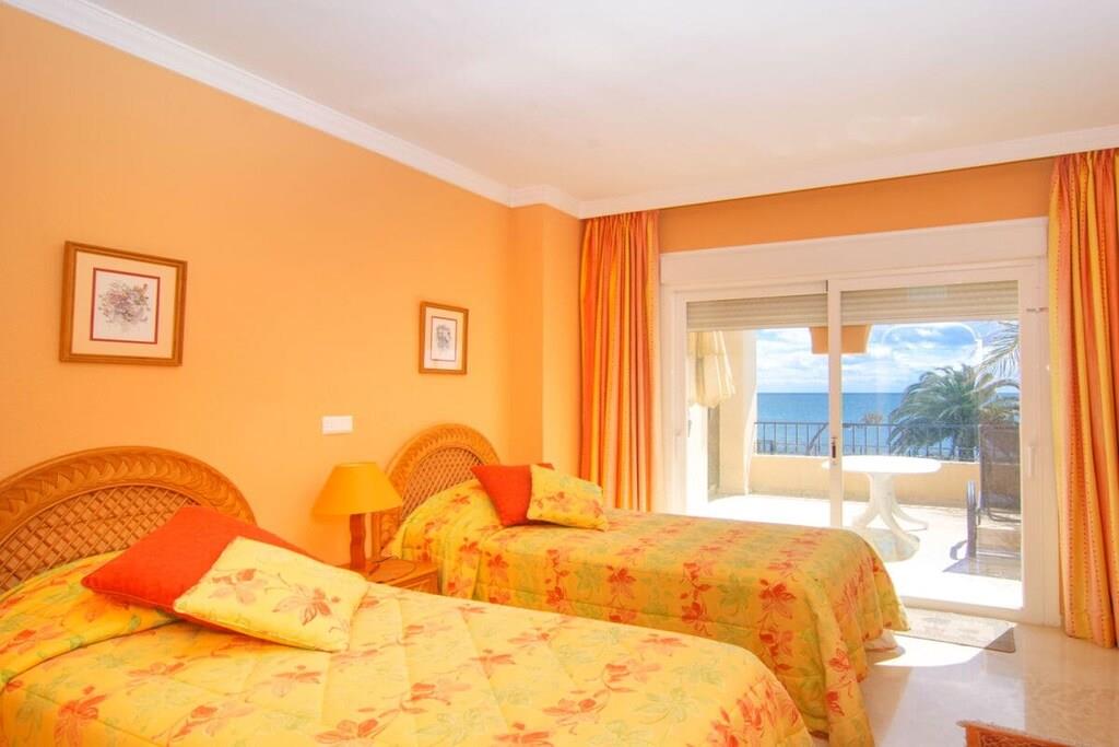 Atemberaubende erste Linie Ansichten, geräumige hochwertige Penthouse (240m2) mit 3 Terrassen, 3 Schlafzimmer und ein separates Service-Schlafzimmer, in ausgezeichneter erster Linie Strandlage. Perfekte Zutaten für einen unvergesslichen Urlaub an der Costa del Sol in Venalmar gesichert Urbanisation. ~ Innen Dieses wunderschöne, nach Süden ausgerichtete Penthouse in erster Strandlinie (240m2) verfügt über 3 Schlafzimmer mit eigenem Bad und ein Service-Schlafzimmer, ein geräumiges Wohnzimmer mit Essbereich, 3 große Terrassen mit herrlichem Panoramablick auf das Meer und eine voll ausgestattete Küche. Im Obergeschoss befindet sich eine sehr große Terrasse (60m2) mit Dusche und ein separater Raum mit einer privaten Sauna. Das Wohnzimmer hat eine Sitzecke vor einem Holzkamin und einem Flachbildfernseher, ausgestattet mit einem großen bequemen Sofa und zwei Sesseln. Von hier aus gelangen Sie auf eine schöne Terrasse (20m2), die mit einem Glasvorhang ausgestattet ist, so dass Sie auch in der kalten Jahreszeit den Raum und die Aussicht genießen können. Der Essbereich verfügt über einen Esstisch für 6 Personen und ist durch ein Durchgangsfenster mit der Küche verbunden. Auf der gleichen Ebene befinden sich die drei Schlafzimmer, alle mit voll ausgestatteten Badezimmern, zwei Schlafzimmer mit je zwei Einzelbetten (90x190cm) und das Hauptschlafzimmer mit einem großen Doppelbett (180x190cm). Alle Schlafzimmer haben große Kleiderschränke, zwei Schlafzimmer bieten einen schönen Blick auf das Meer und teilen sich eine 14m2 Terrasse vor dem Meer und das dritte Schlafzimmer mit Blick auf den Poolbereich. Das Service-Schlafzimmer besteht aus einem kleinen Raum mit einem Einzelbett und einem Waschbecken und befindet sich auf der Terrasse im Obergeschoss. Die Küche verfügt über alle Geräte für einen komfortablen Aufenthalt: Backofen, Mikrowelle, Kaffeemaschine, Geschirrspüler, Kühlschrank, Vitro-Keramik, Toaster und alle anderen Küchenutensilien sind vorhanden. Neben der Küche befindet sich eine Waschküche mit Waschmaschine und Trockner. ~ Terrassen Das Penthouse verfügt über 3 schöne Terrassen. Die größte im Obergeschoss (60m2) hat eine Außendusche mit warmem/kaltem Wasser und die beste Aussicht, so dass Sie den ganzen Tag auf einer Sonnenliege entspannen und dem beruhigenden Klang der Wellen lauschen können. Die zweite Terrasse (20m2) ist vom Wohnzimmer aus zugänglich und ist mit Rattansesseln und einem Couchtisch ausgestattet. Diese Terrasse hat einen Glasvorhang, den Sie komplett öffnen oder schließen können, so dass Sie den Raum unabhängig vom Wetter genießen können. Die dritte Terrasse (14m2) ist sowohl vom Haupt- als auch vom Gästeschlafzimmer aus zugänglich und ist mit Sonnenliegen und einem Couchtisch ausgestattet. Versorgungseinrichtungen: TV, Internet, Klimaanlage warm/kalt, Toaster, Backofen, Kaffeemaschine, Bügeleisen, Geschirrspüler, Vitrokeramik, Mikrowelle, Kühlschrank, Gefrierschrank, Waschmaschine, Trockner, Haartrockner. Räume: 3 Schlafzimmer und 1 Dienstzimmer, 3 Badezimmer, 1 Gästetoilette, großes Wohnzimmer mit Essecke, 1 Küche, 1 Hauswirtschaftsraum. Möblierung: Doppelbetten (1), Einzelbetten (5), Sofa, Sessel, Terrassentisch (4), Esstisch (6). Alle Schlafzimmer haben Kleiderschränke. Sonstiges: Bettwäsche und Handtücher, 1 Privatparkplatz und Internetzugang inklusive. Draußen: Terrassen (3), Gemeinsamer Pool, Gemeinsamer Garten, Privater Parkplatz, Parkplatz auf der Straße, Gemeinsame Sauna.