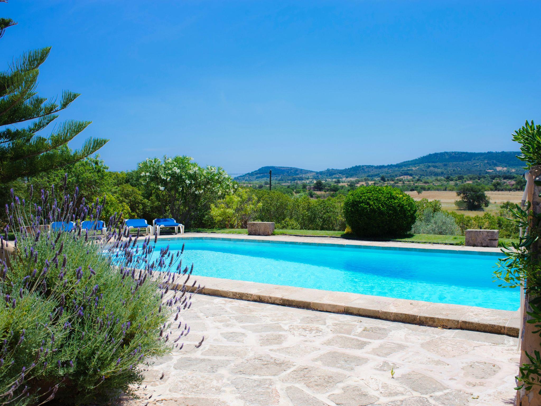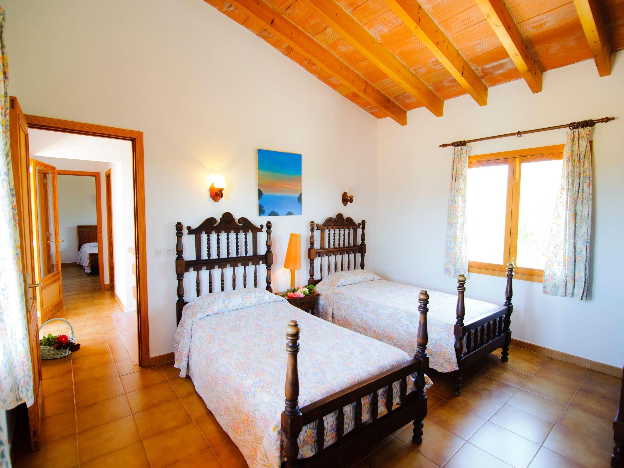 Die Finca"Era des Pou" ist ein landestypisches Farmhaus, eingebettet in einem 5500 m² grossen Grundstück, wovon 1000 m² als Garten angelegt sind, mit Bougavilleen, Hibiscus, Palmen und Oleander. Grosse Holztüren führen von der teilüberdachten Terrasse mit gemauertem Grill in das grosse Wohn-/Esszimmer. Der Raum ist für 8 Personen möbliert. Die Küche ist feriengerecht ausgestattet. Weiterhin befinden sich im Erdgeschoss ein Schlafzimmer mit franz. Bett und en-suite Badezimmer mit Dusche und ein Zweibettzimmer mit separatem Badezimmer. Im oberen Stockwerk befinden sich zwei weitere Schlafzimmer mit je 2 Einzelbetten, sowie ein seperates Badezimmer. Die grosse teilüberdachte Terrasse erlaubt eine tolle Sicht über den Garten und Pool und die sich vor Ihnen ausbreitende Landschaft.