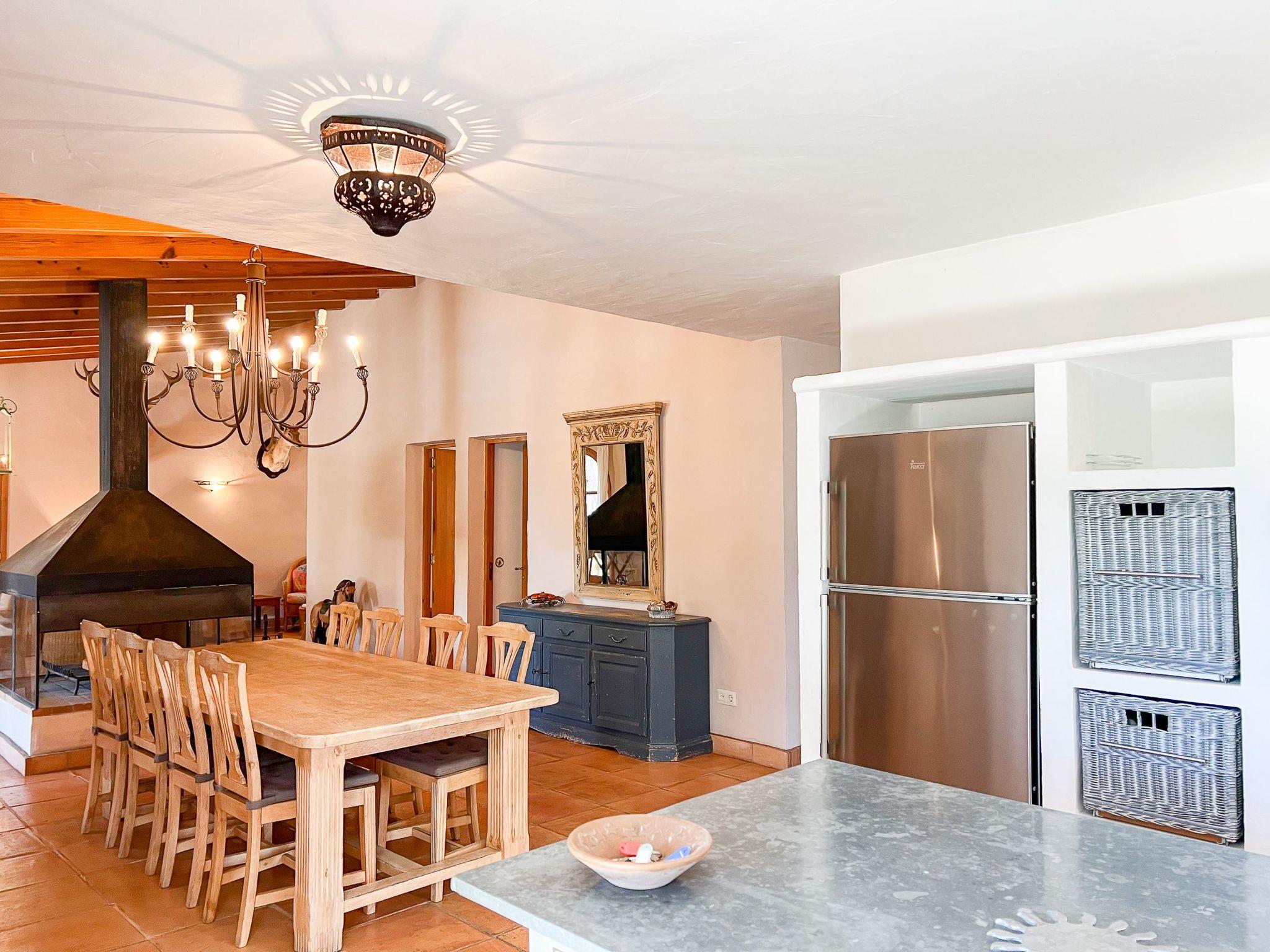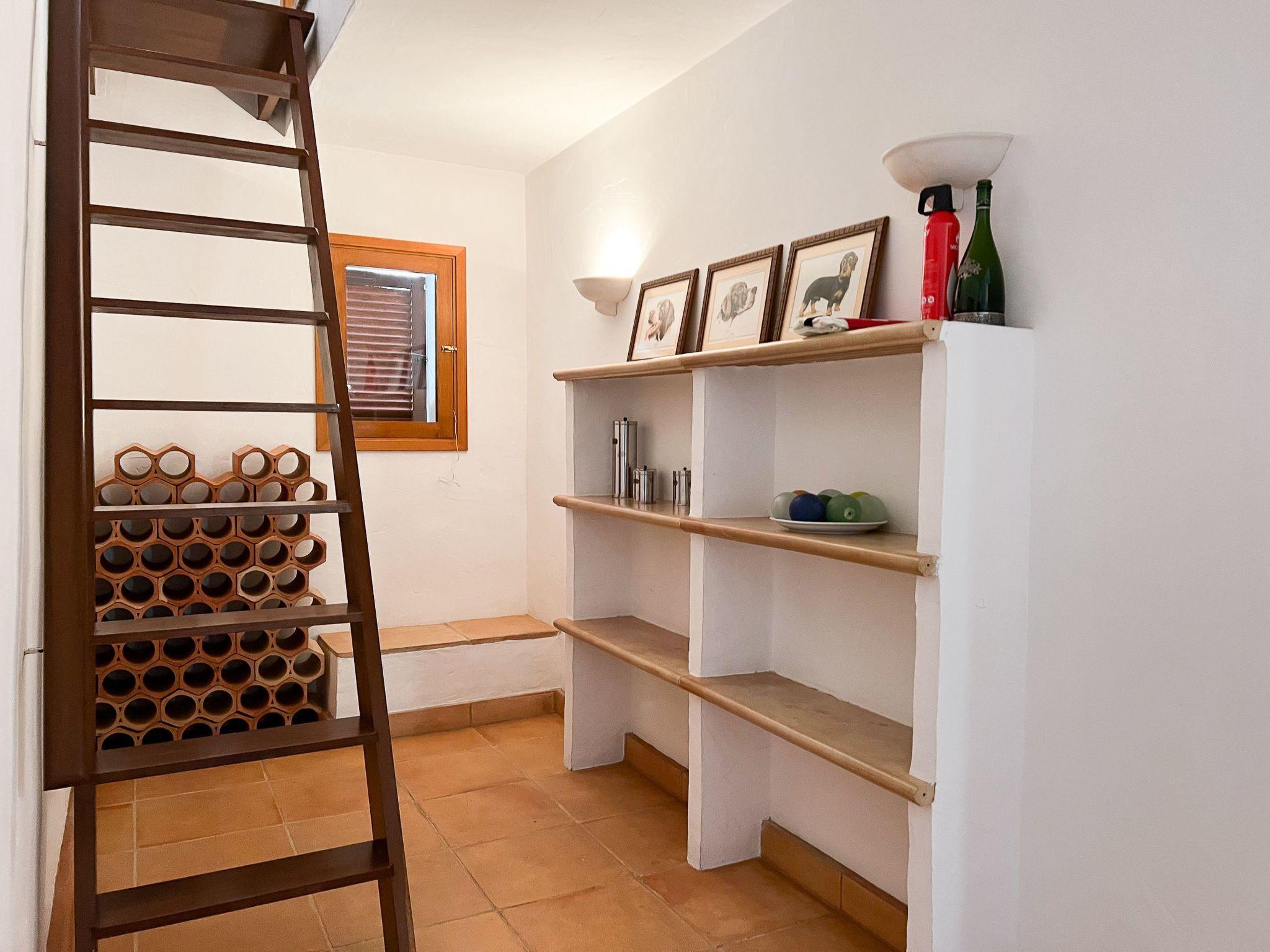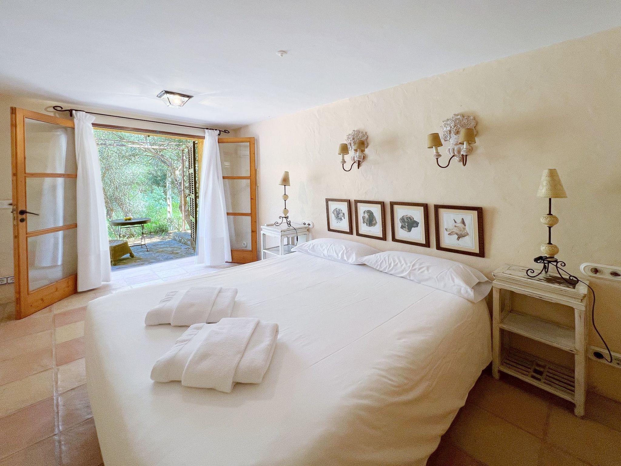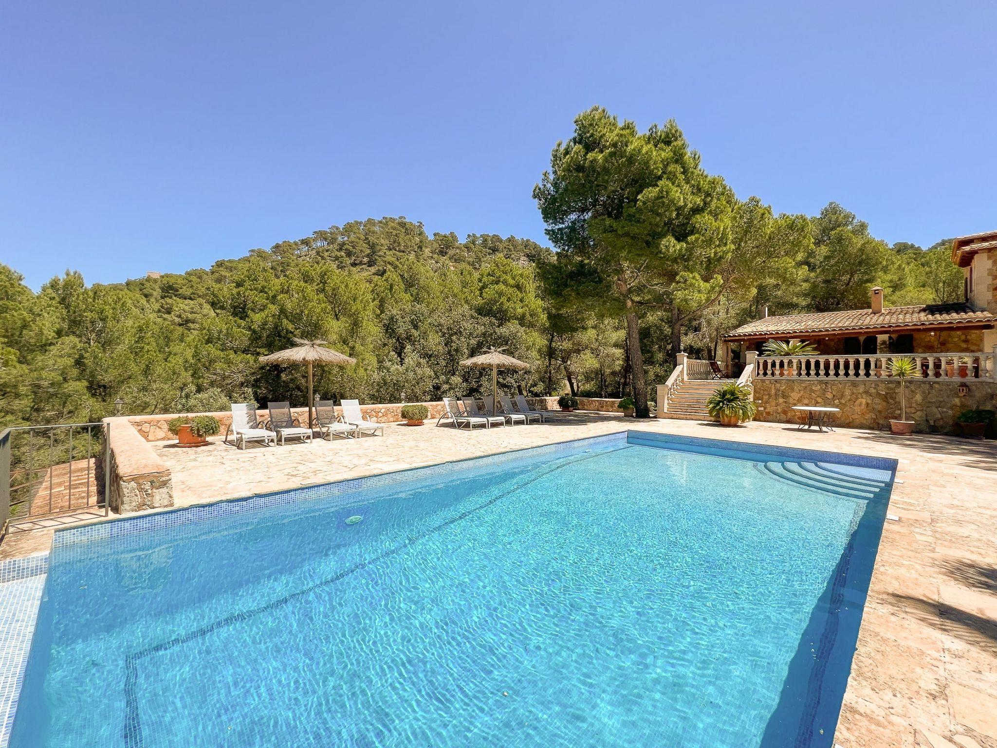 Die Finca Binifarda Dor ist ein herrliches Landhaus im typischen Landhausdesign gehalten wie z.b. hohe Decken mit Holzbalken. Das geräumige Haus hat viel natürliches Licht. Das Haupthaus beherbergt die Küche, den Wohn- und Essbereich sowie 2 Schlafzimmer. Die anderen drei Schlafzimmer befinden sich separat in der Nähe des Pools.Von aussen führen uns einige Stufen in das Haupthaus. Im Erdgeschoss gibt es eine grosse offene Zone, wo sich die Küche sowie dass Wohn-/Esszimmer befinden. Die Möblierung ist im rustikalen Stil gehalten. Die Küche verfügt über eine Kochinsel und ist gut ausgestattet Ein grosser Esstisch und eine komfortable Sitzecke laden zum Verweilen ein. Es gibt einen tollen Kamin zwischen Ess- und Wohnbereich. Neben der Küche befindet sich der Haushaltsraum.Im Erdgeschoss gibt es ein Schlafzimmer für 1 Person mit Zugang nach draussen und einer separaten Dusche. Eine schmale Holztreppe führt ins Obergeschoss mit einem Doppelbett und einem ensuite Badezimmer mit einer grossen Eckbadewanne. Das Schlafzimmer kann auch von aussen erreicht werden. Die anderen drei Schlafzimmer befinden sich separat vom Haus auf einer tieferen Ebene mit Zugang von Aussen. Es gibt ein Schlafzimmer mit Doppelbett mit ensuite Duschbard und zwei Schlafzimmer mit je 2 Einzebetten jeweils mit ensuite Badezimmer. Das im ersten Stock befindliche Schlafzimmer und die drei separaten Schlafzimmer haben Klimaanlage warm/kalt mit festgelegter und limitierter Nutzungszeit.
