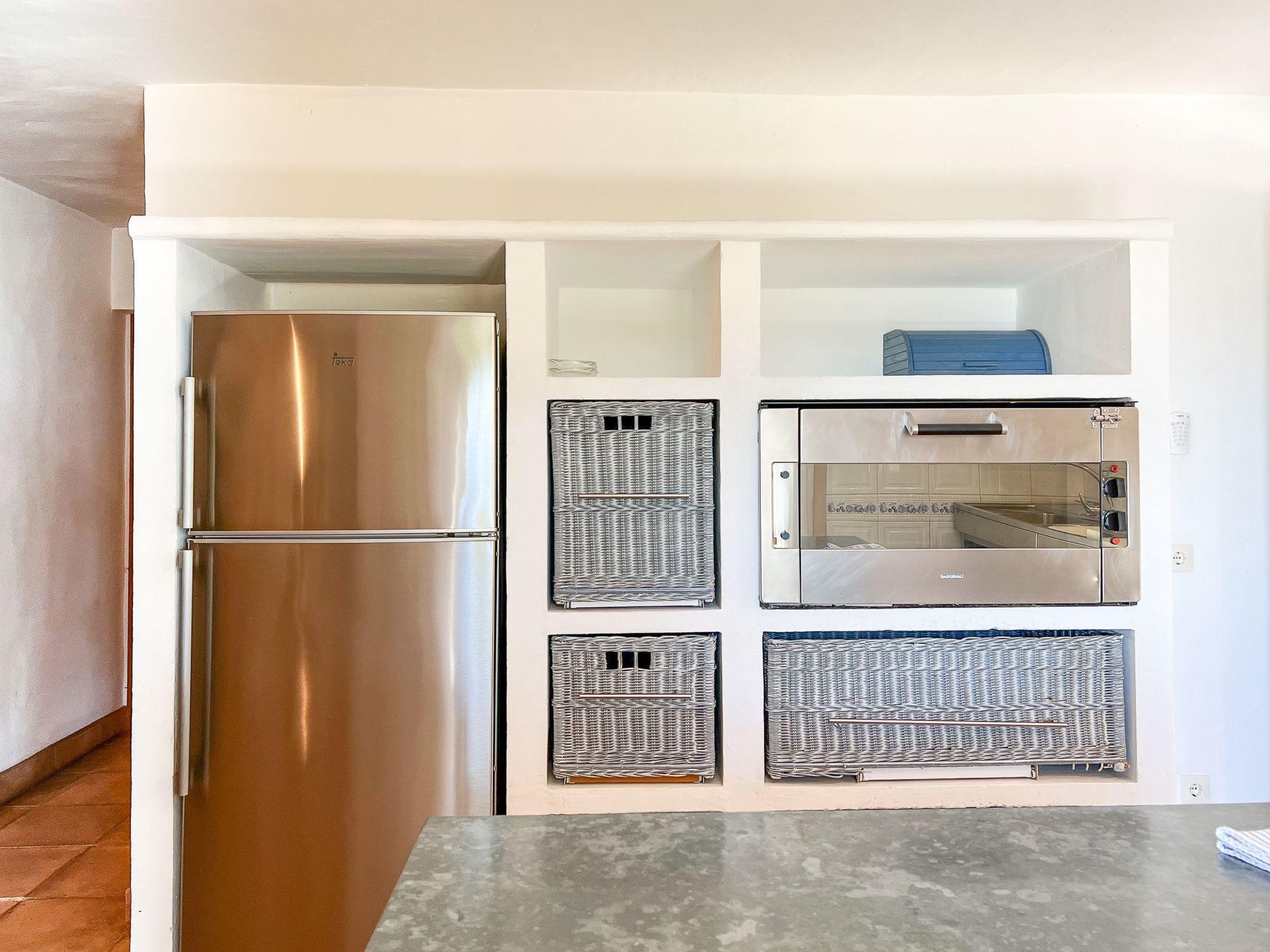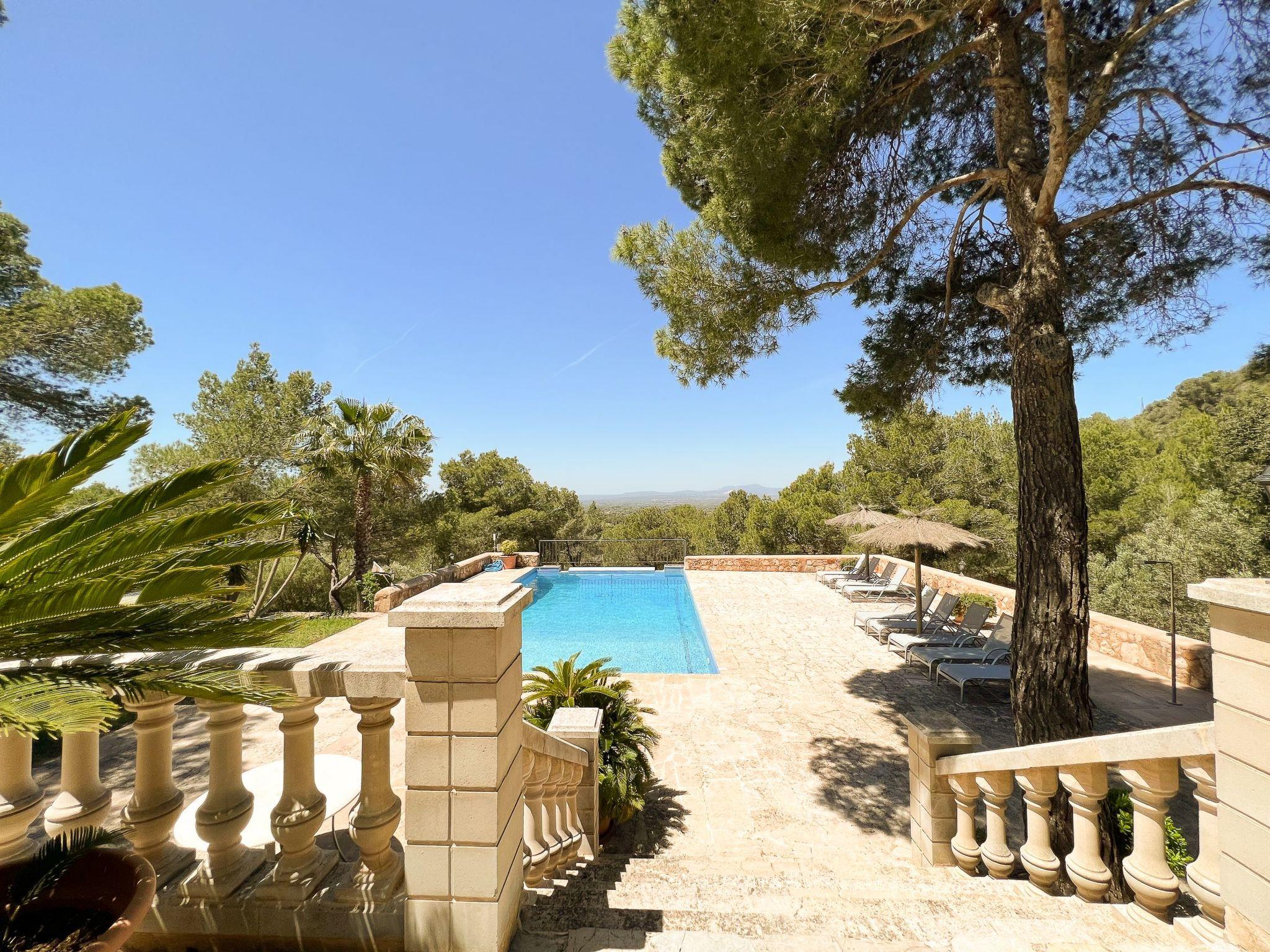 Es gibt keinen besseren Platz um Ruhe und Frieden zu geniessen, als hier. Das Grundstück ist komplett umgeben von Pinien. Lediglich Vogelgezwitscher und ein Hauch von Wind sind zu hören. Es gibt eine grosse überdachte Terrasse mit Blick über den Pool. Hier finden Sie einen Tisch und Stühle für Mahlzeiten unter freiem Himmel, ein mobiler Grill ist ebenfalls vorhanden. Von der Terasse führen einige Stufen zum grossen Pool (12 m x 6 m, Tiefe 1 m – 1.50 m. – 2.60 m) mit gemauerten Stufen. Die grosse Sonnenterasse mit komfortablen Sonnenliegen lädt zum Entspannen und Geniessen der langen Sommertage ein. Von hier haben Sie einen herrlichen Panoramablick.