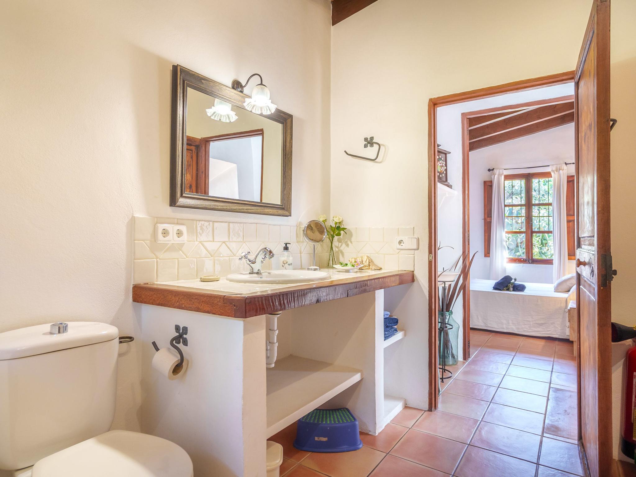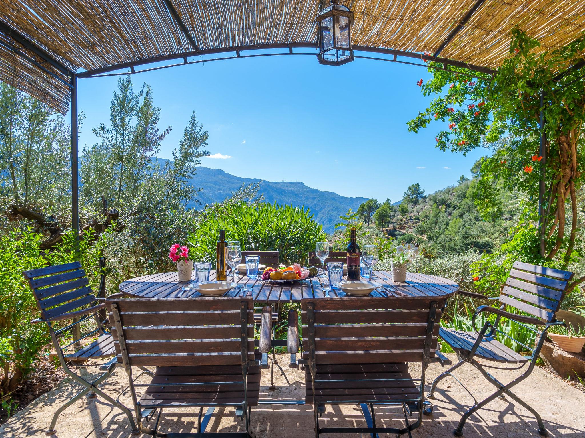 Sehr schöne, komfortable Finca "Es Seguers", renoviert, umgeben von Bäumen. Im Ort, 1.9 km vom Zentrum von Fornalutx, ruhige, sonnige Lage auf einem Hügel, 9 km vom Meer, im Wald. Zur Alleinbenutzung: naturbelassenes Grundstück, Naturgarten. Aussendusche, Sitzplatz, Laube, Gartenmöbel, Grill. Sehr holprige, steile, schmale Zufahrt (Bergstrasse, Rampe). Parkplatz beim Haus. Lebensmittelgeschäft 1.9 km, Supermarkt 8 km, Restaurant 1.7 km, Bar 1.8 km, Bäckerei 1.9 km, Zentrum zu Fuss in 30 Minuten erreichbar, Bushaltestelle "Fornalutx" 2.1 km, Sandstrand "Port de Sóller" 9 km. Sporthafen 9 km, Golfplatz (18 Loch) 21 km, Wanderwege ab Haus, Radweg 100 m. Nahe gelegene Sehenswürdigkeiten: Soller y Port de Sóller, Palma de Mallorca 36 km, Valldemossa 39 km, Jardins d'Alfàbia. Wandergebiete: Serra de Tramuntana. Bitte beachten: Fahrzeug empfohlen. Objekt geeignet für 4 Erwachsene.