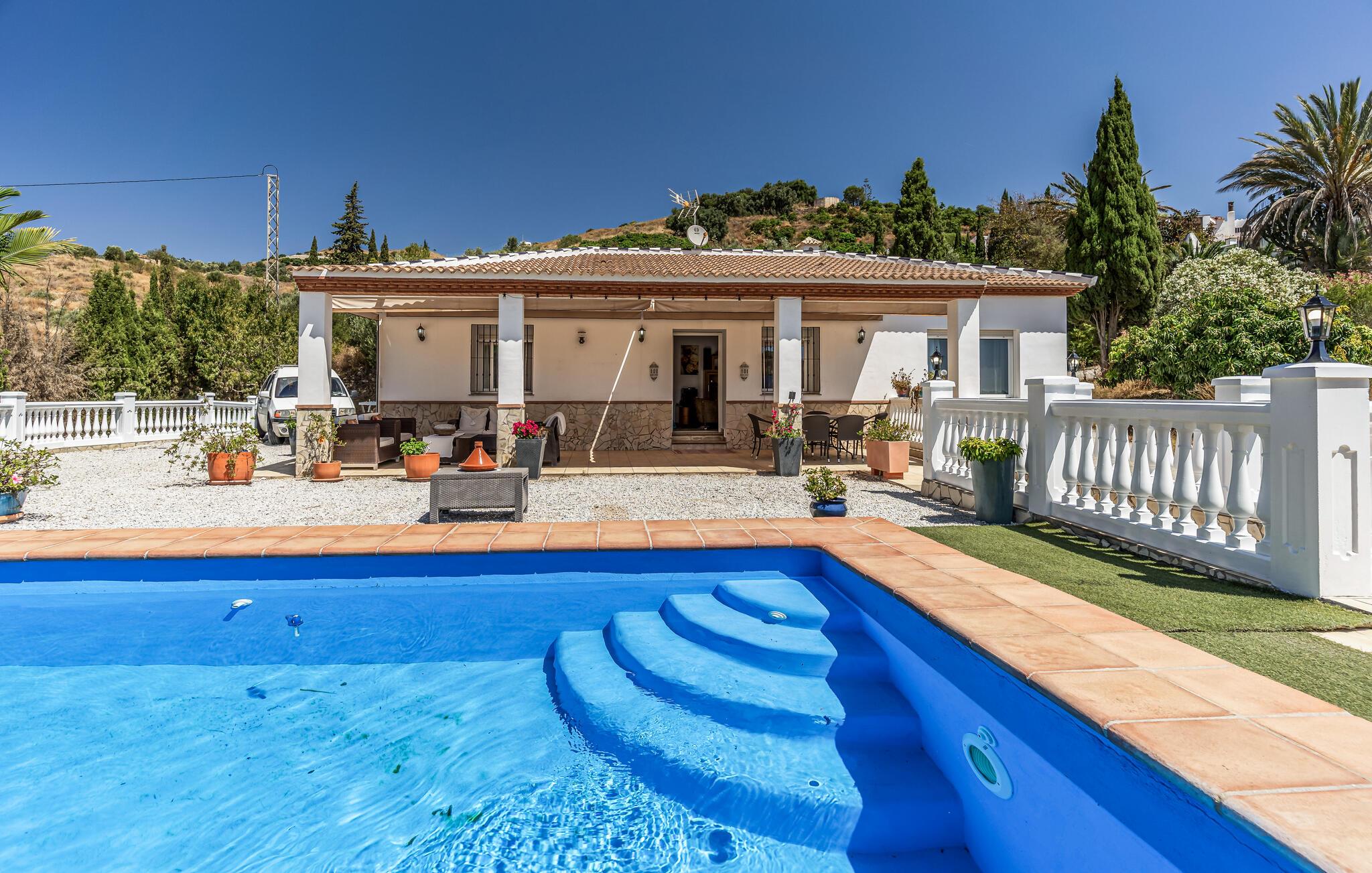 Genießen Sie eine sonnige Auszeit in diesem großzügigen Ferienhaus mit Pool und Panoramablick.