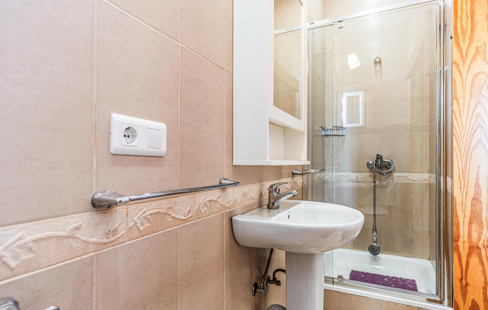 - WC mit warmem und kaltem Wasser, Handbrause und Badewanne